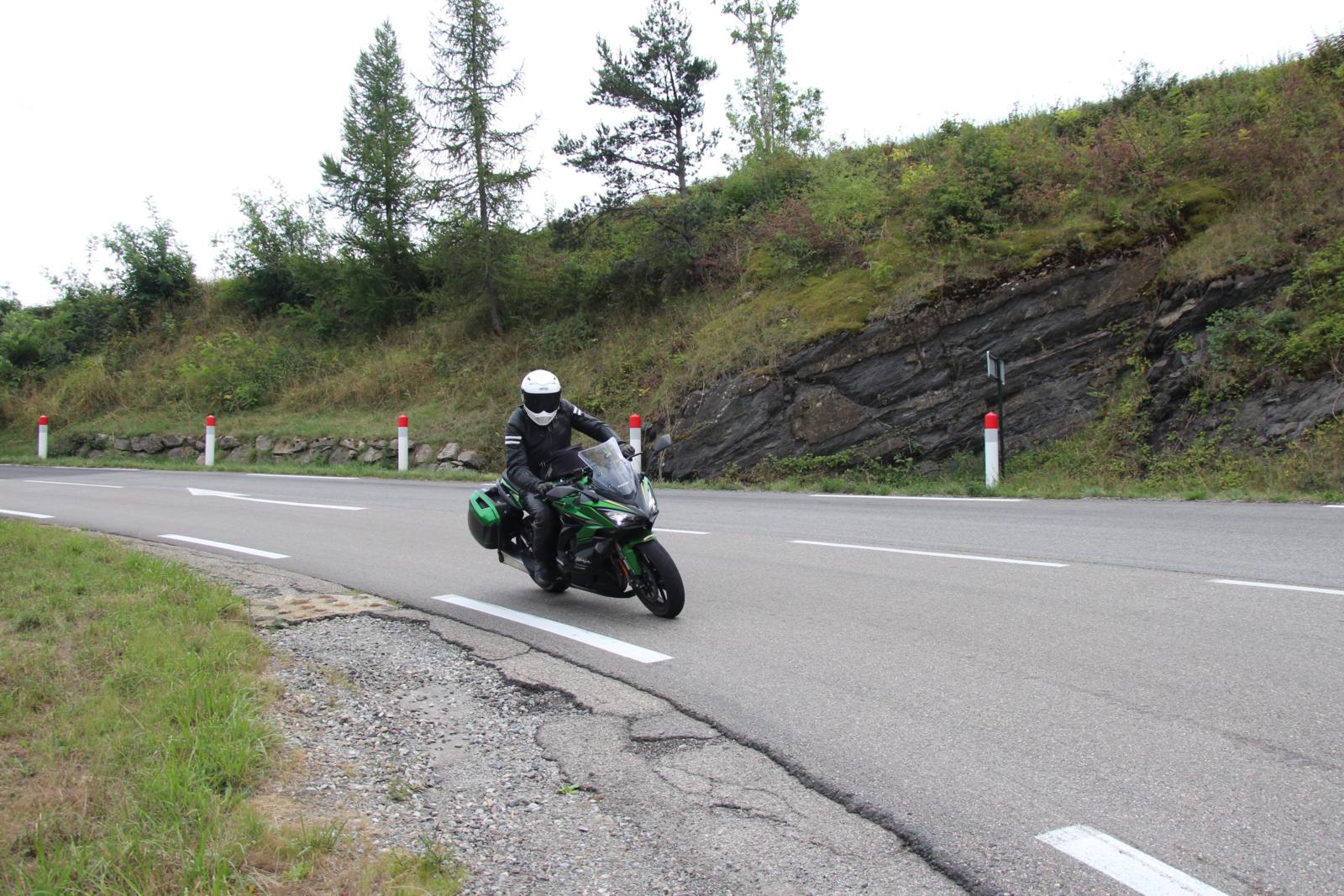 Maar hoogste tijd om te rijden! We geven onze bagage af aan de volgauto en sluiten ons aan bij een groep Limburgers. Alan, onze voorman op zijn KTM 1290 Super Duke R, leest het roadbook met gemak en dus is het tempo hoog. De Ninja 1100SX SE geeft geen krimp terwijl we de St. Bernhardpas en Col de l’Iseran overrijden, met als hoogtepunt de Galibier en Izoard, eindigend in Embrun. De gemiddelde dag begint om 8 uur en eindigt rond 18.30 uur, met slechts een paar korte pauzes.