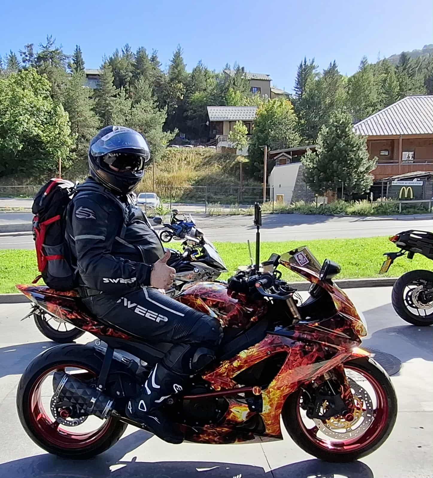 We verzamelen in Biella, Noord-Italië, in de Alpen, om kennis te maken met organisator Steve en andere deelnemers. Het enige wat we weten is dat we in Lloret de Mar eindigen, met onderweg een circuitdag in Pau-Arnos. De sfeer is vriendschappelijk, want iedereen deelt dezelfde passie voor motorrijden. De band die we creëren is bijzonder; een beetje getikt moet je wel zijn om hieraan deel te nemen. Wat dacht je van een groep Finnen en Noren die alleen al 2.000 kilometer heen naar het event moeten rijden. En na afloop ook weer terug uiteraard. Of een stel Amerikanen die hun motor laten verschepen en hier ook stallen om één keer per jaar zeven dagen te knallen met gelijkgestemden. Ik voel mij thuis tussen die gasten.