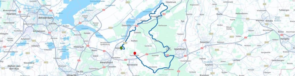 Door Kootwijkerbroek gaat het richting Voorthuizen, het slotstuk van een rit die alles heeft: natuur, karakter en een stevige portie vrijheid. Waar wacht je nog op – tank vol, vizier omlaag, gáán.
