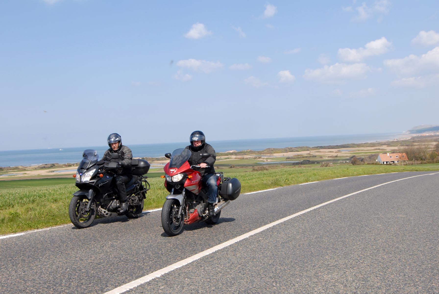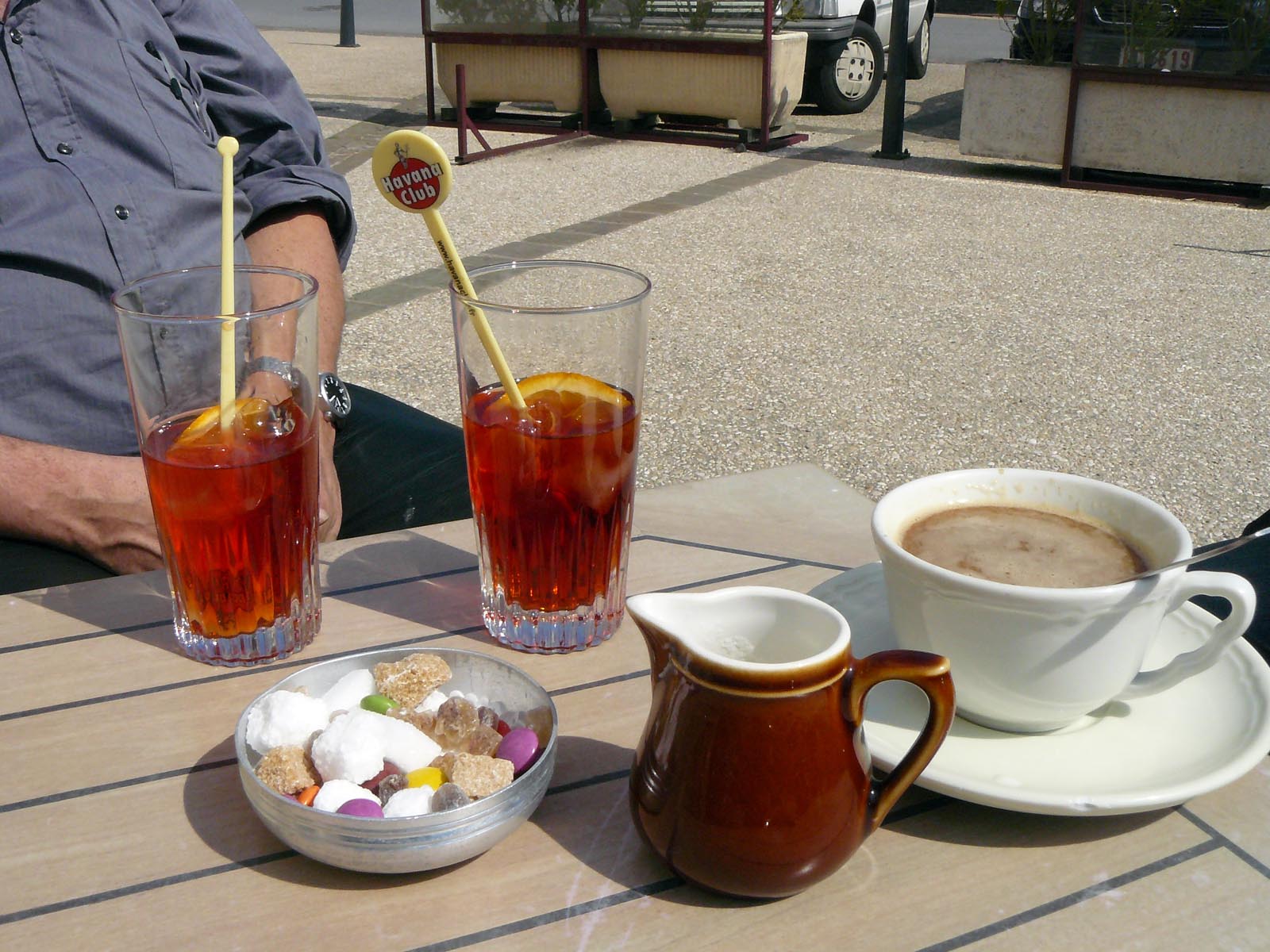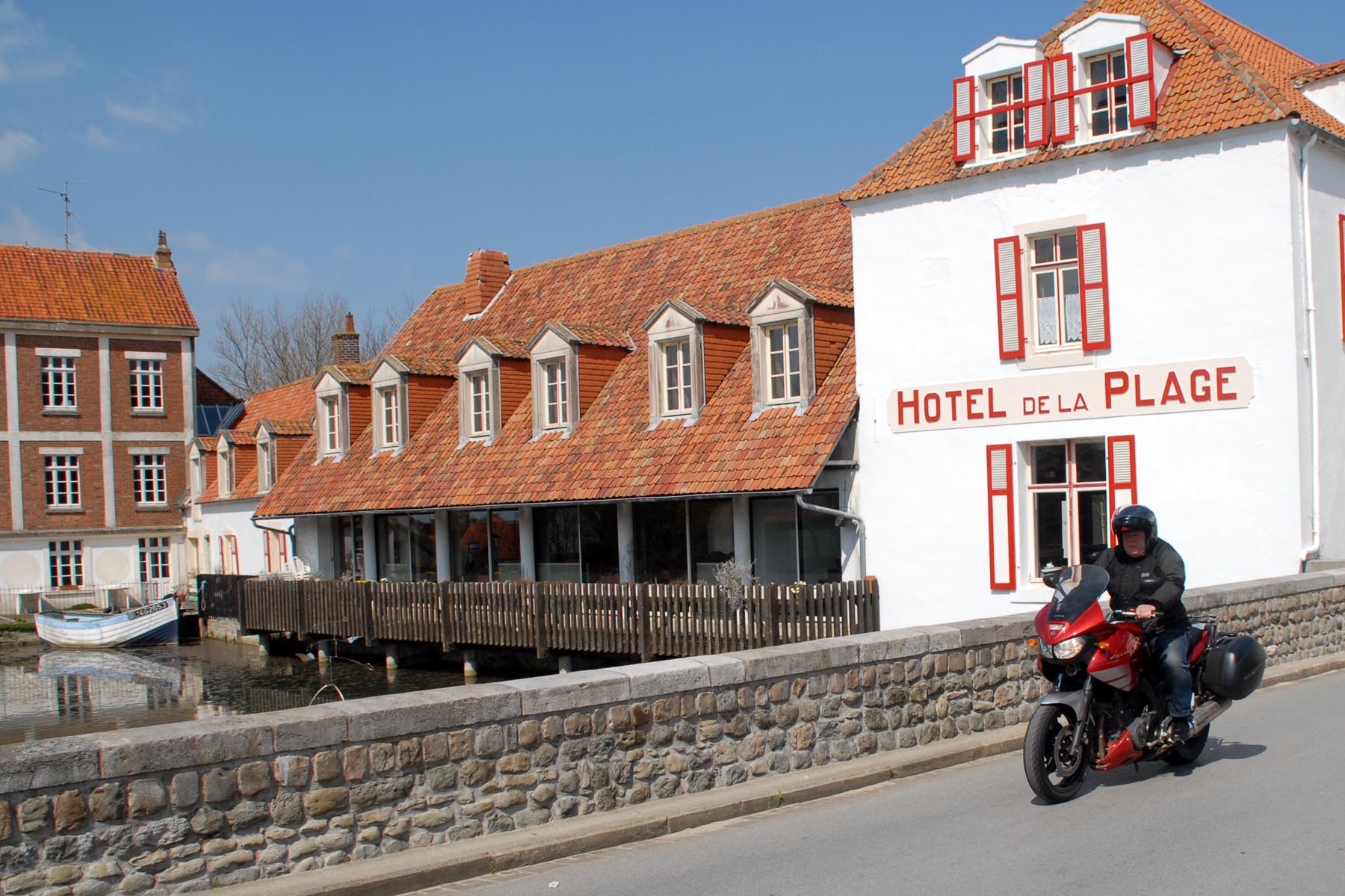 Met gezwinde spoed volg en we dus de schitterende route langs de kust van Pas de Calais. Het is koffietijd en in Wissant vinden we volgens ons de juiste plek. ‘Une espresso et deux americano s’il vous plait madame,’ brabbel ik in koeterwaals Frans. Met gefronste wenkbrauwen herhaalt de serveerster het deux americano en ze kijkt even naar de motoren en daarna naar de kerkklok. Misschien drinken ze hier pas ‘s middags koffie, vraag ik me af. Pim denkt dat een americano hier misschien geen koffie maar iets anders is. En inderdaad, naast de ene sterke bak koffie worden nog twee glaasjes sterk spul geserveerd. Rare jongens die Fransen.