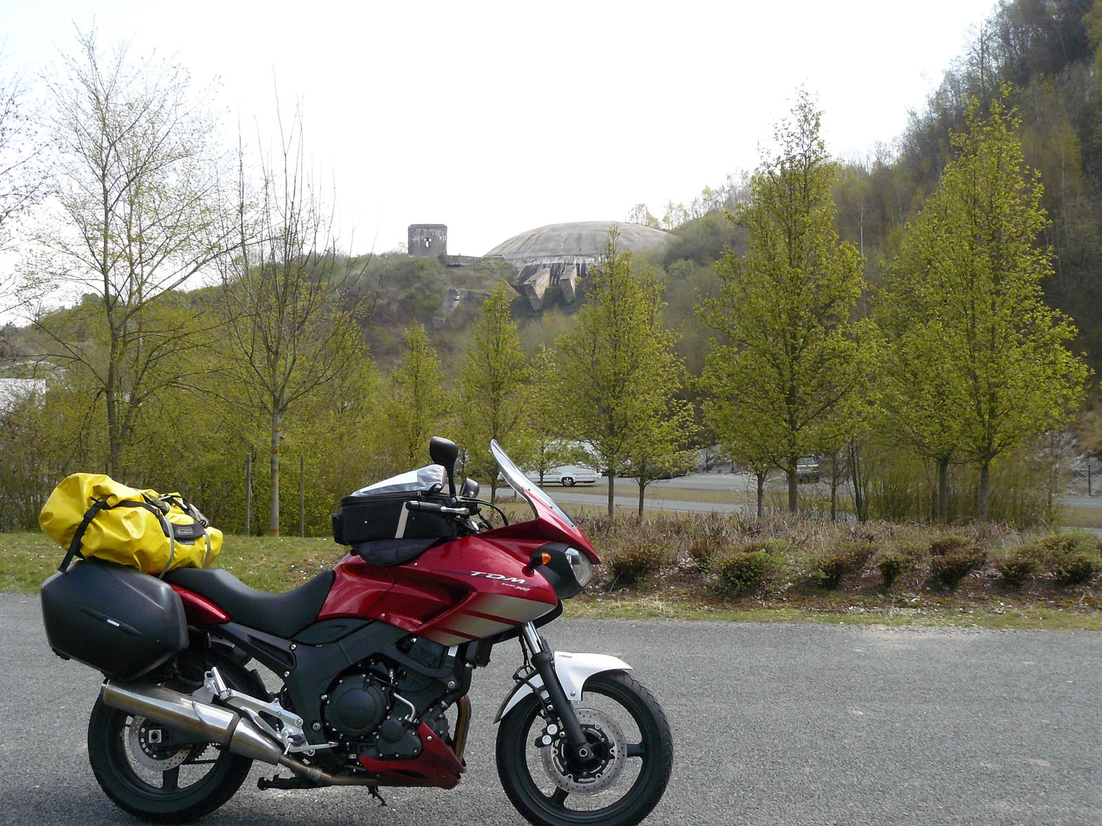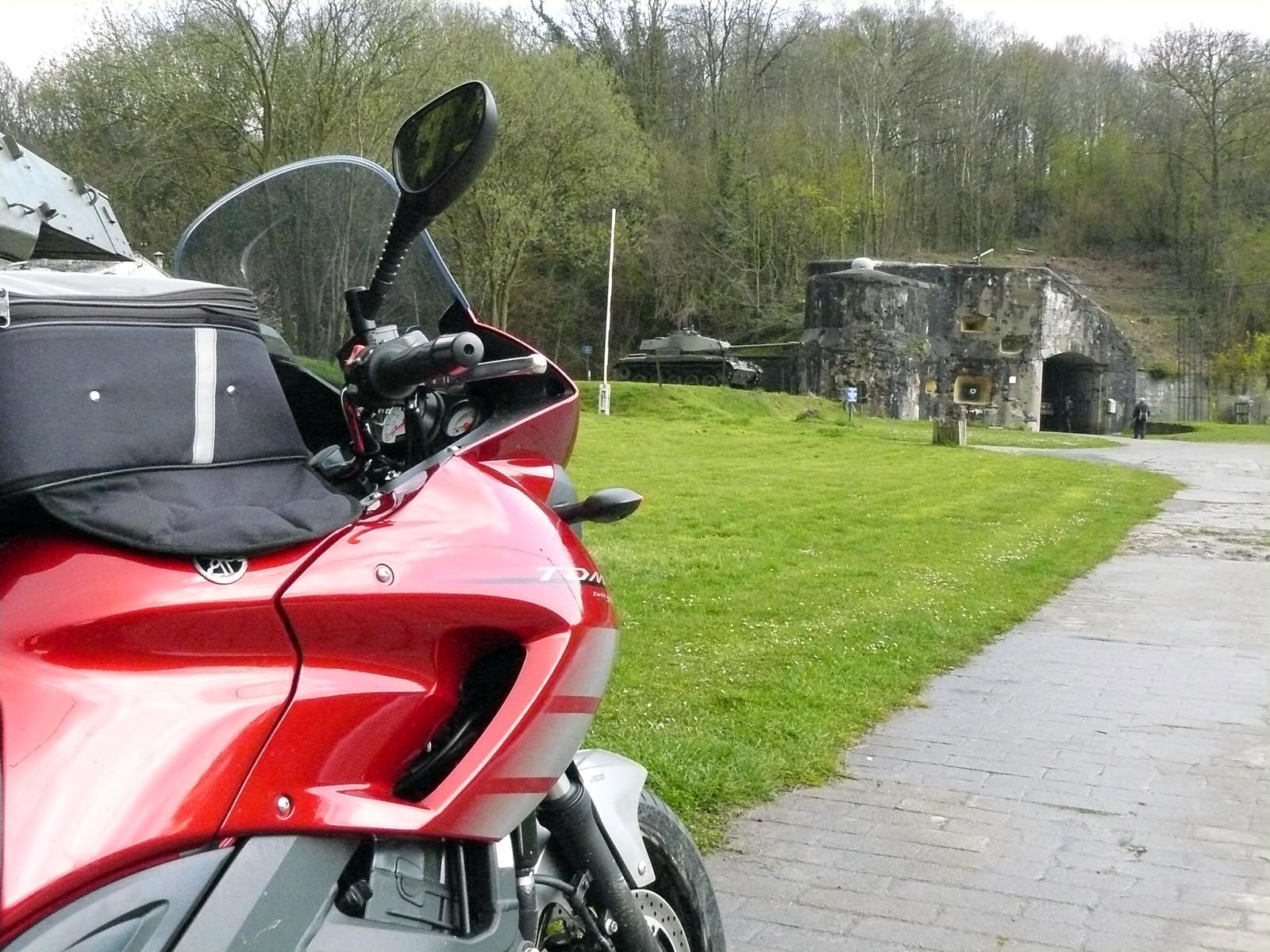 Alsof de gedachte aan bunkers al somber moet stemmen, zo lijkt het weer ons daarin te willen versterken. ‘Het gaat morgen regenen,’ zegt Tom wanneer ik hem bel over de route. ‘Daar kunnen die bunkers best tegen,’ stel ik hem gerust. Tom mompelt dat motorrijden niet leuk is in de regen, maar ik praat er overheen: ‘Zie je.’ We vertrekken vanaf Fort Eben-Emael, dat net over de grens ligt, bijna onder de rook van Maastricht in een omgeving zo lieflijk dat ik in gedachten elfjes over de riviertjes zie zweven.