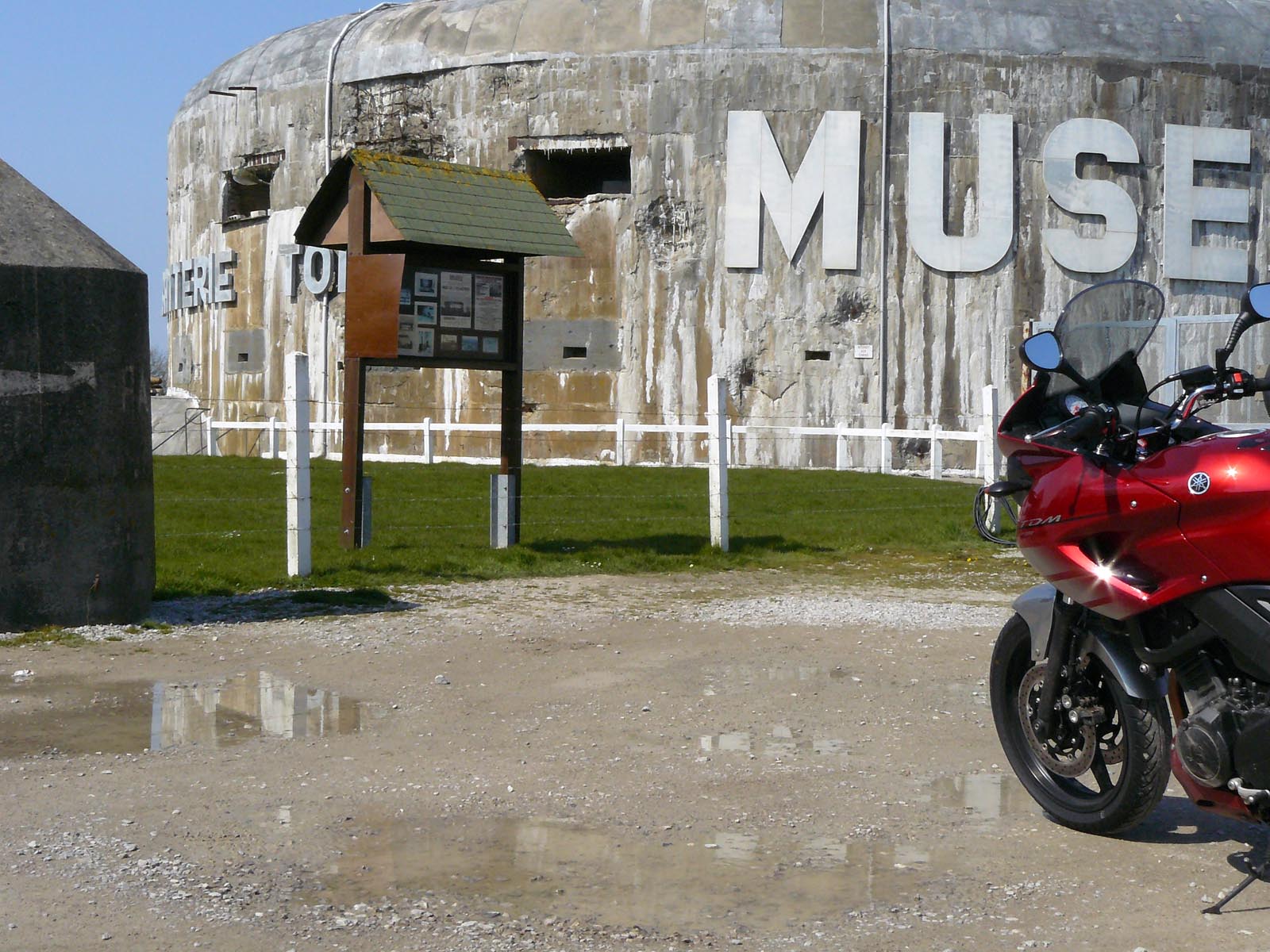 Zou hier de plattelanduitvoering van het beroemde Parijse theater staan? Dat niet. We komen uit in een gehucht waar een 15 meter hoge bunkertoren staat. Ook deze maakt deel uit van de Atlantikwall. We gaan op onderzoek uit, maar veel is er niet te vinden. Binnenin op een muur is nog vaag een tekst te lezen: Flink wie die Windhund, zähe wie Leder, hard wie Kruppstahl. ‘Vlug als een hazewindhond, taai als leer, hard als Kruppsstaal’, vertalen we. Zoals sommige motorrijders, voegen we eraan toe.