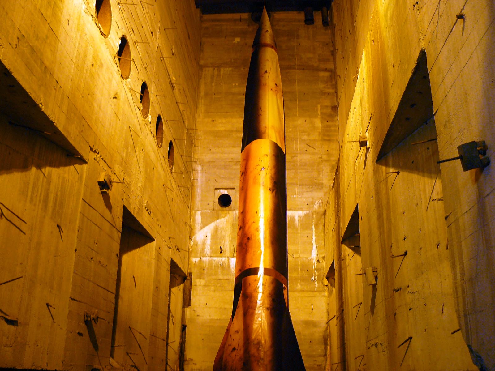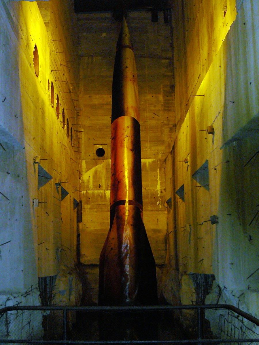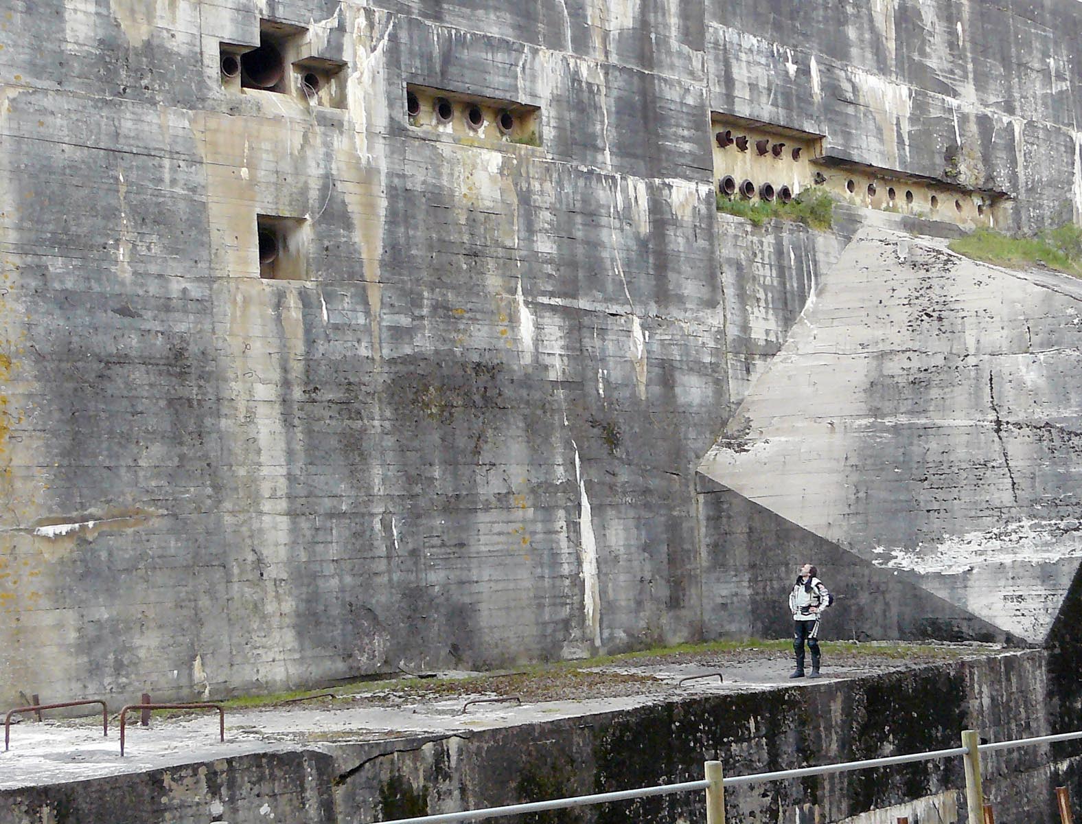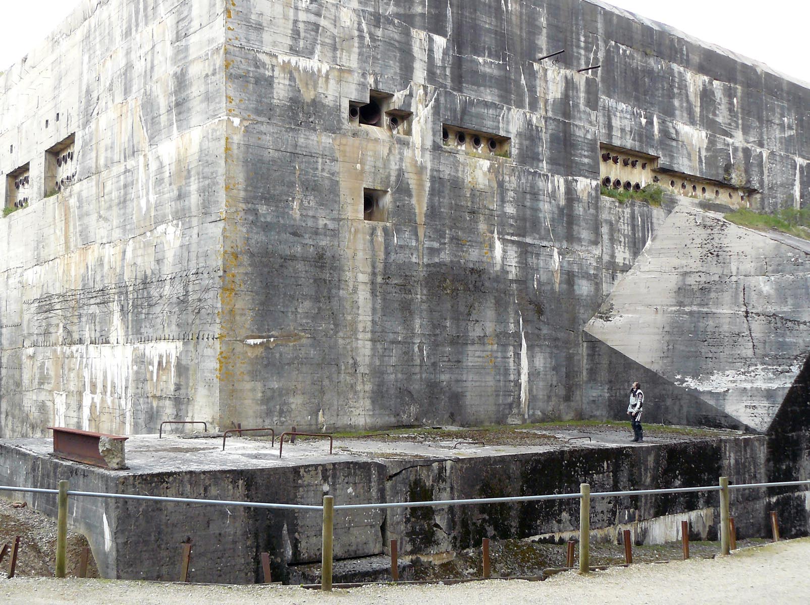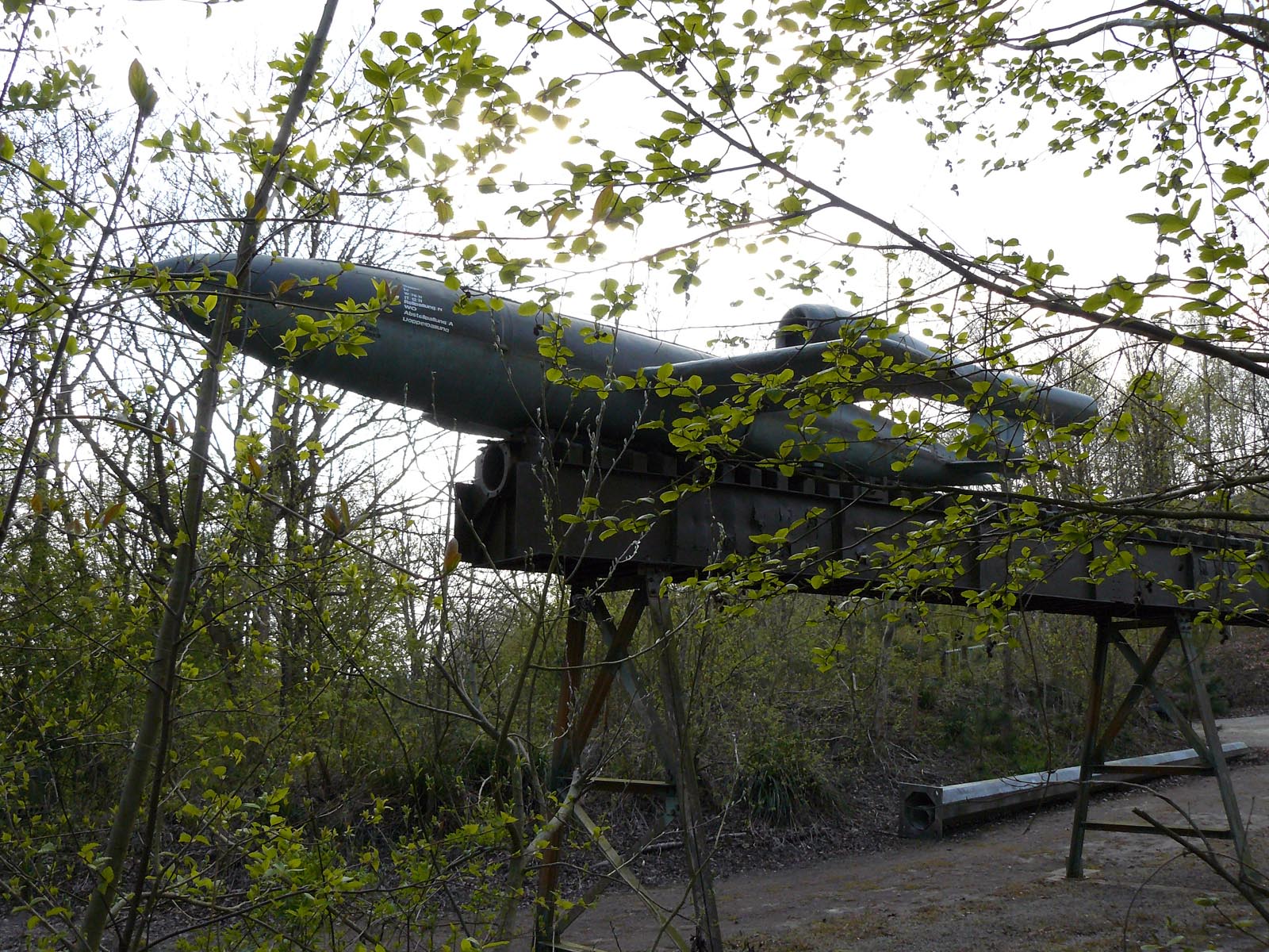 We rijden verder, door de prachtige bossen van Eperleques. De dichtheid van deze bossen zorgen voor een perfecte camouflage en waren daardoor uitermate geschikt voor een bunker van formaat: het Blockhaus. Was La Coupole al indrukwekkend, dan is het in 1942 gebouwde en in 1985 tot historisch monument uitgeroepen Blockhaus dat zeker. Er zijn van die bouwwerken waar je bang van wordt en Blockhaus is dat voor mij in de overtreffende trap. Opgezet als fabriek voor de productie van vloeibare zuurstof, dat als brandstof voor de V1 en V2 diende, werden er ook onderdelen voor de raketten gemaakt. De dikke betonmuren moesten voor bescherming zorgen, maar de bunker werd fanatiek gebombardeerd door de Engelsen, die er zelfs een speciale 6000 kilo zware en zes meter lange bom voor ontwikkelden, de zogenaamde Tallboy. De Nazi’s begrepen al snel dat het Blockhaus niet ideaal was en verhuisden de fabriek. Het is juist de lieflijke en bosrijke omgeving die het Blockhaus een sinistere uitstraling geeft waar ik van huiver. Ik wil eigenlijk weg, me vermaken in Parijs bijvoorbeeld of me een klein kind voelen in Disney Europe. Maar daar is nu geen tijd voor, want de route voert ons naar het volgende Kunstwerkje van de Divisie Todt.