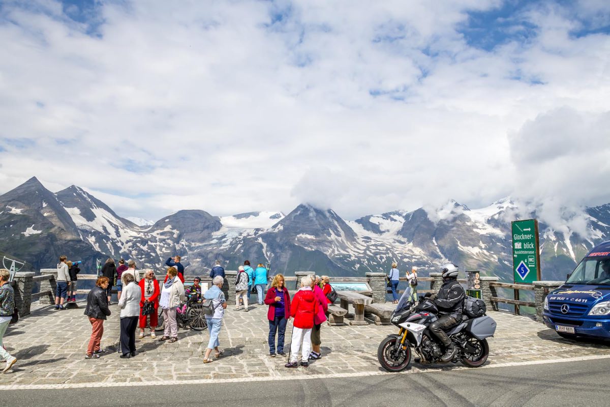 Nog ruim 220 kilometer tot aan Servus Großglockner. Via Vorderriß, de Achensee en de Gerlospas – waarvan de weg met zijn vele haarspeldbochten elke keer weer een genot is om te rijden – komen we in elk geval tot aan Mittersill, waar we onderdak vinden in Hotel Wieser. Het Weiszhaus blijkt ook om tien uur nog pizza te serveren. En wat krijg je op de Großglockner Hochalpstraße voor een tol van € 26,-? Nou, een technisch meesterwerk, door middel van ettelijke tunnels gevormd tot een totaal kunstwerk van 48 kilometer en 36 haarspelden. Het hoogtepunt is de Edelweissspitze met zijn legendarische klinkerpassage, een uitzichttoren en de bijna buitenaardse overnachtingsmogelijkheid in de Edelweisshütte op 2.572 meter hoogte. Vergeleken met deze serene plek lijkt vervolgens de Kaiser-Franz-Josefs-Höhe meer op een kermis, met een enorme parkeergarage zoals bij een winkelcentrum. De koopwaar: uitzicht op de 3.798 meter hoge Großglockner, de Summit van Oostenrijk. En uitzicht op de Pasterze, ooit het eeuwige ijs, waar je de gletsjer langzaam kunt zien sterven. Hier is de klimaatverandering in elk geval zichtbaar.