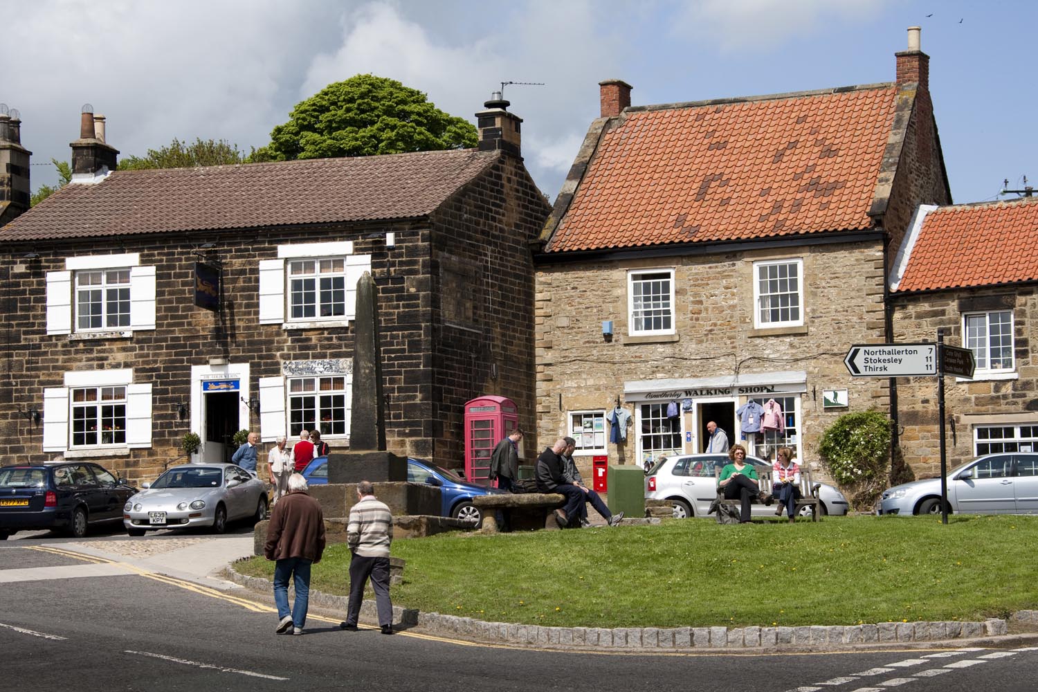 We zijn net vanuit Lofthouse, heel erg Yorkshire Dales, overgestoken naar Osmotherly, op de drempel van de Yorkshire Moors. In The Golden Lion eten we een hamburger, zo een uit de tijd van voordat Amerikaanse Schotten zich daarmee gingen bemoeien. Lékker! We raken aan de praat met een aardig stel, laten we het maar op Dorothy en George houden. Dorothy steelt mijn hart. Heerlijk, want persoonlijk voel ik me op dat moment meer de Brando van de Godfather: hees en oud. Dat ligt overigens niet aan het landschap. De Moors vormen met elkaar het North York Moors National Park, en een National Park in Engeland staat garant voor prachtige vergezichten. Daar ga je je beslist goed van voelen…