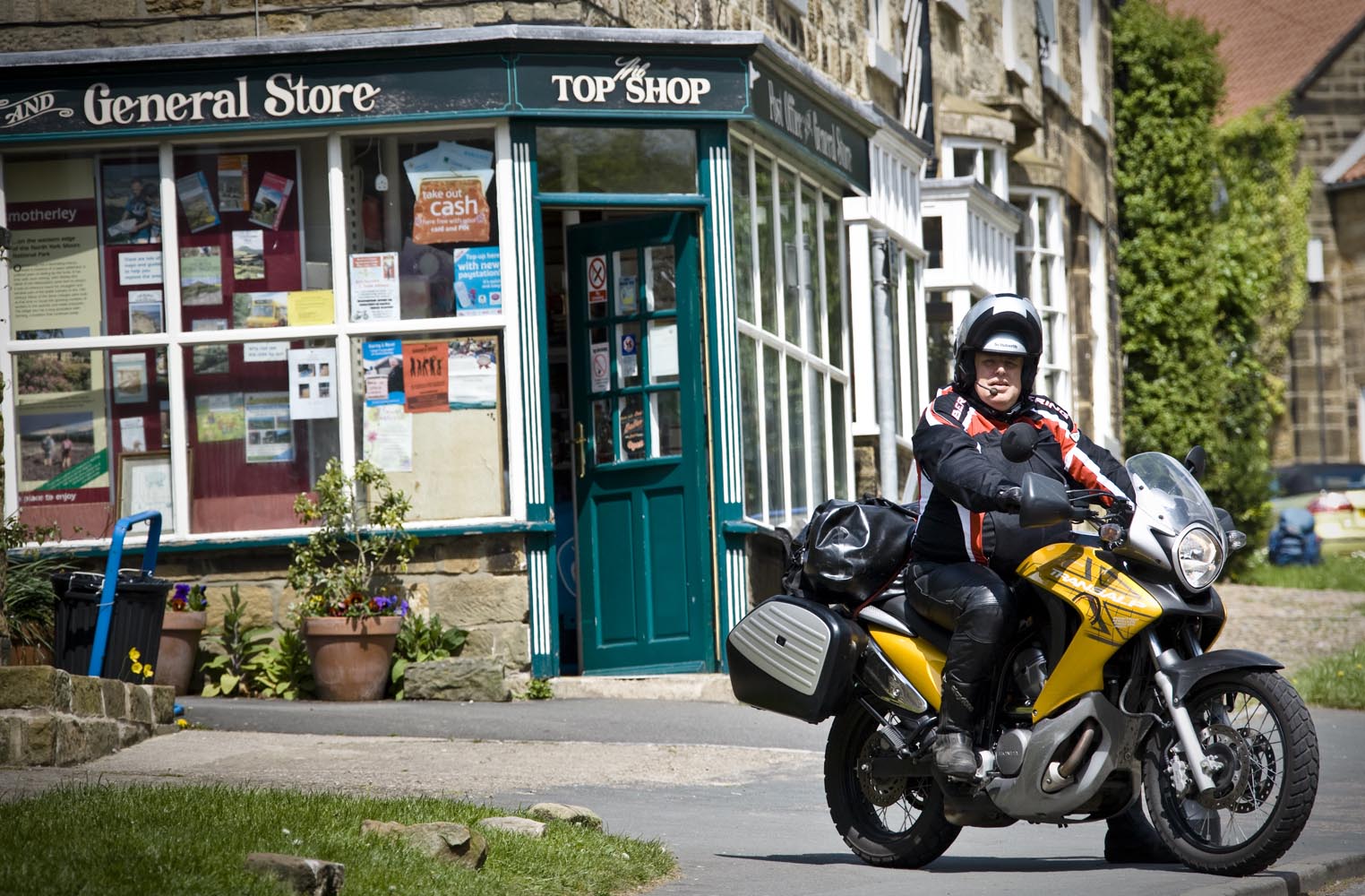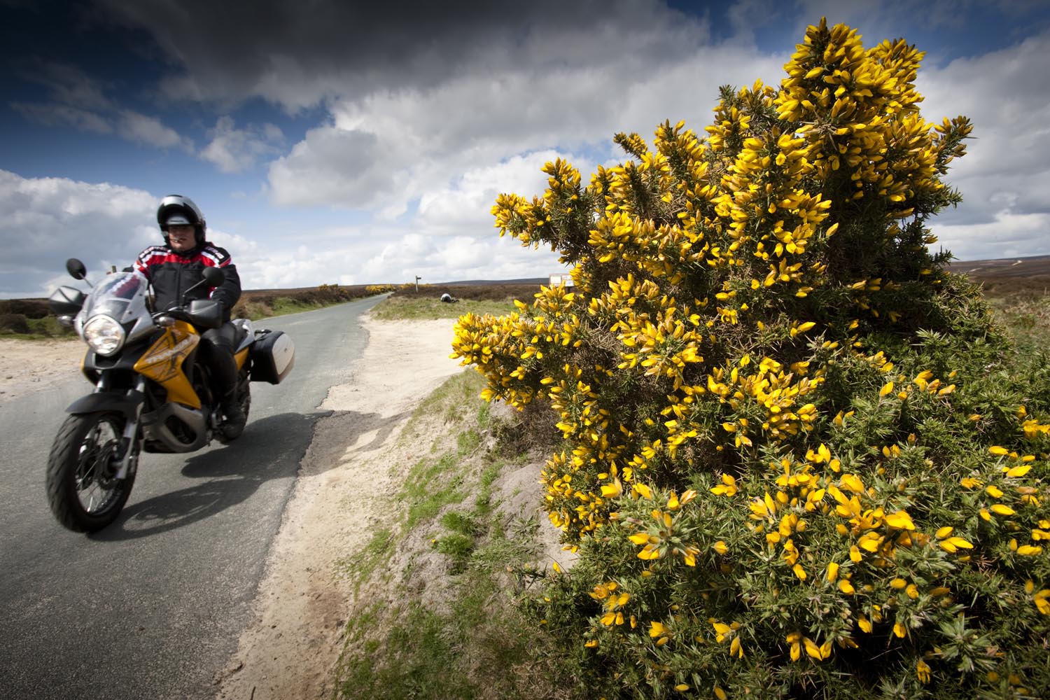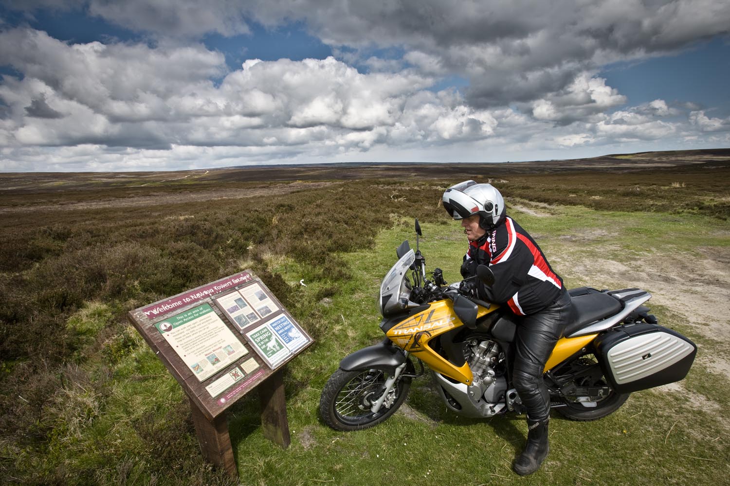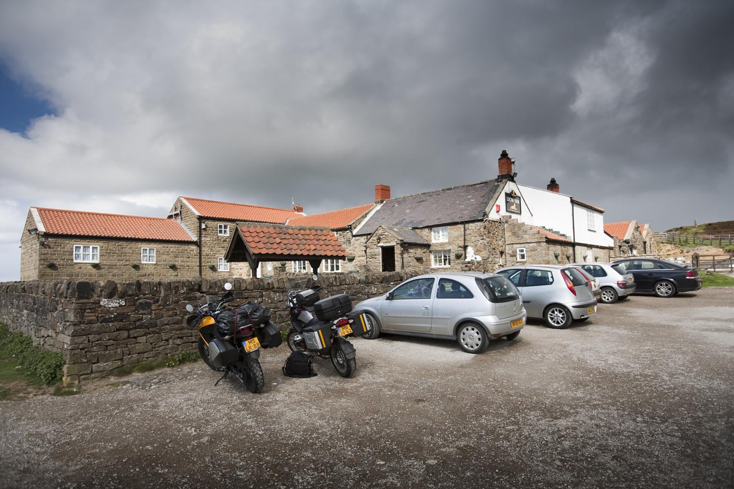 Vanuit Hutton-le-Hole gaat er nog een weg naar het noorden, en die voert je over de Moor tussen het Farndale en het Rosedale. Een wat vervreemdende rit, zeker als het zachtjes regent en heiig is. Je begrijpt in een keer waarom de Moors zo’n geheimzinnige en niet ongevaarlijke sfeer uitstralen, je voelt je er van God en iedereen verlaten. Maar op het moment dat de depressie inzet, staat daar als het laatste behouden huis The Lion Inn, de twee-na-hoogste pub van Engeland. Motorrijders zijn er meer dan welkom en we genieten er van een lekker tweede ontbijt. Kamers zijn hier uiterst betaalbaar en het is de ideale uitvalsbasis voor een verkenning van de Moors per motor.