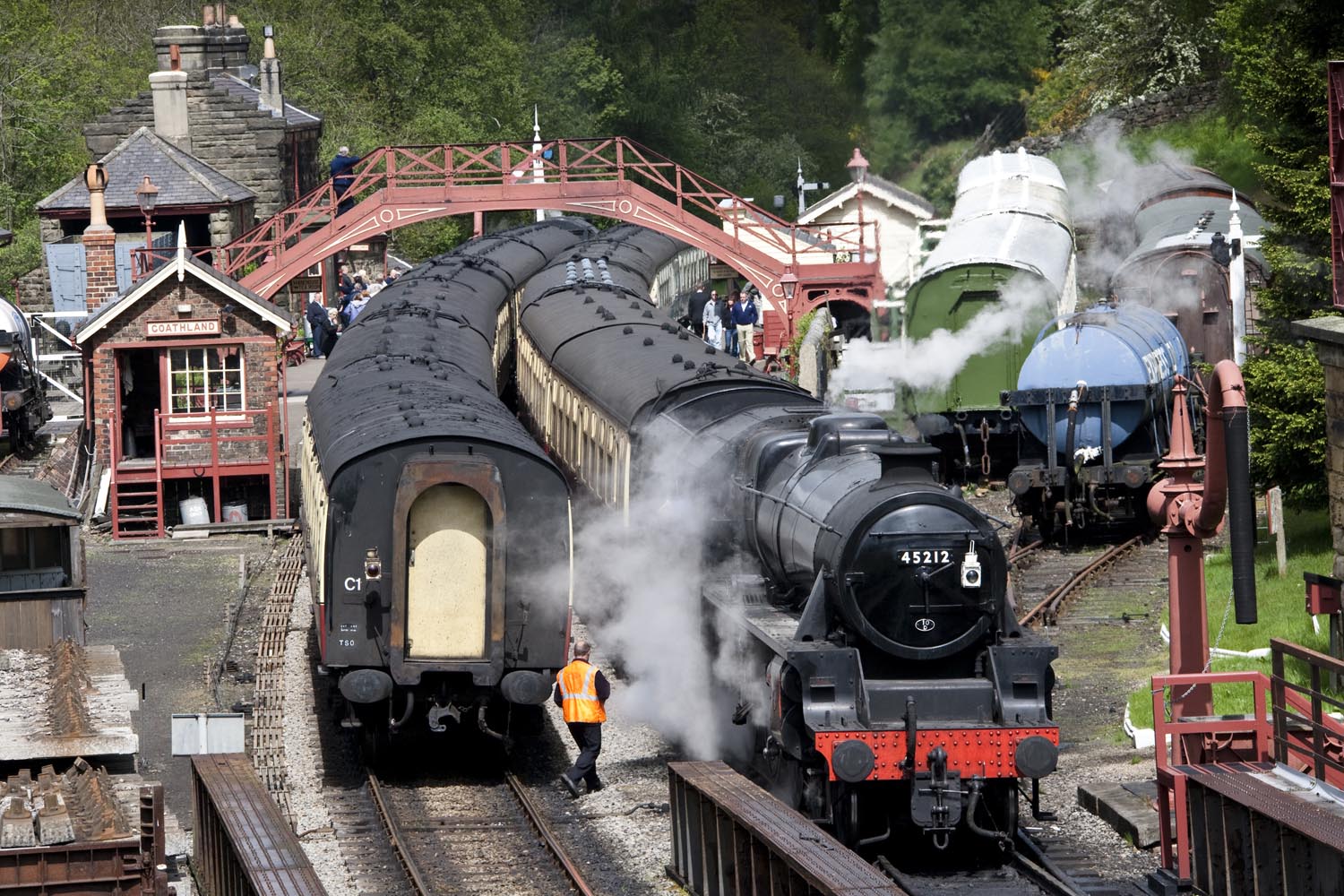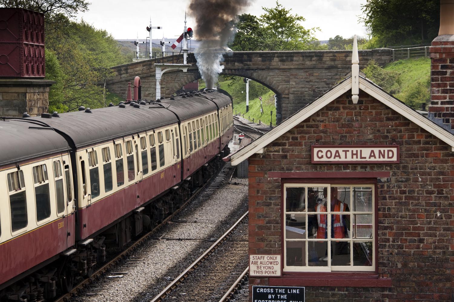 We zijn inmiddels in het Eskdal, en dat volgen we een tijdje tot we via het Newtondale weer zuidelijk gaan koersen, richting Pickering. Langs de North York Moors Railway, waar ze nog met onvervalste stoomtreinen rijden. In Grosmont zien we een prachtige locomotief staan. We knopen een praatje aan met de machinist, die ons vervolgens meedeelt dat we onze moerstaal kunnen gebruiken. De man heet Rob Giphart en hij brengt al zijn vakanties door op het stookplatform van deze loc. Wie zegt daar dat Engelsen treintjesgek zijn? Met een machtig fluitsignaal stoomt hij weg. En even later blijkt de wereld van de film weer dichterbij dan je denkt…