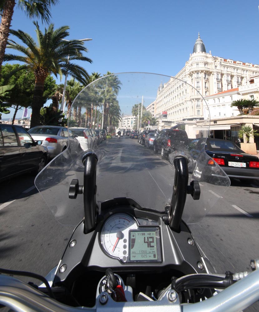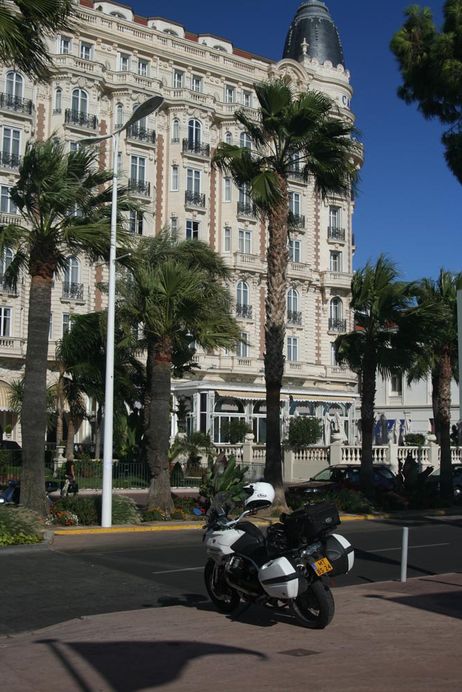 Nice is een van de twee echt grote steden aan de Cote d’Azur. Met alle hectiek en narigheid van dien. Maar zo lang je bij de kust blijft, kom je alleen maar luxe en rijkdom tegen. In de haven zie ik een jacht dat aan Saddam Hoessein toebehoorde. Daarna rijd ik de Promenade des Anglais op, de grootse boulevard van Nice. Tussen alle paleisachtige gebouwen en hotels spring er een uit: het weelderige Le Negresco met zijn roze dak – een van de meest prestigieuze en bekende hotels ter wereld. Voor een nachtje in de presidentiële suite kun je ook bijna twee maanden in een Formule 1 aan de rand van de stad gaan zitten.