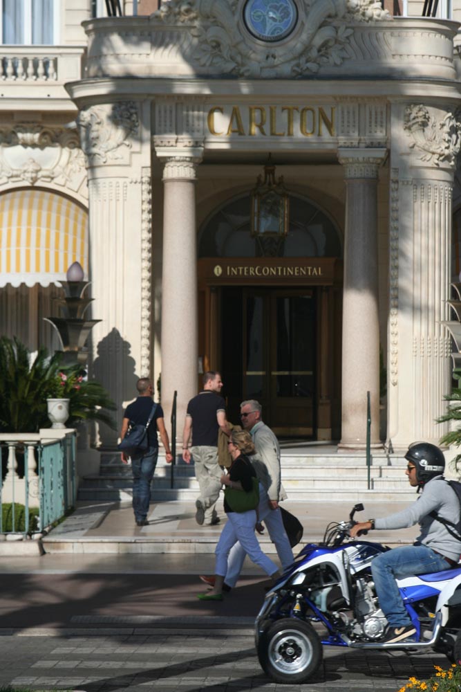 De Boulevard de Croissette in Cannes is het absolute toppunt van de mondaine Cote d’Azur. Degenen die gezien willen worden en degenen die ernaar willen kijken, komen hier samen. Ik merk het als ik bij het Carlton hotel (kamerprijs tot 5500 euro per nacht) mijn camera tevoorschijn haal. Om een of andere reden ziet een Engels echtpaar me voor een paparazzi aan. De man vraagt of ik een beroemdheid opwacht. Op dat moment stapt een poenerige vijftiger uit de draaideur met een jong, donker fotomodeltype op zilverkleurige naaldhakken. Hand in hand lopen ze naar een gereedstaande MacLaren-Mercedes. ‘Dat is de Nederlandse minister van Ontwikkelingssamenwerking,’ verzin ik.