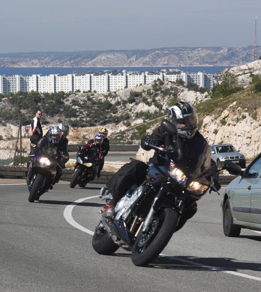 Het einde? We zijn er toch nog niet? Nee, Er volgen nog 15 kilometers langs Cassis naar Marseille. Ook hier ligt weer een wilde hoge weg met calanques, die niet zo heel veel onder doet voor de Routes de Crêtes. Maar wat is het hier opeens druk. In Cassis kan ik de Guzzi niet eens kwijt in de grote motorstalling bij de haven. Zelfs voor een ijsje moet ik een kwartier in een rij staan die sterk naar zweet ruikt. Op de weg is het niet veel beter. Half Marseille lijkt de motor te hebben gepakt. Voor het eerst moet ik scherp opletten voor scheurende tegenliggers die op mijn weghelft komen. En voortdurend in mijn spiegels kijken om racegekken in de gaten te houden. Nee, in oktober is de Côte d’Azur vaak op zijn best. maar niet in het weekend in de buurt van een grote stad. Dat lijkt ineens wel zomer. En dat is wel het laatste wat ik wil.