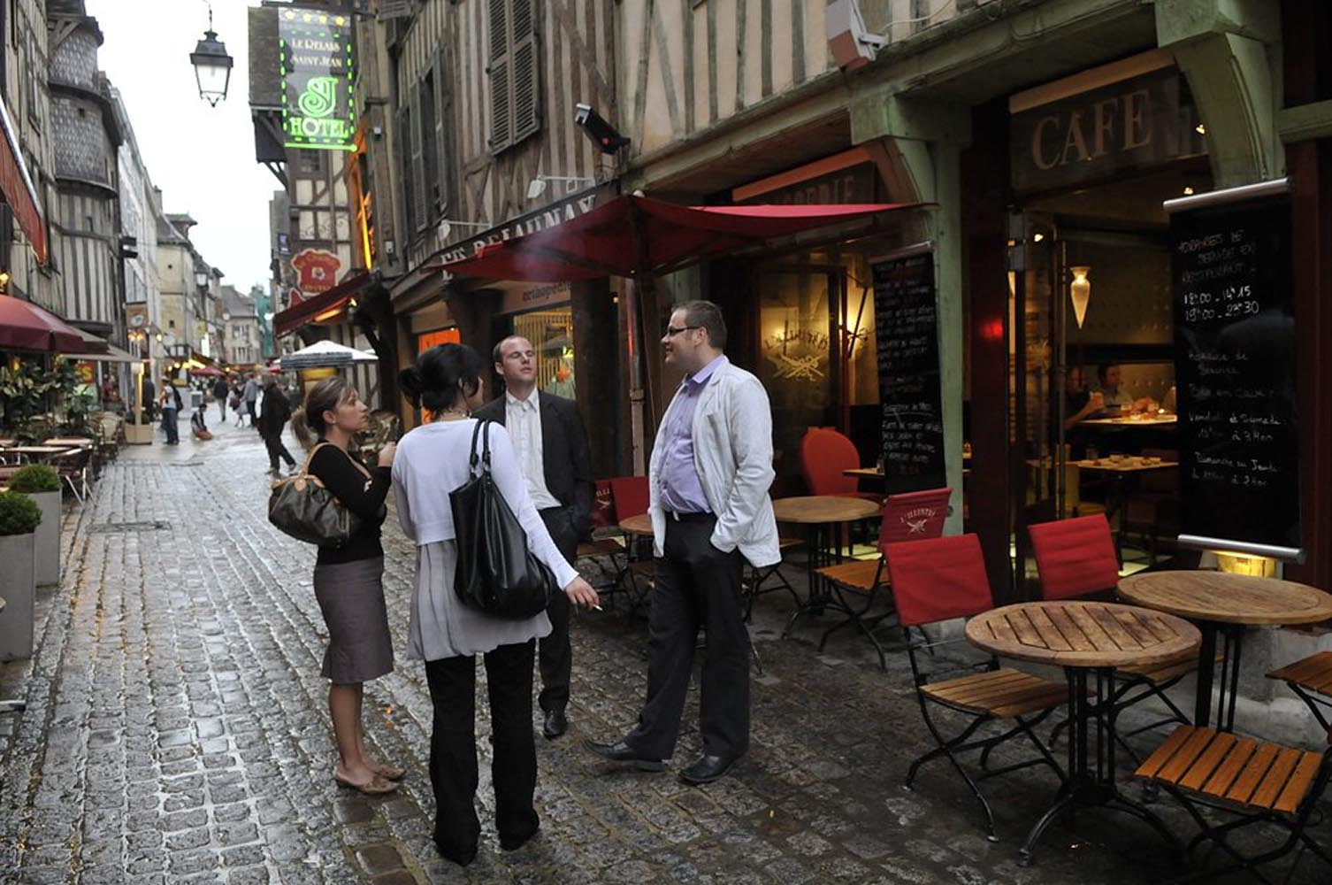 Maar de mooiste nattigheid in Frankrijk komt uit Champagne. Troyes is daar de oude, regionale hoofdstad. Het feit dat de plattegrond van het historische centrum de vorm van een champagnekurk heeft, kan toeval zijn. Of niet. Het is in elk geval een passende bodem voor een stukje ‘après moto’. Terwijl we op de hotelkamer de verwarming zo hoog mogelijk zetten om onze spullen droog te krijgen, slenteren we door de binnenstad tussen de popperige vakwerkhuizen. Onze buitenkant is nat genoeg geweest. Nu zoeken we een plek om te proosten op een onvergetelijke dag.