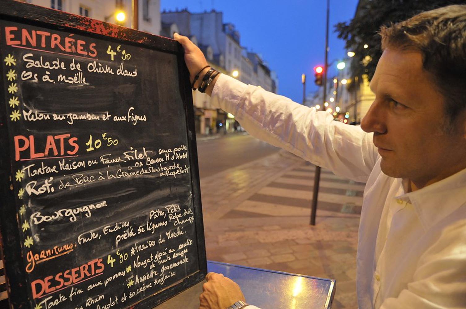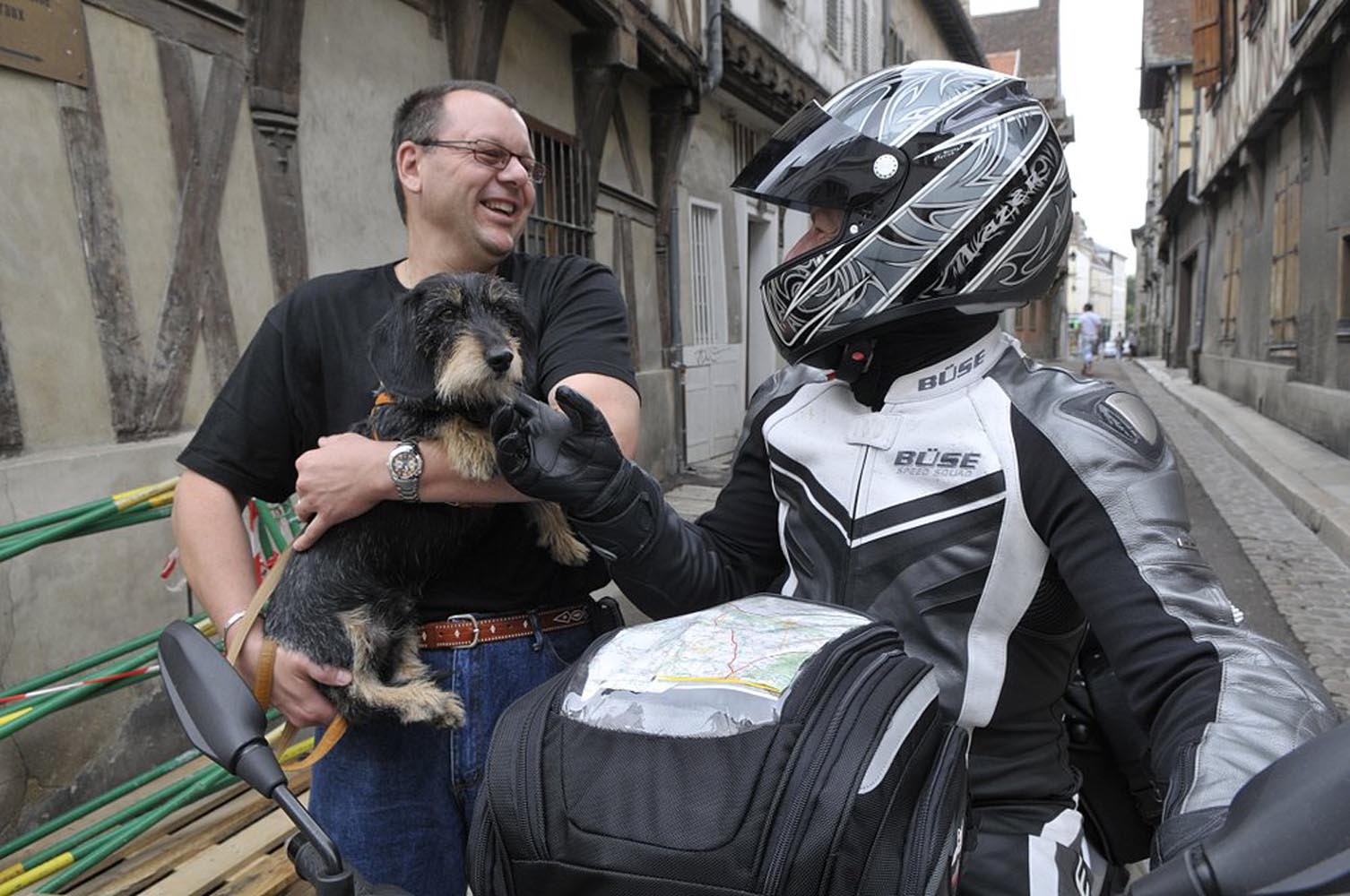 Als een zwerm horzels komen ze ons tegemoet: de gele koplampen van de motards uit Parijs op hun zaterdagmiddagronde. De ‘Bar de la Poste’ in Montereau-Fault-Yonne is een geliefd bikers trefpunt. In de vensterbanken staan Joe Bar en z’n vrienden. Boven de tapkast hangen foto’s. Waard David is een motorsportliefhebber. Dat is duidelijk. En wanneer je van paarden of ezels houdt – of juist niet – dan kun je je plezier op bij de paardenslager naast de kroeg. Voor maar €24,- per kilo scoor je daar ezelsribben. En die waren waarschijnlijk een betere keus dan het spul dat we vijf uur later op tafel kregen.