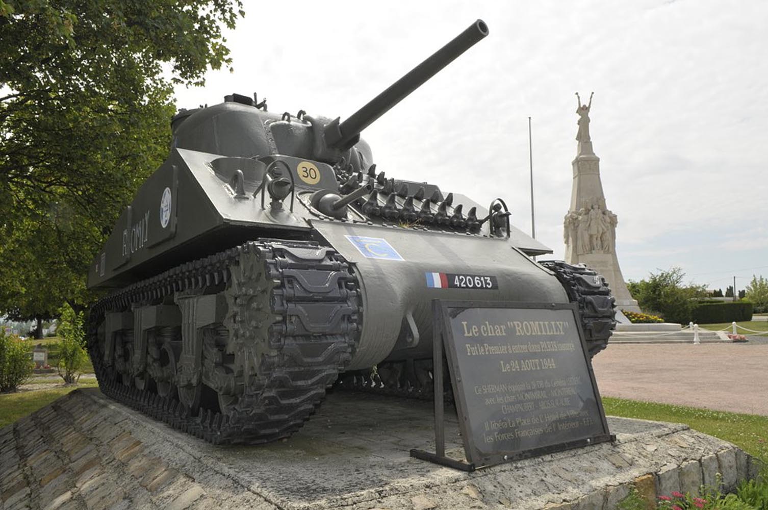 Ten noorden van Troyes staat de wereld vol graanvelden. Velden met rijp koren liggen langs de D20 op de linker oever van de Seine. Het verkeersdrempelvirus heeft hier ook toegeslagen. Dat breekt het tempo. Dat die dingen er niet lagen op 24 augustus 1944 zal de Amerikanen goed hebben gedaan. In Romilly staat immers het gedenkteken voor de eerste Sherman tank die Parijs bereikte. De Lichtstad is vanaf hier niet ver meer. En de pastorale rust bij Port de St. Nicolas, waar de koeien in een vijvertje badderden, ligt echt achter ons. En wat doet de Seine intussen? Best veel. In Nogent koelt ze een kerncentrale en een paar kilometer verder zorgt ze ervoor dat de slotgracht van La Motte-Tilly gevuld blijft. Even vriendelijk voor een atoomcentrale als voor een hofvijver. Perfect in harmonie in het land met de Arc de Triomphe en de Eifeltoren.