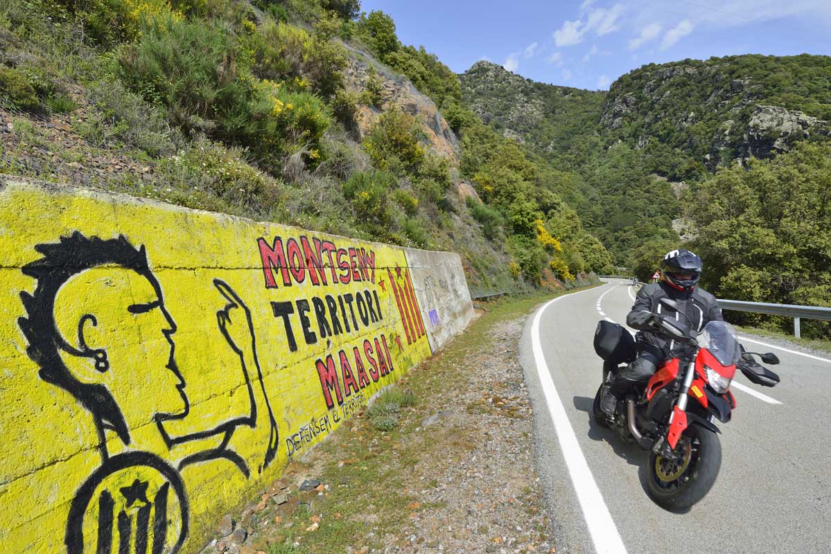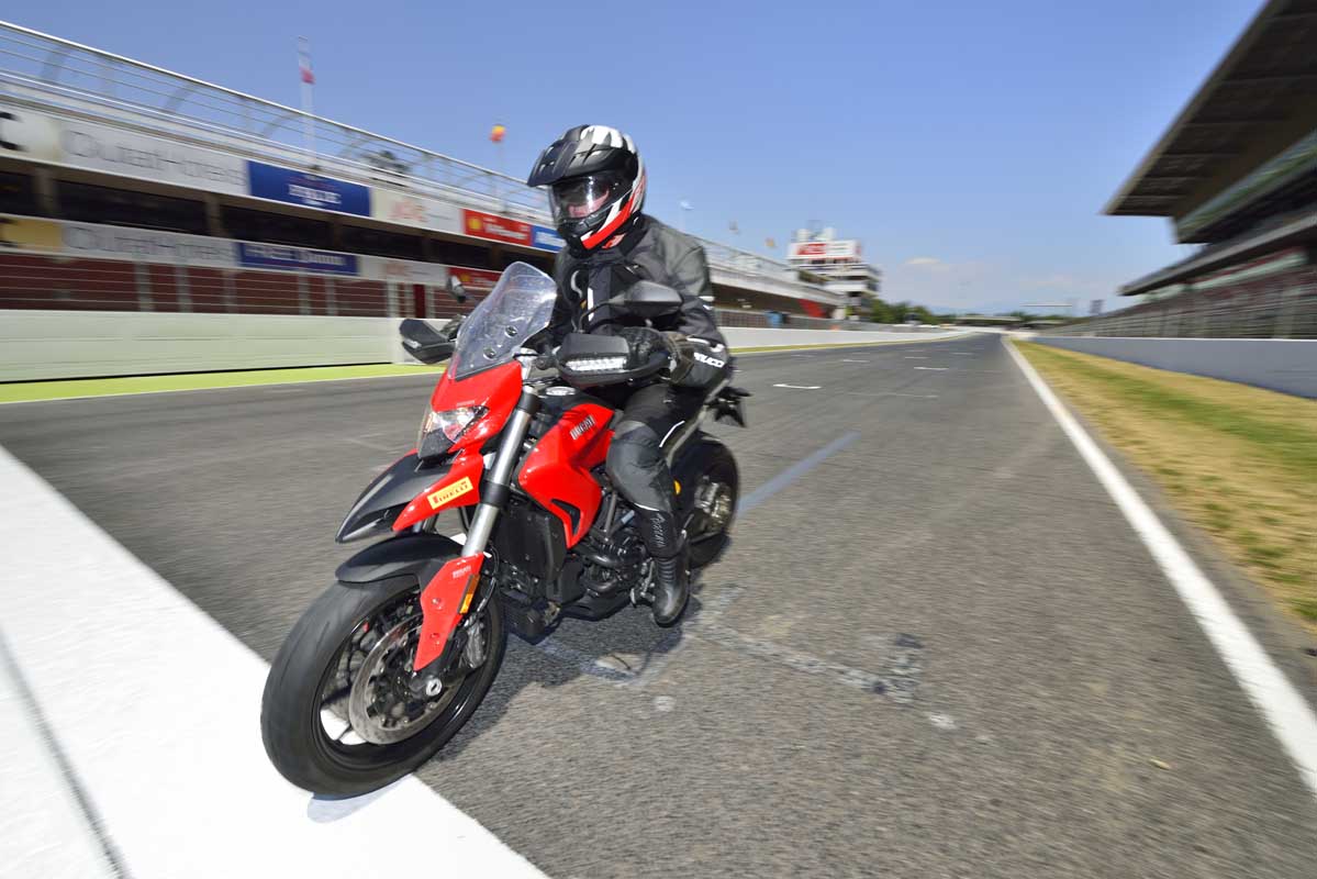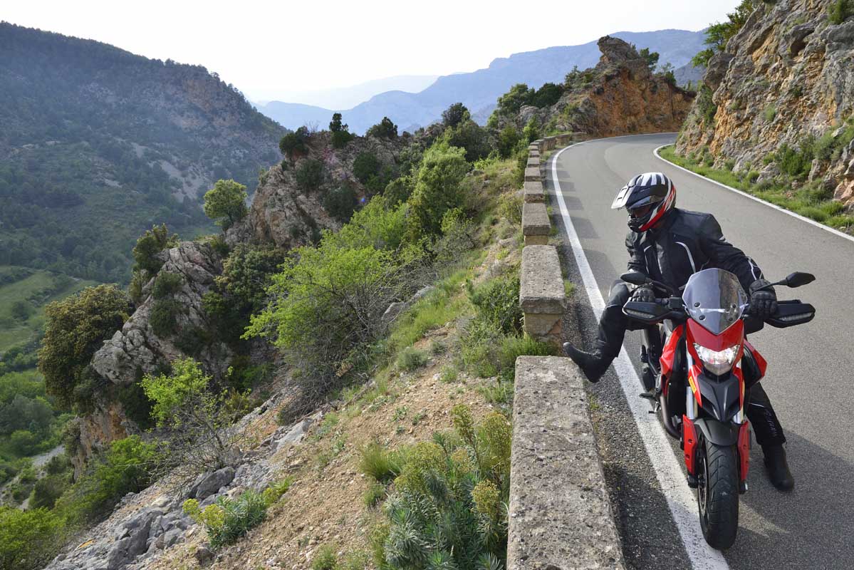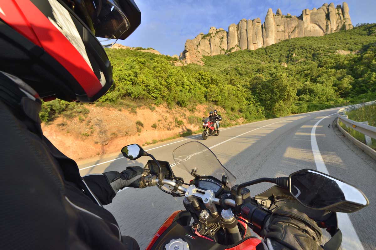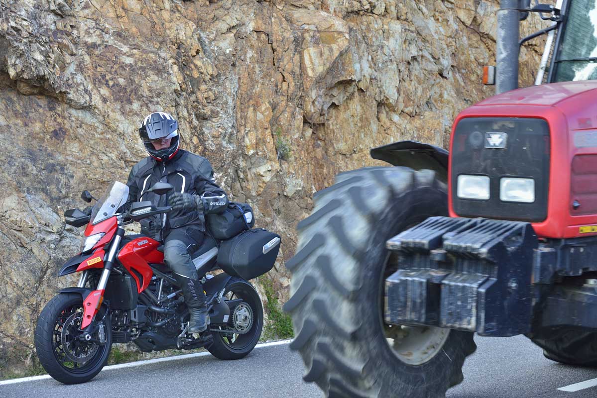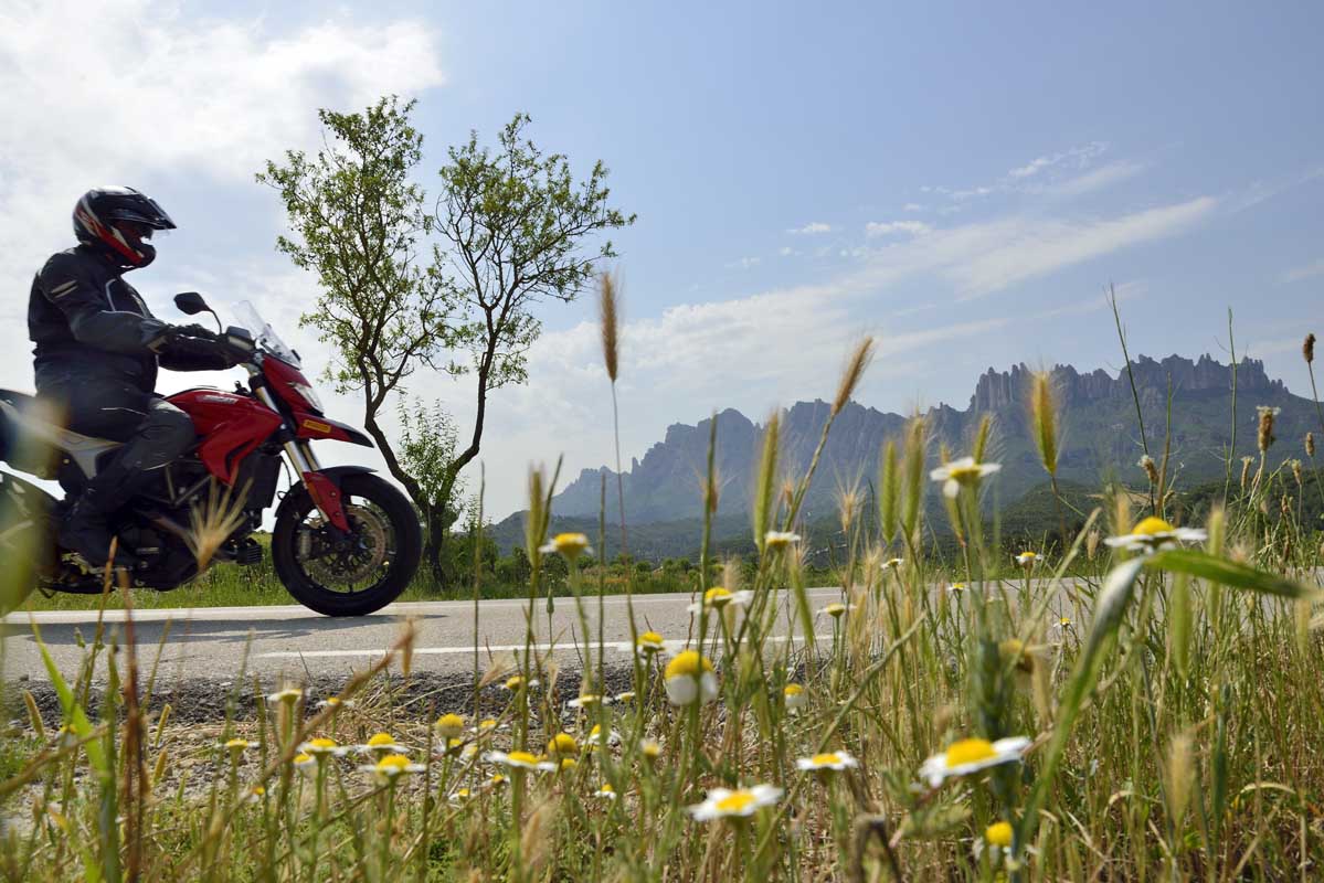 Normaal gesproken kunt u met de motoren ook het circuit op, maar niet in het eerste weekend van juni, want dan is in Barcelona de MotoGP. Dat vertelt de dame van het VVV aan de reisjournalist, die zijn reportage maar al te graag zou kruiden met een paar rondjes GP-ervaringen. En die ook nogal verbaasd is: in april werd toch ook al een MotoGP in Jerez verreden? Ja, maar dat was de GP van Spanje en niet die van Catalonië, zoals nu in Barcelona. Wat een wereld van verschil is, in elk geval aan de andere kant van de Pyreneeën, waar het kapitaalkrachtige Catalonië naar onafhankelijkheid van het impopulaire Spanje streeft. In plaats van over separatisme en nationalisme in Europa te discussiëren, hier volledigheidshalve de informatie dat in het door Madrid geregeerde land nóg twee kampioenschappen op de kalender staan, de GP van Aragon en die van Valencia. Maar niemand hoeft jaloers te zijn, want wie Marquez, Lorenzo en Pedrosa in huis heeft, heeft binnen het MotoGP-circus wel wat extra races verdiend. Blijft alleen de vraag waarmee wij aan de start moeten komen in het bochtige Catalonië. Een vette Enduro? Ach nee, liever een sportieve en lichte maar toch voor toeren geschikte machine, die ook op het racecircuit een goed figuur slaat. De Ducati Hyperstrada 939! Een gemakkelijke zitpositie, klein windscherm, koffertjes en een pittige L-twin.