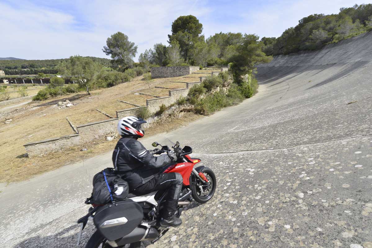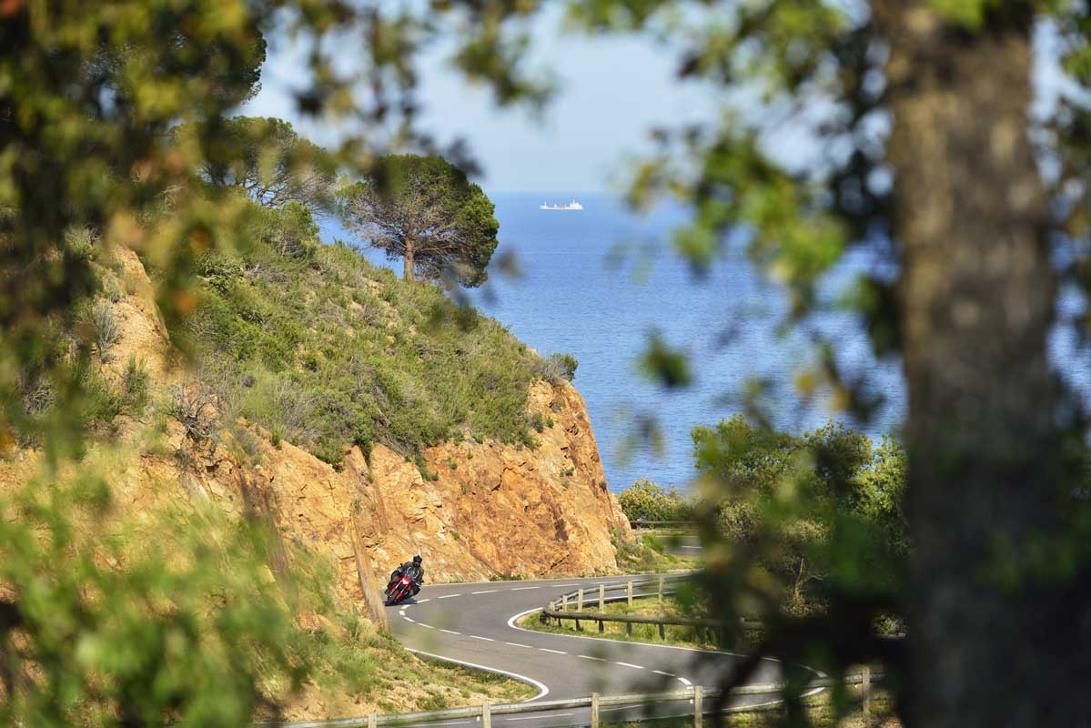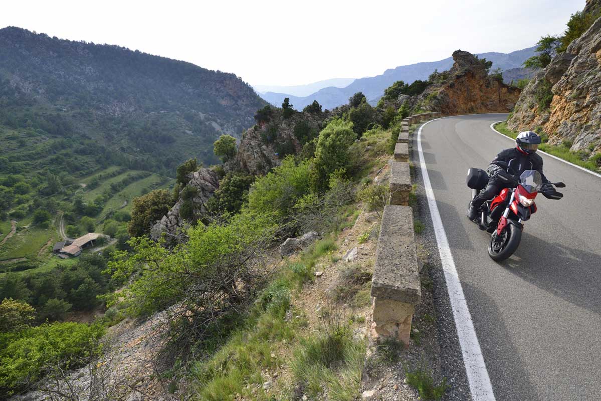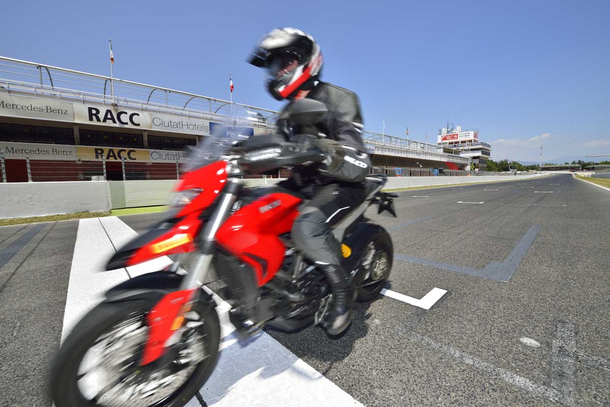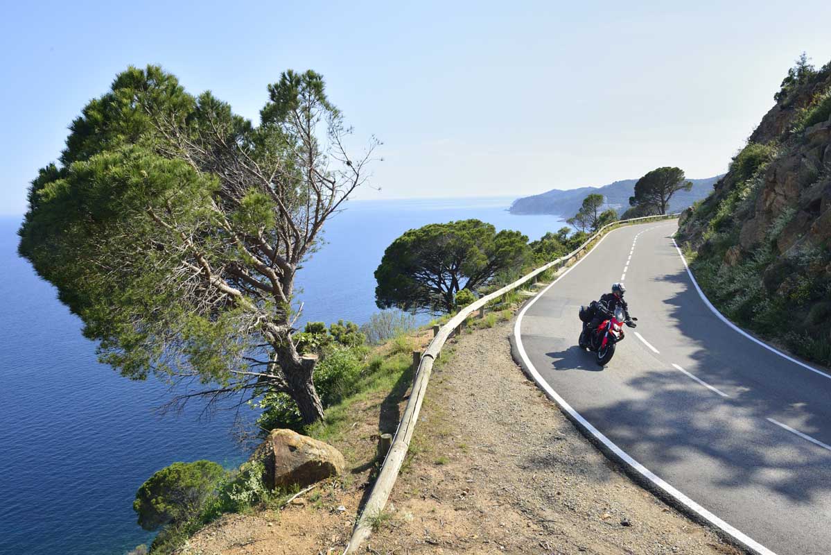 Normaal gesproken kunt u met de motoren ook het circuit op, maar niet in het eerste weekend van juni, want dan is in Barcelona de MotoGP. Dat vertelt de dame van het VVV aan de reisjournalist, die zijn reportage maar al te graag zou kruiden met een paar rondjes GP-ervaringen. En die ook nogal verbaasd is: in april werd toch ook al een MotoGP in Jerez verreden? Ja, maar dat was de GP van Spanje en niet die van Catalonië, zoals nu in Barcelona. Wat een wereld van verschil is, in elk geval aan de andere kant van de Pyreneeën, waar het kapitaalkrachtige Catalonië naar onafhankelijkheid van het impopulaire Spanje streeft. In plaats van over separatisme en nationalisme in Europa te discussiëren, hier volledigheidshalve de informatie dat in het door Madrid geregeerde land nóg twee kampioenschappen op de kalender staan, de GP van Aragon en die van Valencia. Maar niemand hoeft jaloers te zijn, want wie Marquez, Lorenzo en Pedrosa in huis heeft, heeft binnen het MotoGP-circus wel wat extra races verdiend. Blijft alleen de vraag waarmee wij aan de start moeten komen in het bochtige Catalonië. Een vette Enduro? Ach nee, liever een sportieve en lichte maar toch voor toeren geschikte machine, die ook op het racecircuit een goed figuur slaat. De Ducati Hyperstrada 939! Een gemakkelijke zitpositie, klein windscherm, koffertjes en een pittige L-twin.