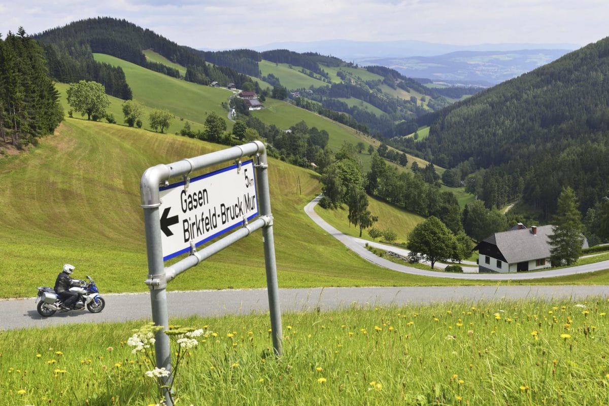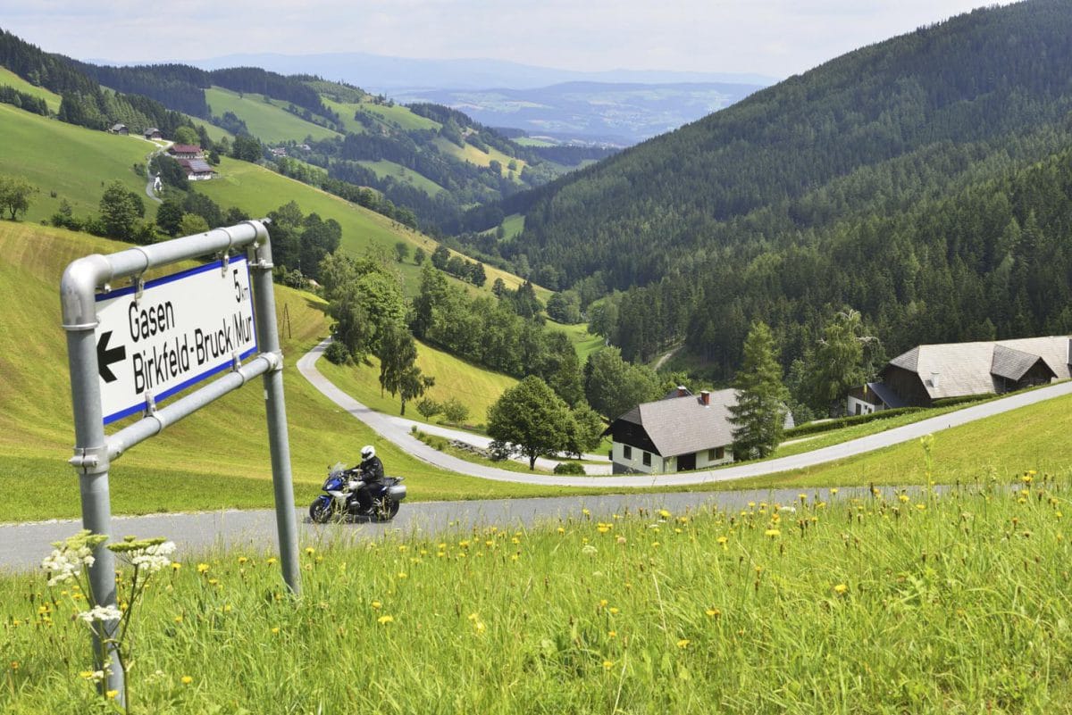 Södingberg en Großstübing heten de dorpen waar we op weg naar Deutschfeistritz doorheen rijden. Een kleine onbedorven wereld in een onbedorven dal, zo ziet het eruit. Maar de realiteit is een berg die voor een hoop problemen zorgt: sluitende scholen, trek naar de stad. Rust dreigt te verworden tot doodse stilte. Op een bord luidt protest. Vanzelfsprekend heeft niemand zin in de geplande groeve, waardoor om de vijf minuten een truck door het dal zou denderen. Het enorme onweer dat plotseling losbarst en dat, behalve bakken regen, ook voor een temperatuurdaling zorgt, van 34 naar 20 graden, past er naadloos bij. We worden vanzelf weggespoeld naar Bruck an der Mur. We belanden in het gezellige Gasthof Pichler. waar oma zo formidabel kookt dat de kleindochters er altijd weer graag op bezoek komen. En waar Rudi, de baas van het hotel, de volgende dag bewijst dat ie op z’n GS ook niets laat aanbranden. Kortom: Gasthof Pichler is exact het juiste vertrekpunt voor de volgende 370-kilometerdag.