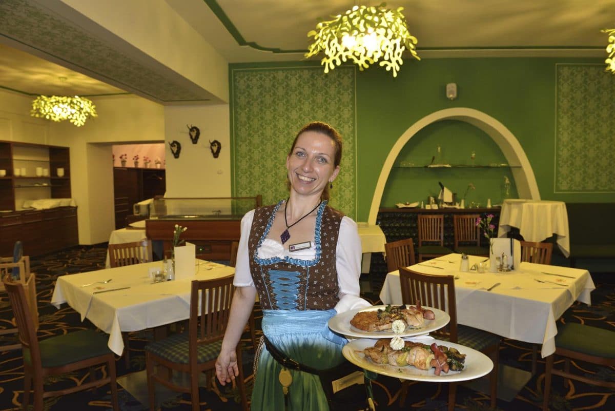 Ik herinner me nog vaag de weg naar Panoramahotel Hauserhof, waar ik al eens eerder te gast was: een smal, bochtig pad door het bos, dat omhoog voerde naar Kreuth in de buurt van Hermagor. Daar hebben we voor vandaag opnieuw kamers gereserveerd. En omdat mannen, zoals we weten, niet graag en al helemaal niet vlak voor ons reisdoel het navigatiesysteem naar de weg vragen, buigen we in Jennig af van de B111 en volgen we de borden naar Kreuth. Op een smal, bochtig weggetje door het bos stuiten we op een SUV die er flink tegenaan gaat. Na de nodige prachtige kilometers komen we bij het gezellig ogende berghotel… helaas het verkeerde. Terug, vlug-vlug, het gas erop, remmen, opnieuw gassen, weer remmen en meteen in Hermagor omhoog naar Kreuth ob Möschach 1, het juiste adres voor een weerzien met het Hauserhof en met senior chief Charly, die z’n late gasten niet hongerig laat staan.