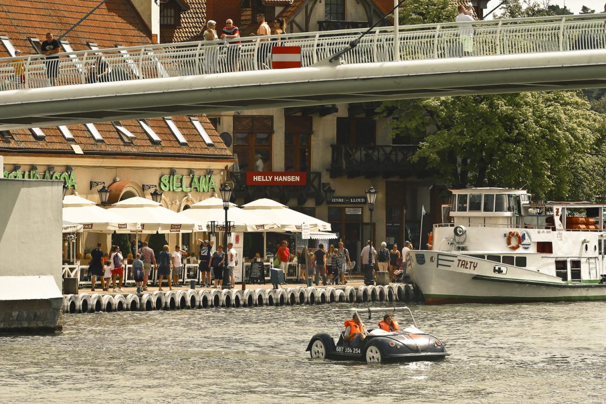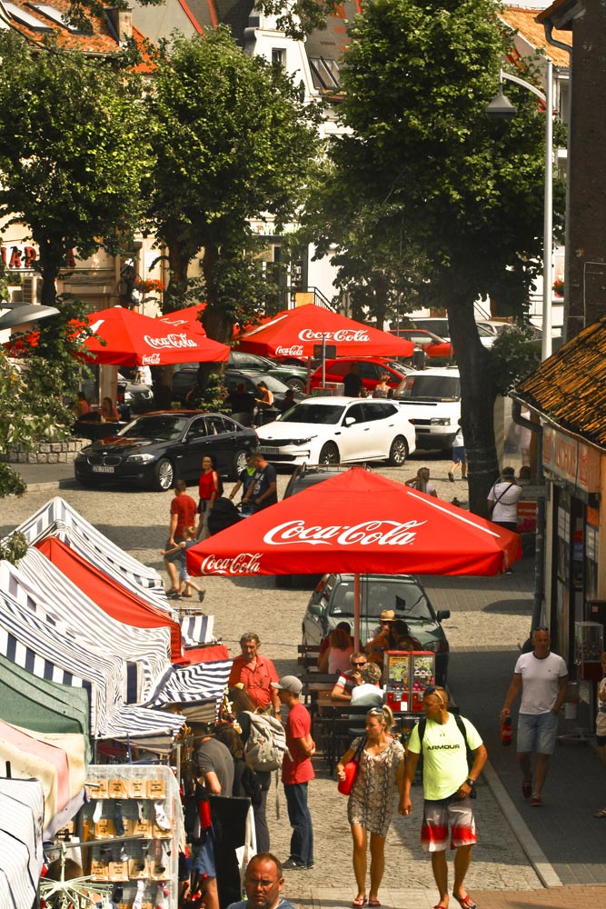 De potentie van liefelijk en zelfs mondain toerisme in Polen ervaren we in de stadjes Mikołajki en Giżycko, beiden gelegen aan weids water in een wat minder geaccidenteerd deel van Mazurië. Mikołajki heeft een leuk haventje met een enorme brug daar pontificaal overheen. Onder je door peddelen vrolijke toeristen op hun waterfiets over een zijtak van het enorme Śniardwymeer. Het vertier komt op ons over zoals je dat in de jaren ’80 in Nederland trof en misschien is dat juist de grootste attractie. Het dorpje zelf houdt het midden tussen een slaperig Frans stadje en een Scandinavische vissershaven.
