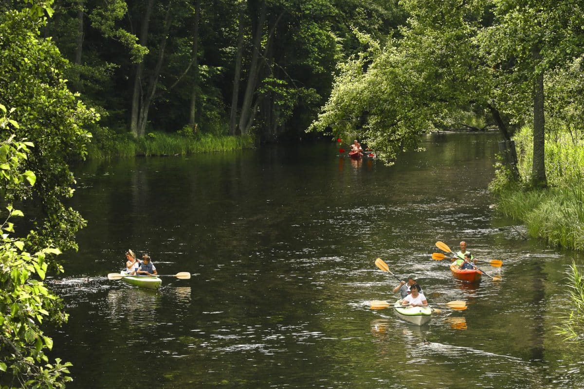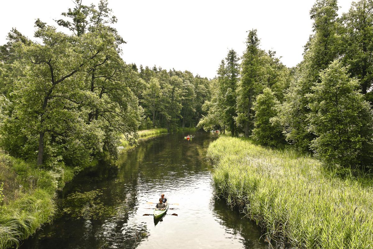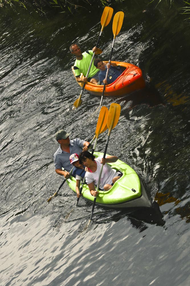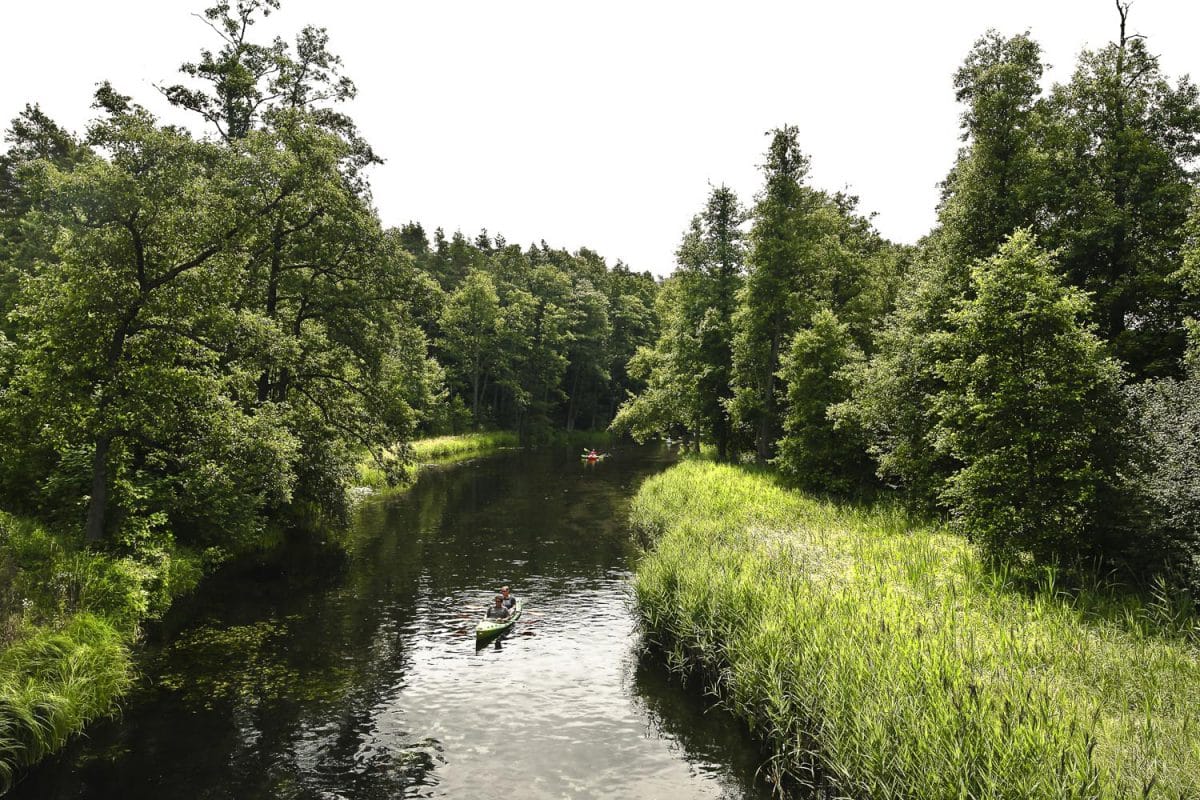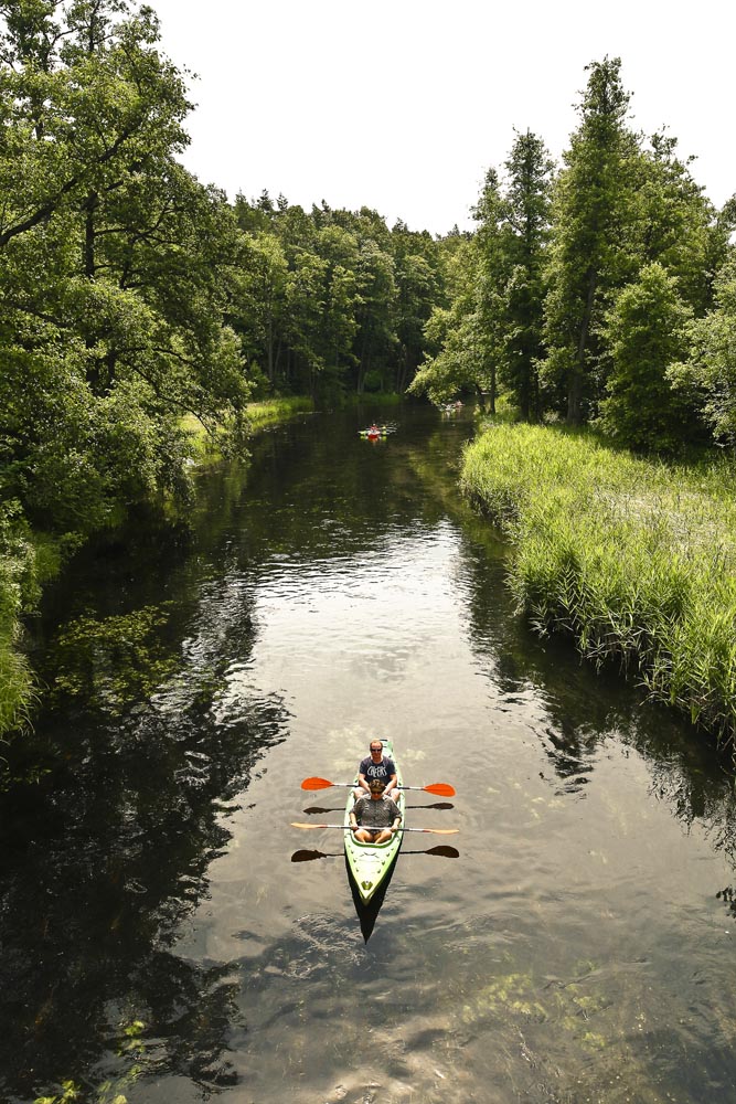 Het is mooi om te zien dat plaatselijk ondernemers nog moeten wennen aan hun rol in het toerisme. Wanneer we het leuke plaatsje Krutyn binnenrijden, treffen we een aaneenschakeling van kanoverhuurbedrijven. Geen verhuurder lijkt zijn nek uit te steken om de vliegen van de buurman af te vangen. Aan vriendelijkheid overigens geen gebrek! Wat wil je, met zo’n kanoparadijsje als de Krutynia-rivier op spuugafstand kún je haast niet chagrijnig zijn. Het concept is tamelijk eenvoudig: een busje brengt je naar een plek stroomopwaarts, waarna je rustig peddelend het landschap doorkruist en vanzelf weer bij je oorspronkelijk vertrekpunt uitkomt. Je kunt er gerust vanuit gaan dat je motor en spullen er dan nog staan. We voelden ons vooral wat dat betreft volledig op ons gemak.