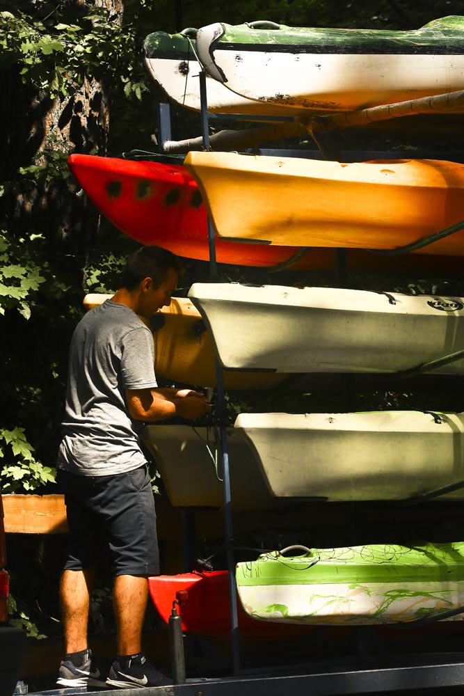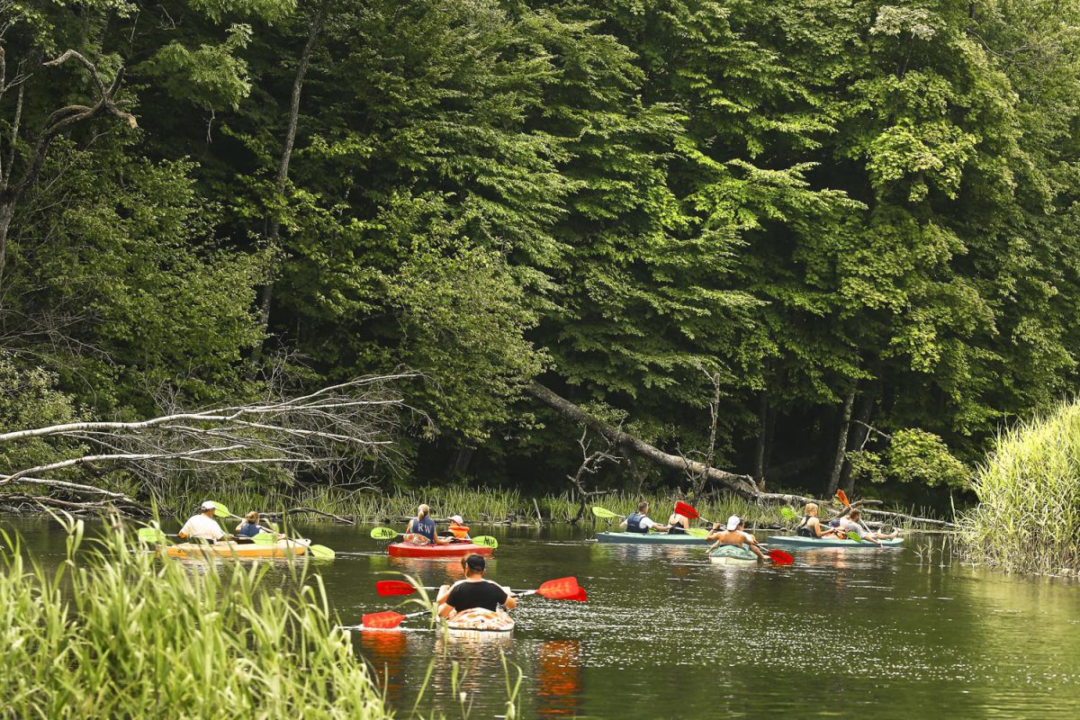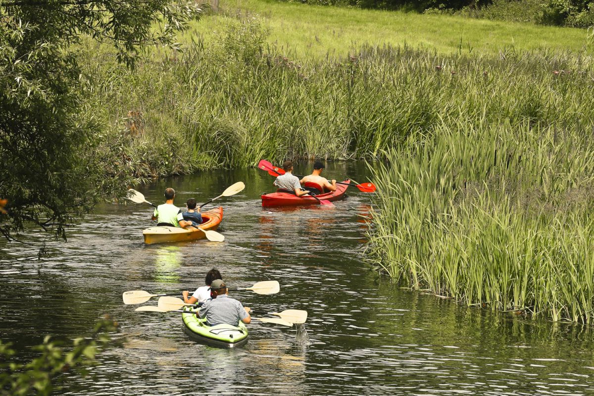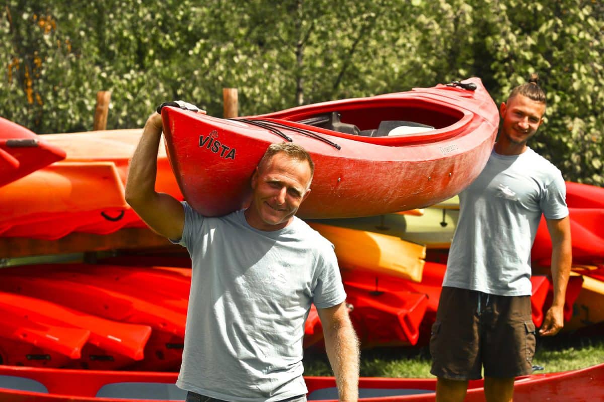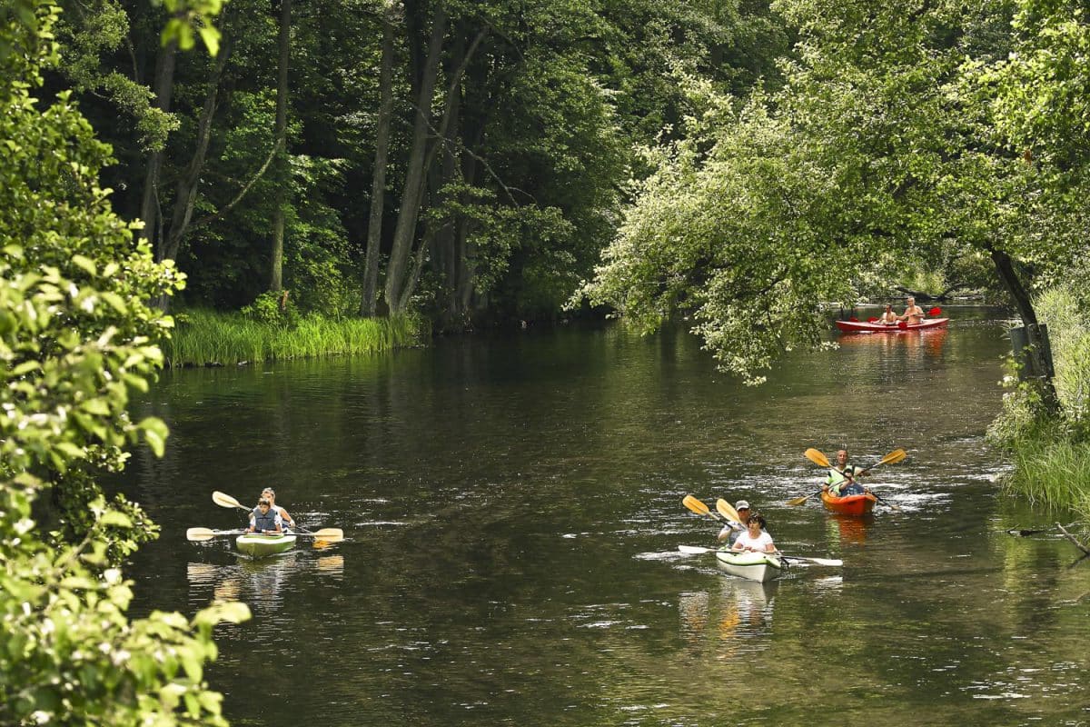 Het is mooi om te zien dat plaatselijk ondernemers nog moeten wennen aan hun rol in het toerisme. Wanneer we het leuke plaatsje Krutyn binnenrijden, treffen we een aaneenschakeling van kanoverhuurbedrijven. Geen verhuurder lijkt zijn nek uit te steken om de vliegen van de buurman af te vangen. Aan vriendelijkheid overigens geen gebrek! Wat wil je, met zo’n kanoparadijsje als de Krutynia-rivier op spuugafstand kún je haast niet chagrijnig zijn. Het concept is tamelijk eenvoudig: een busje brengt je naar een plek stroomopwaarts, waarna je rustig peddelend het landschap doorkruist en vanzelf weer bij je oorspronkelijk vertrekpunt uitkomt. Je kunt er gerust vanuit gaan dat je motor en spullen er dan nog staan. We voelden ons vooral wat dat betreft volledig op ons gemak.