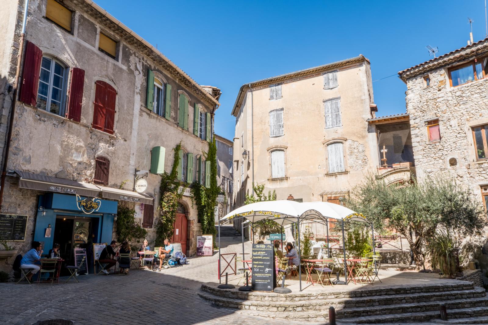 Ach, de lunch is lekker, het vervolg vooral functioneel kilometers maken. Tot het eindpunt Vézénobres opduikt, een dorp op een heuveltop. Ik tik de versnellingen nog een laatste keer omhoog om vaart te maken. Misschien ben ik op tijd boven voor de zonsondergang.