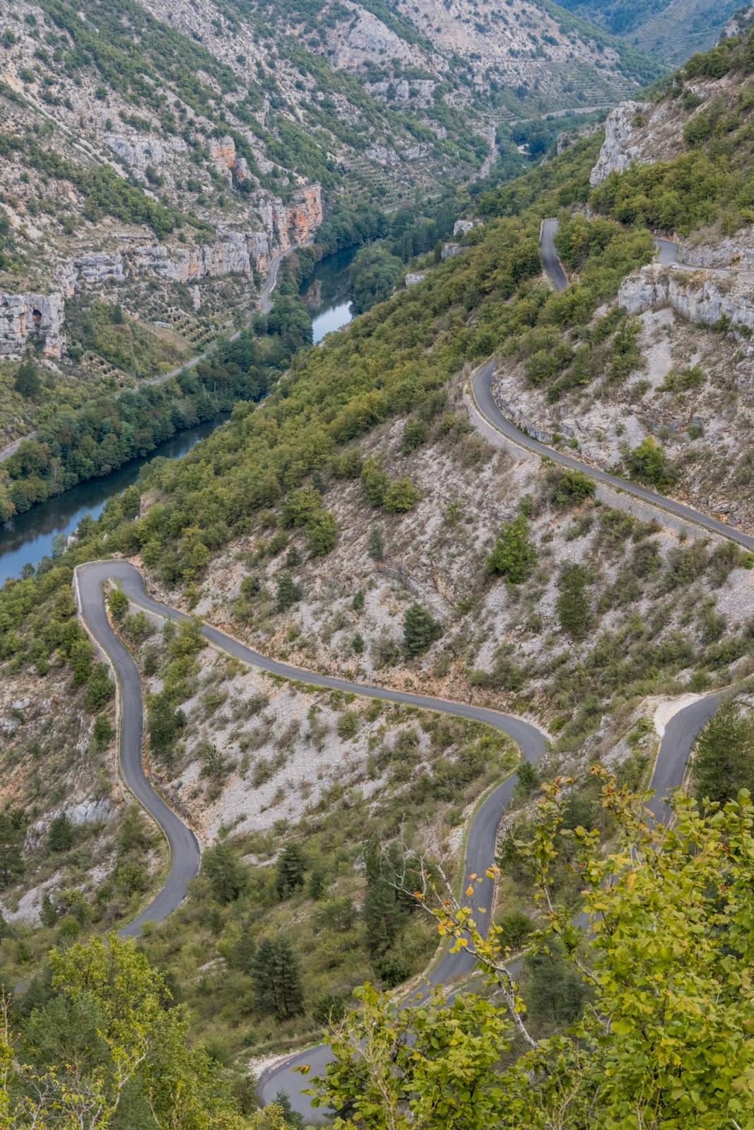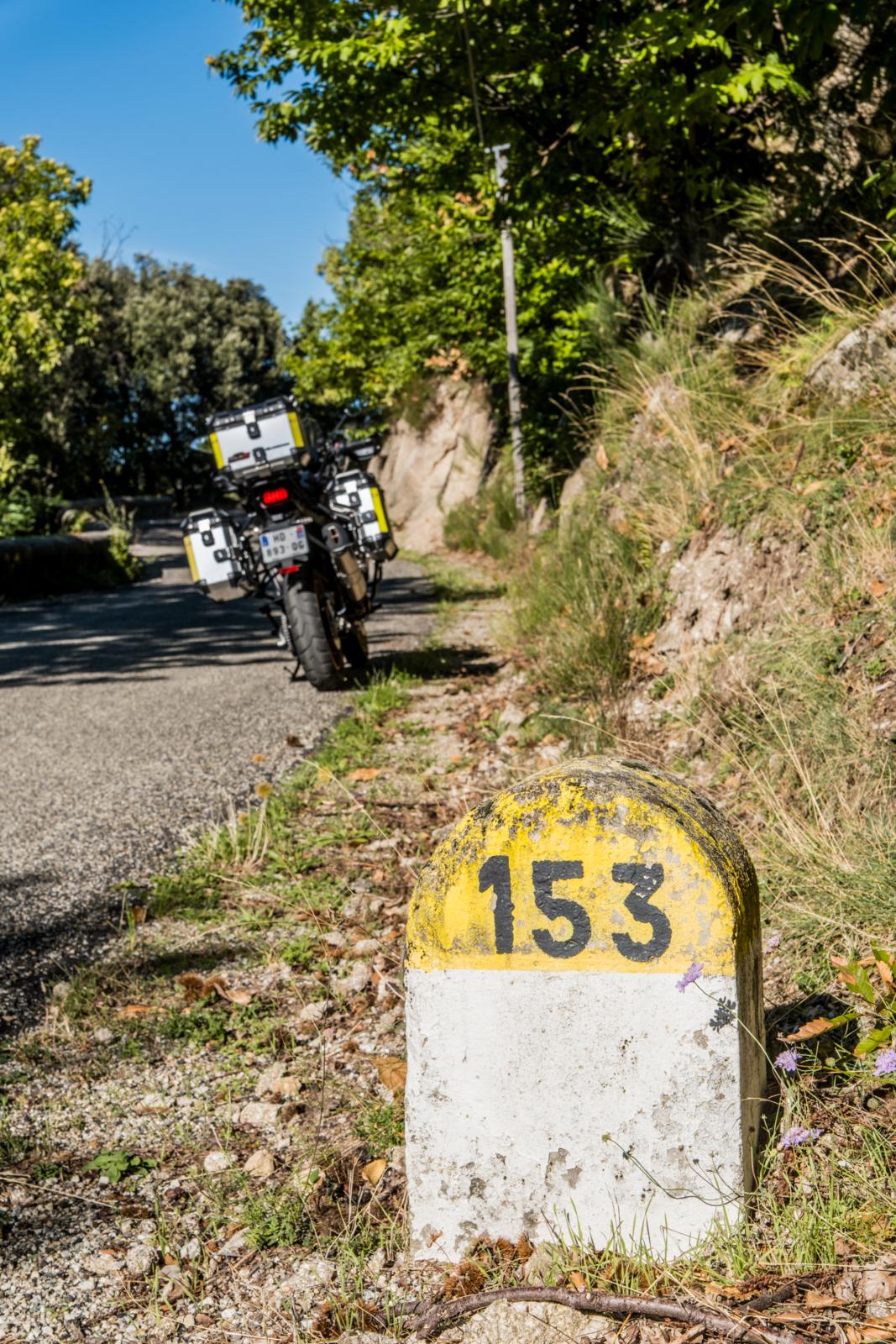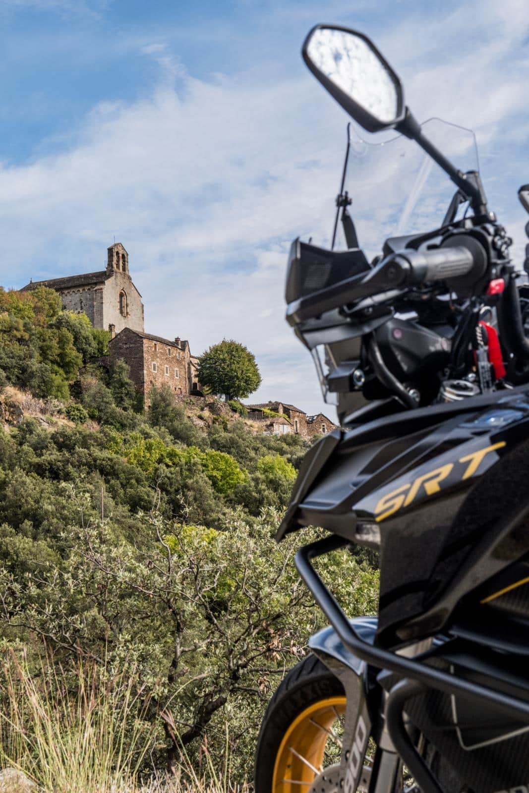 De vallei van de Tarn is een motorklassieker met tunnels, overhangende rotswanden, steile afgronden, gehuchten met een handvol huizen en bijna verlaten dorpen. Met de banden op temperatuur kan ik de motor vlotter door de bochten loodsen. Kijken, insturen, gas erbij. Het gaat bijna vanzelf.