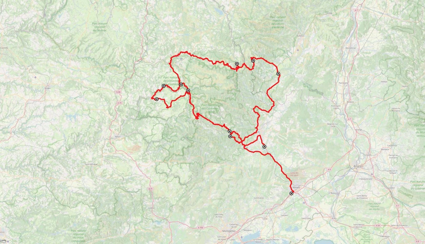 De Cevennen liggen in het zuiden van Frankrijk, grofweg tussen de Ardèche en het departement Hérault. Een groot deel van de streek is beschermd natuurgebied en zelfs Unesco Werelderfgoed. Vanuit Utrecht naar het beginpunt Nîmes is ongeveer 1.150 kilometer rijden. Er is ook een uitstekende treinverbinding. In de stad kun je een motor huren.
