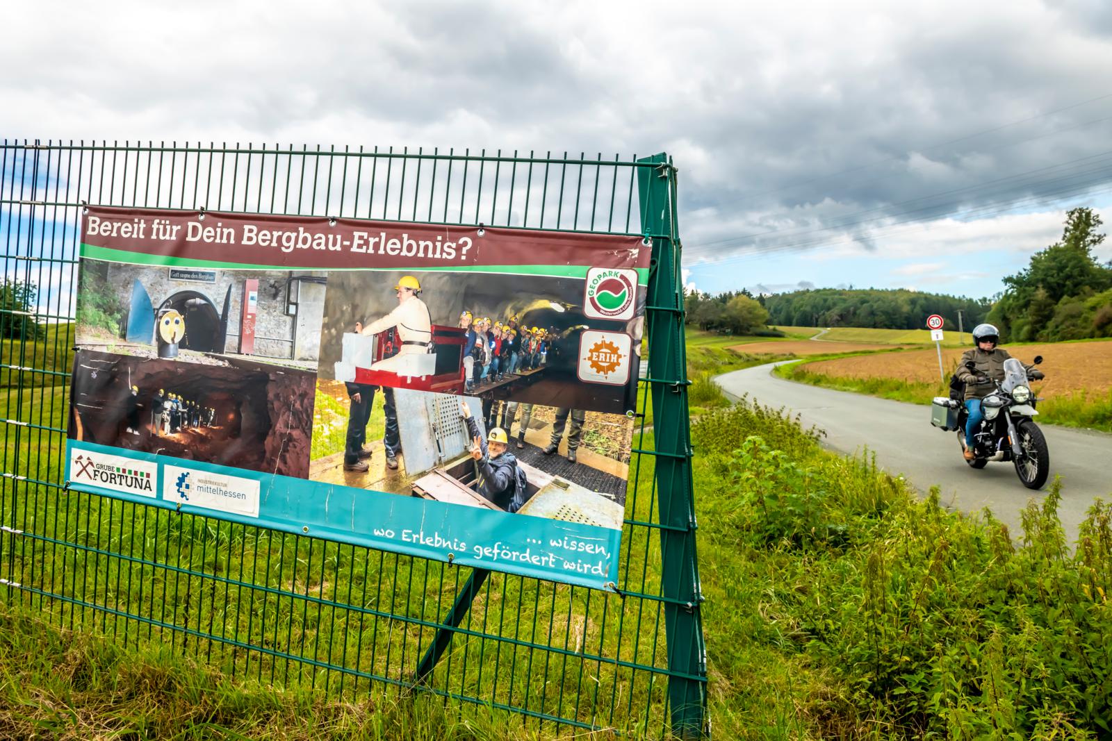 Per veerboot, aangedreven door vier 221 kW Schottel pomp-jets, steken we van Remagen/Kripp naar Linz de Rijn over. Ter begroeting, hoog boven de rivier, kasteel Dattenberg en kasteel Arenfels. Daarna slaan we af naar het Westerwald, waar je zonder navigatie als Hans en Grietje kunt verdwalen. Hoe dan ook, de volgende vaste stop is de museummijn Grube Fortuna bij Solms-Oberbiel. Daar klinkt op vrijdagochtend om 11 uur voor de ingang van de mijn een luide ‘Glück Auf!’ – start van de ondergrondse reis, vandaag begeleid door de ervaren mijnwerker Frank Paul. In de smeedijzeren lift, niets voor claustrofobische bikers, zakken we naar 150 meter onder NAP en razen daarna per mijnwagon door een donkere, nauwe gang verder naar het winningsgebied. Het delven van ijzererts begon hier in 1847, toen nog in de dagbouw; de laatste delving stamt uit 1983. Gehoorbescherming was er pas sinds 1970, maar altijd was er dat longvervuilende stof. Daarnaast is er 95% luchtvochtigheid bij een constante 13 graden. Een mijnwerker met zijn 25 kg zware boormachine produceerde aanvankelijk ongeveer één ton erts per shift; met modernere techniek werd de hoeveelheid zelfs verdrievoudigd. Mannen, wat een zware arbeid. Respect! Weer bovengronds lunchen we met kumpel Frank terwijl hij uitlegt hoe de eerste laag werd opengebroken, hoe bunkerlaadoperaties verliepen en wat een schraperbediening is. Mijnmuseum Fortuna telt ongeveer zeventig locomotieven, waaronder schatjes als de erwtensoep-groene ‘Monika’ uit 1913. Is dit je allemaal te veel? Een alternatief vind je tegenover de mijn, in herberg ‘Zum Zechenhaus’.