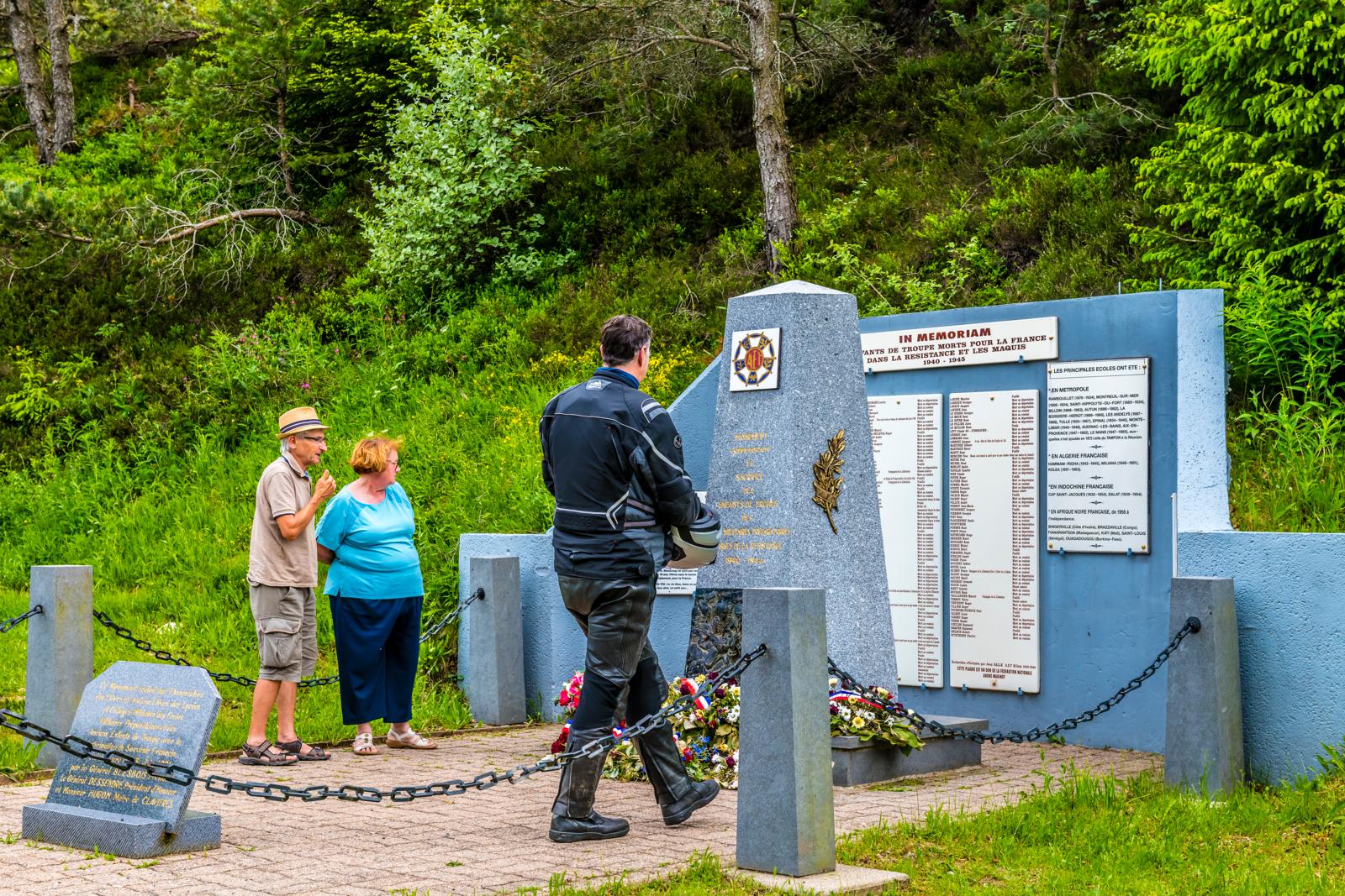 Niet zo gemakkelijk te verteren is het monument voor de gesneuvelde strijders van de Résistance op Mont Mouchet. Eindspurt terug naar Le Puy. Echt iets voor de routeknutselaar. De Michelin-wegenkaart is een schakelschema vol met groene, gele, witte en blauwe lijnen – de rode tellen voorlopig niet mee. Alles is verschrikkelijk met elkaar verknoopt. Maar dat is precies waar het om gaat: het vinden van de kronkeligste route. We kiezen de D589 over Saugues en Monistrol-d’Allier tot Saint-Privat-d’Allier, maken onderweg kennis met ‘La Bête van Gévaudan’, een grijnzende monumentale sculptuur, opgericht ter herinnering aan een roofdier dat aan het einde van de 18e eeuw zo’n 100 mensen uit de omgeving heeft verscheurd.