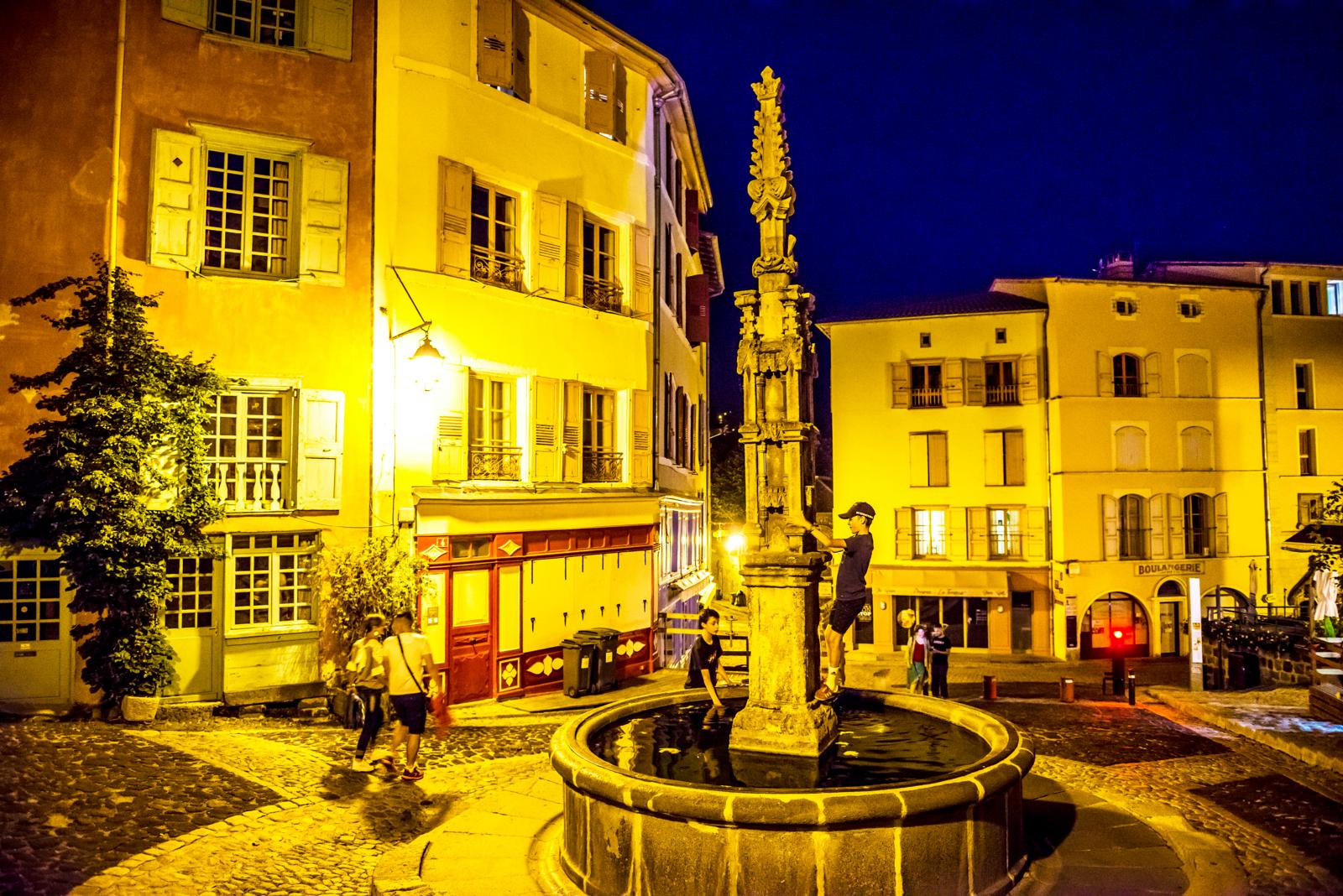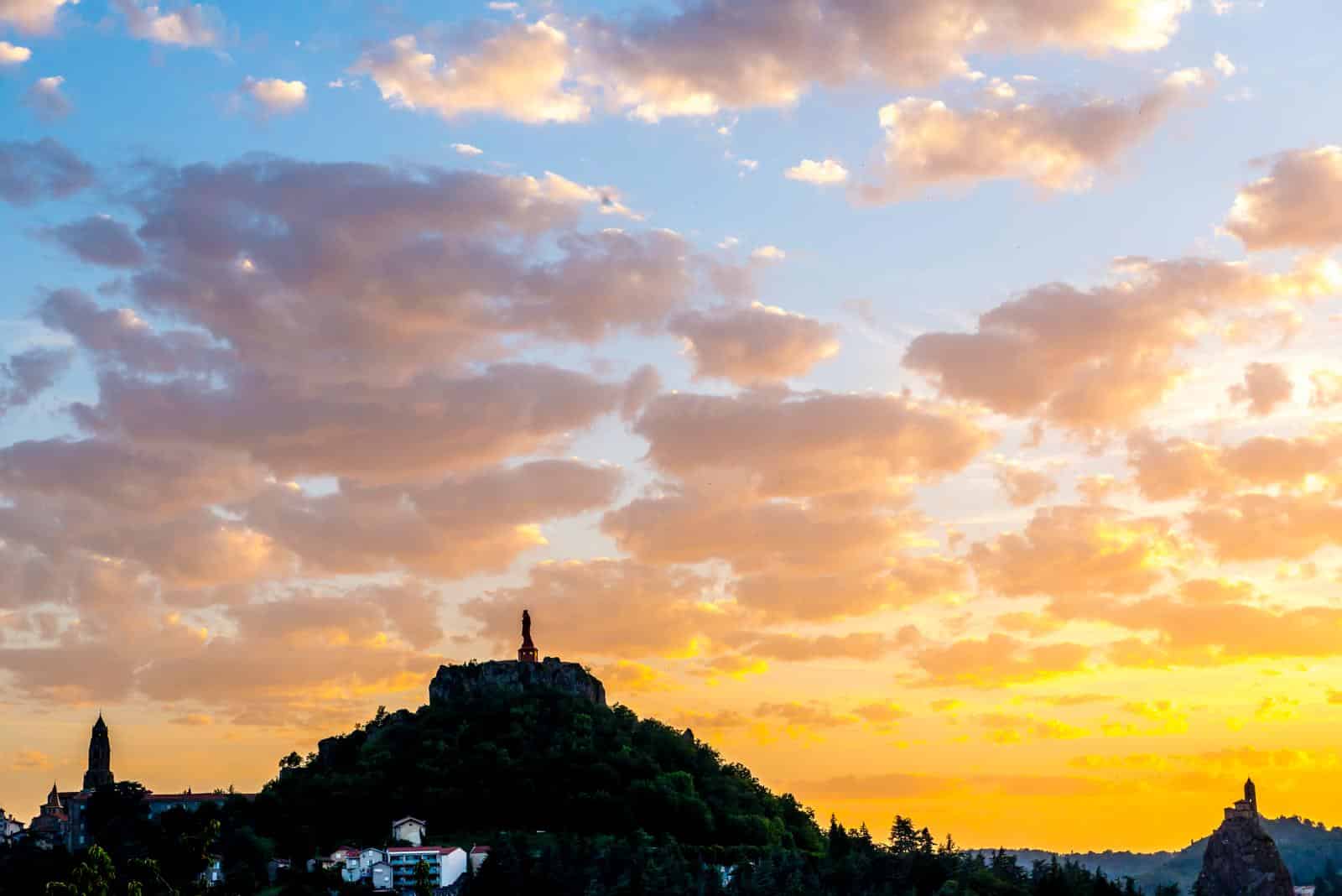 Voor nachtelijke dromen gaan we nog een keer de oude stad van Le Puy in, in de Bermuda-driehoek tussen Place Cadelade, Place des Tables en Place du Plot. Vooral voor het triumviraat van de Madonna van Notre Dame de France, de kerk Saint-Michel en de kathedraal Notre Dame de l’Annonciation, die boven op de uitgedoofde vulkaanschachten troont. En zo zijn we weer terug bij het begin van dit artikel, wat ook tegelijkertijd het einde is.