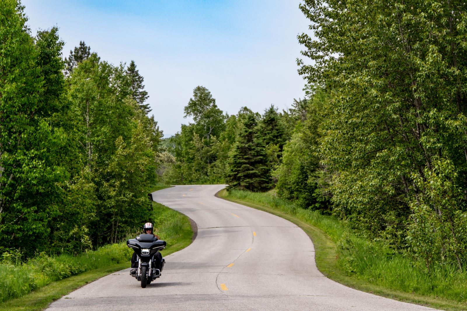 Terug op de North Shore Scenic Drive begint het laatste stuk richting de Canadese grens. Het is er aanzienlijk minder druk geworden omdat veel Canadezen de grens niet meer oversteken sinds Donald Trump de confrontatie met de noorderburen zocht. Het is er hoe dan ook heerlijk toeren in het grote niks. Zoveel ruimte is rustgevend, voelt als vrijheid. Ik houd het stuur stevig vast en laat de motor zijn werk doen. Veel kilometers rechtdoor nu. En toch niet saai.