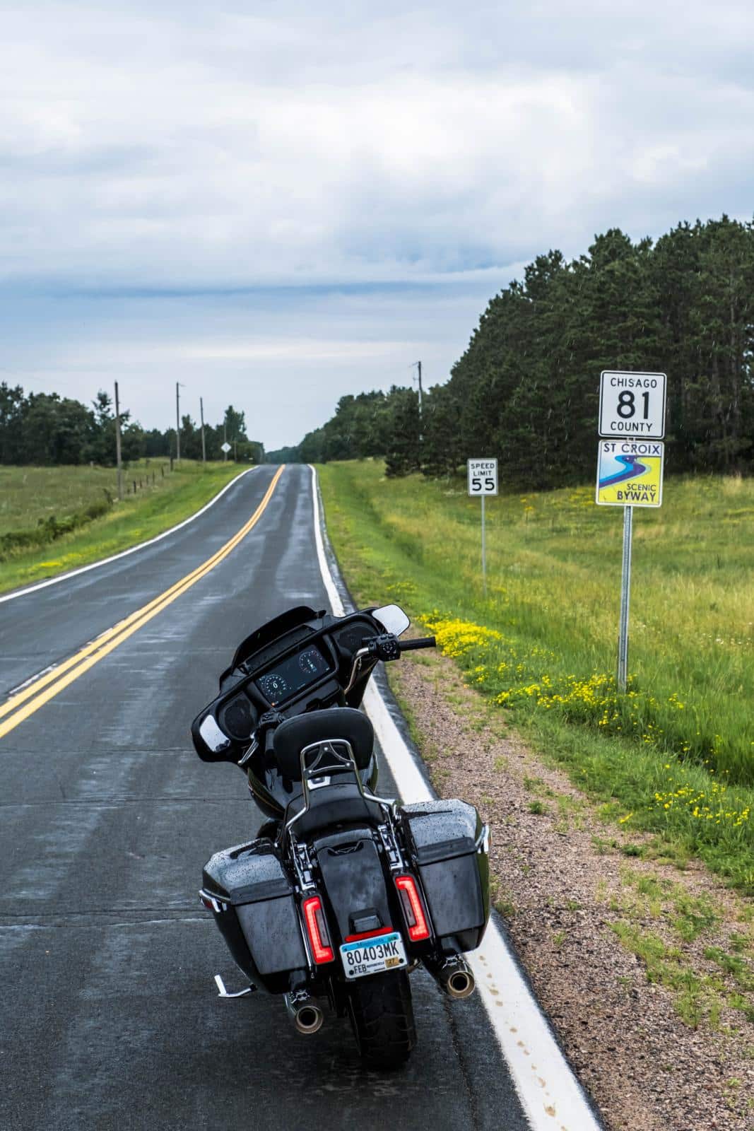 De Harley-Davidson Street Glide staat startklaar voor mijn hotel in Minneapolis. Maar het regent, dus ik heb het vertrek nog even uitgesteld om de route aan te passen. De legendarische Route 61 die ooit van New Orleans naar de Canadese grens liep, bewaar ik voor de terugreis. Volgens de weerman moet ik meer naar het oosten. Het zou er droger blijven. Dus rijd ik naar de St. Croix River om daar het asfalt naar het noorden op te pakken.
