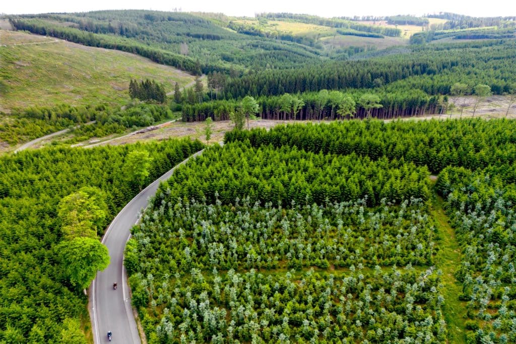‘Tot Bad Berleburg wordt het leuk,’ verheugt Reinhard zich over dertig bochtige kilometers. En eigenlijk zou hij in plaats van AC/DC ook Boudewijn de Groot kunnen draaien, als hij de zanger zou kennen. ‘Over de boom die doodging’ is een mooi lied, maar het panorama dat zich voor obx uitstrekt is angstaanjagend dystopisch. Het landschap is doorsneden door enorme bruine vlekken van gekapte arealen, waar ooit sparren stonden, tot ze door droogte en hitte uitgeput raakten waardoor schorskevers vrij spel kregen.