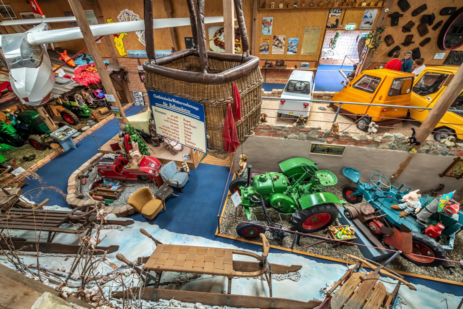 Bijna jammer dat het niet regent. Je zou urenlang in Usseln door het Curioseum kunnen dwalen – en altijd weer nieuwe en bizarre dingen ontdekken in deze museale wonderwereld, boordevol oldtimers, kitsch, kunst en rommel. Buiten staan een afgedankte onderzeeër en een Starfighter, binnen microcars, Jaguar E-Type en een Mercedes-Benz 300 SL met vleugeldeuren dicht op elkaar, terwijl je zowel Napoleon te paard als de buitenaardse ET tegenkomt in een soort zeepkist. En in een MV-Agusta-tentoonstelling treffen we de handtekeningjager Hartmut ‘Harti’ Kleinert, de gepensioneerde bakker toont trots zijn rood-zilveren raceoverall, vol met meer dan zestig handtekeningen van Giacomo Agostini tot John Surtees en Valentino Rossi.