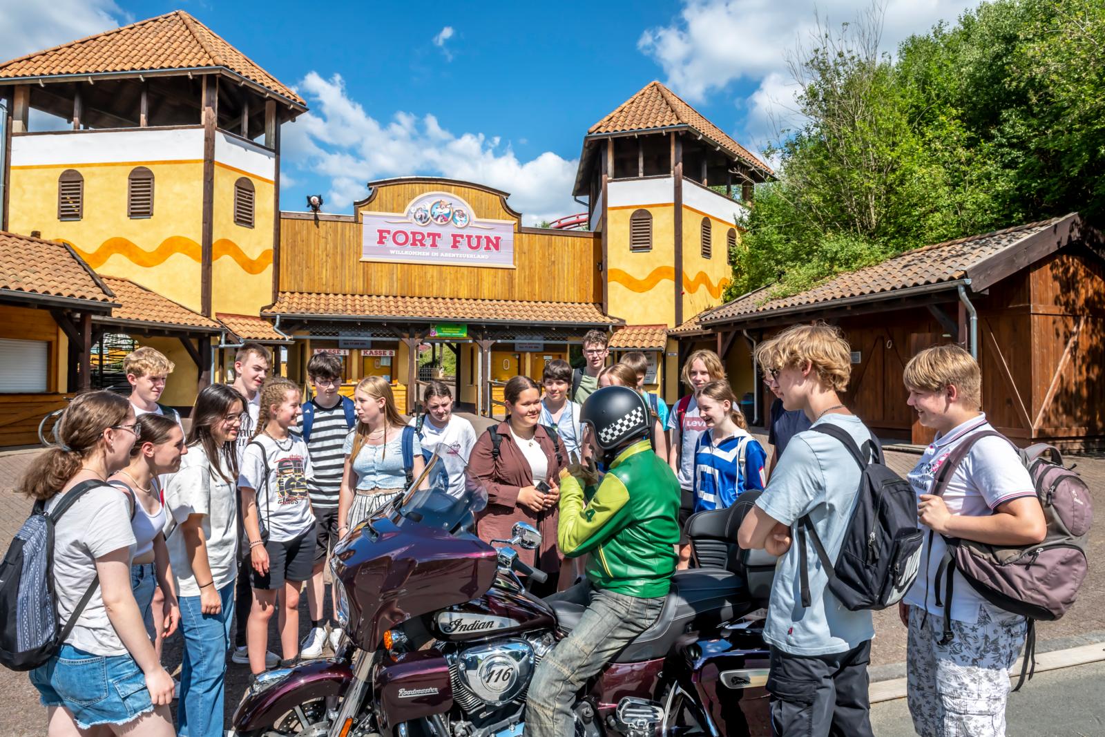 Door gaan we. Eerst naar de Bruchhauser Steinen, waar vier markante rotsen als tandenstompjes uit de beboste Istenberg oprijzen. Daar kun je paragliden of de Rothaarsteig beklimmen. Vervolgens een plek waar niemand al generaties omheen kan: Fort Fun Abenteuerland bij Bestwig-Wasserfall, een pretpark met attracties en shows zoals in het Wilde Westen. Vandaag zelfs met een native american, een edele ‘roodhuid’ uit Spirit Lake/Iowa. Tot grote vreugde van de klas 9.1 van de Städtischen Gesamtschule Lippstadt, die zich, eerst wat verlegen, uiteindelijk nieuwsgierig in de rollende disco met 200-watt surround sound verzamelt. Tot slot een korte blik op de achtbaan en het reuzenrad en we zitten alweer in het bochtenspel over de Andreasberg richting de toeristische mijn van Ramsbeck. Omdat het maar niet wil regenen, laten we de rit onder de grond voor wat het is en kiezen we voor de liftschacht en ander materieel. Zoals de afgedankte diesel-loc met een driecilinder Deutz van 75 pk bij 900 tpm. Of de zogenaamde Tourendampfer met 92 pk bij 4.200 tpm. Deze rijden nu rustig en soeverein, maar zichtbaar sneller door het Brabecketal dan vroeger loc A3M420. Die haalde volledig beladen slechts 4 km/u… over snelheid gesproken.