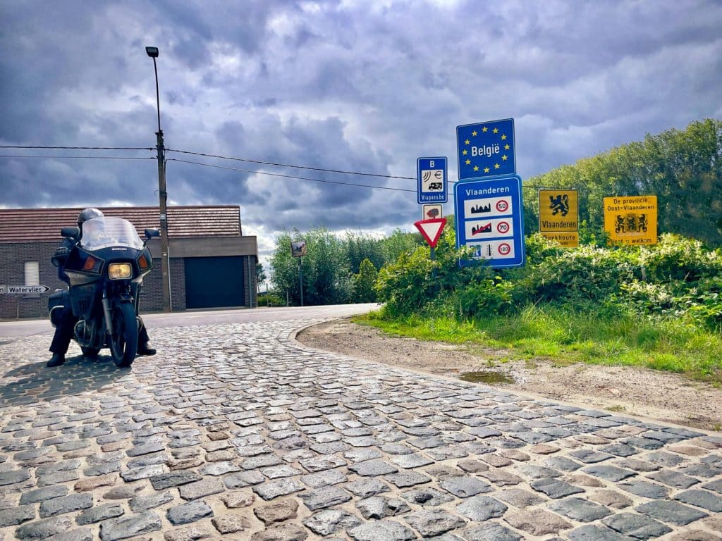 De geplande koffiestop bij Café Zeelandia (‘bij Greetje’) in Sint Kruis gaat niet door. Want Greetje doet niet open. Bij Jupiler! Dan rijden we maar door, Vlaanderen weer in. Omgeven door bieten- en aardappelvelden krijgen de kasseien van de Kerkweg over de volle zevenhonderdvijftig meter alle aandacht die ze verdienen.