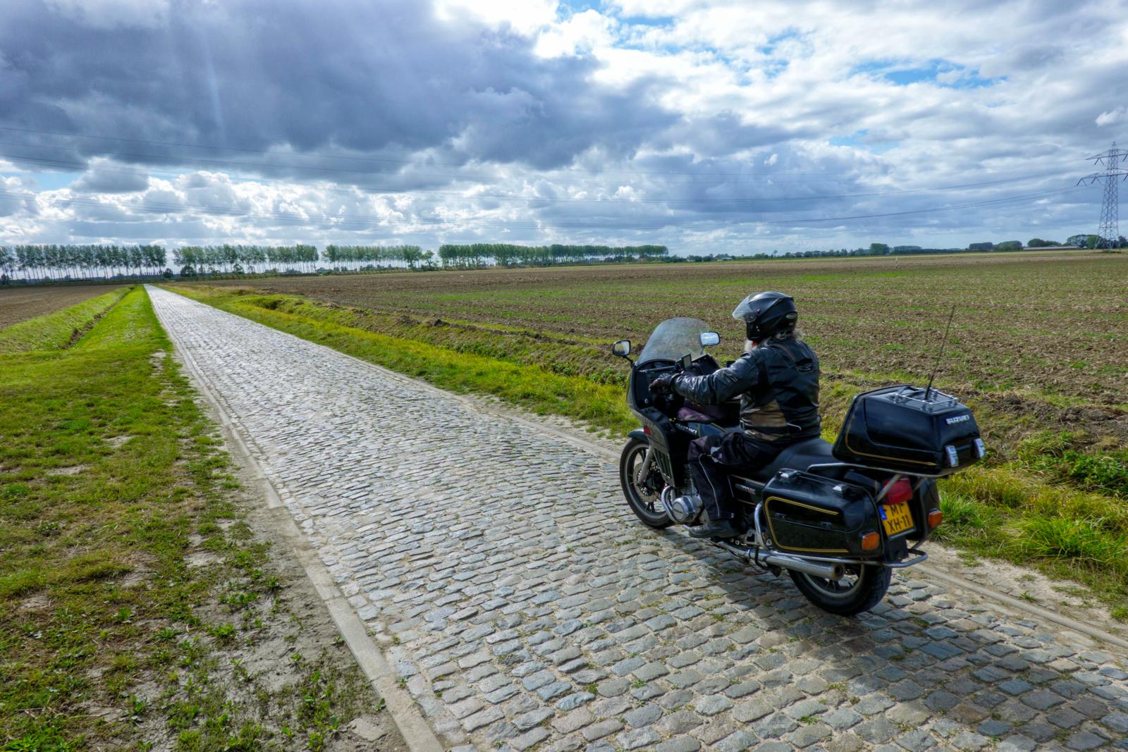 Serious about fun is de slogan van Suzuki. De Zeeuws-Vlaamse Suzuki-fanaat Levien heeft die boodschap kennelijk ook ter harte genomen om een kasseienroute in zijn territorium samen te stellen, met grensoverschrijdende afstekers naar België. Geen half werk voor Levien, nooit. Dat weten ook de leden van de Zeeuws-Vlaamse motorclub waarvoor Levien al jarenlang de mooiste motorroutes samenstelt.