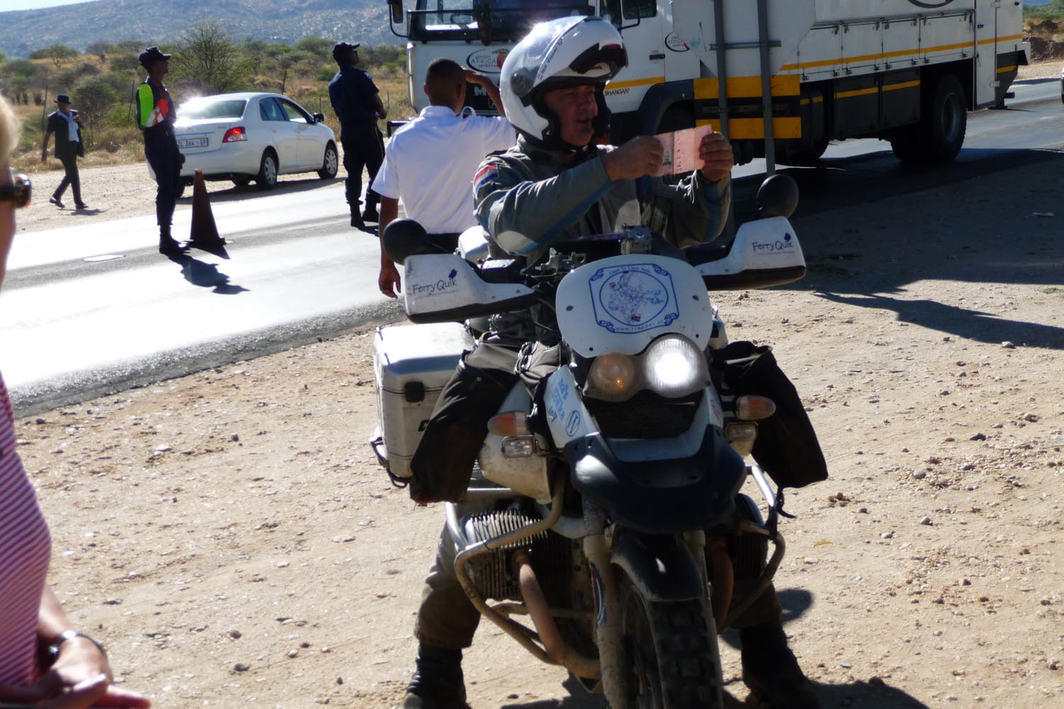 De wegen worden beter en vooral ook rechter en zo wordt ruim op tijd de Namibische hoofdstad Windhoek bereikt. Daar volgt een emotionele ontmoeting met echtgenote en moeder Wilma, die samen met enkele leden van motorclub de Skyriders gearriveerd was om de laatste etappes van de monsterrit mee te rijden.