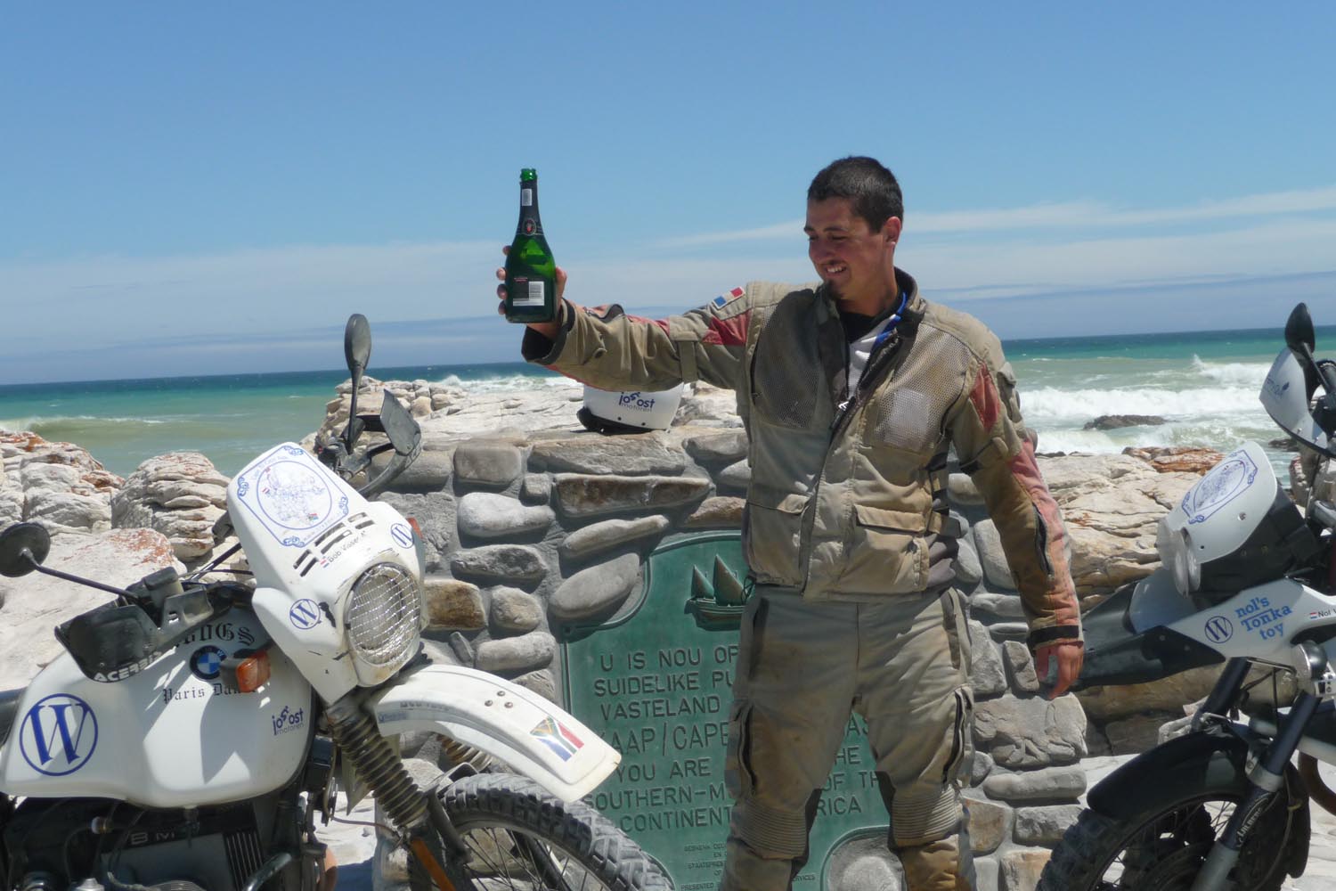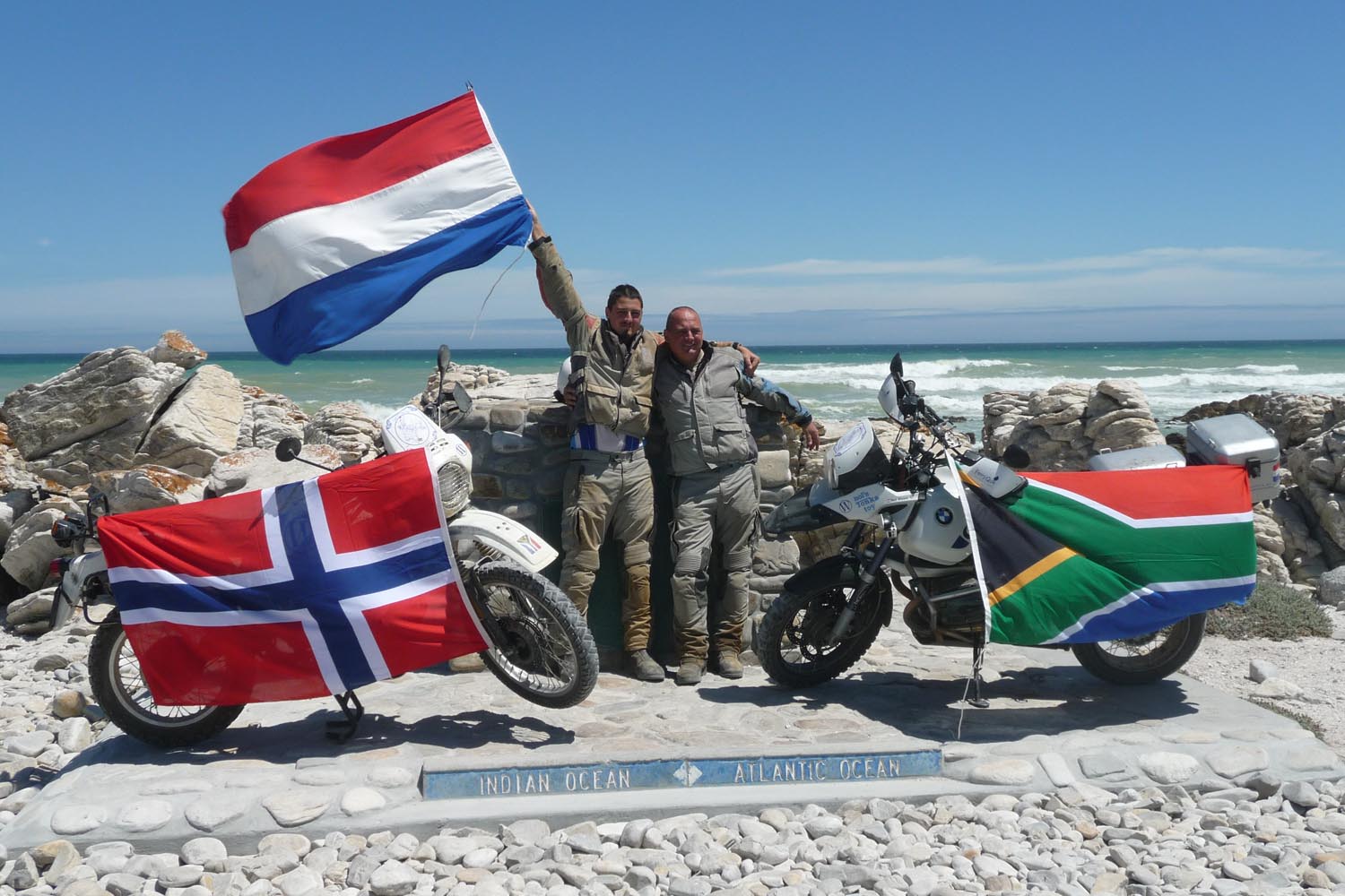 Op 22 december wordt via een prachtige weg door onder meer het pittoreske Napier en Elim koers gezet naar de Zuidkaap, waar vader Nol en zoon Bon na 115 dagen en bijna 30.000 km hun einddoel bereiken. De Grote Droom was verwezenlijkt. ‘Dat het zwaar zou worden, wisten we vooraf. Maar dat het zo zwaar was, nee dat kun je bij het bedenken van zo’n avontuur niet goed inschatten. Maar ik ben erg blij dat we het gehaald hebben, ondanks de problemen onderweg. Het was het waard, echt waar. En ik ben ontzettend trots op mijn pas 19-jarige Bob. Een echte bikkel en uit het goede hout gesneden,’ aldus een trotse vader Nol.