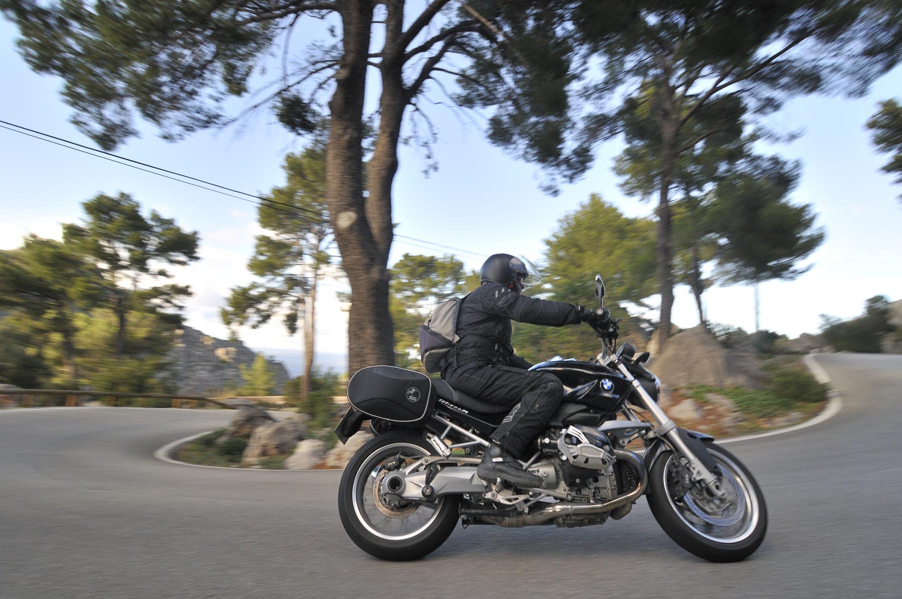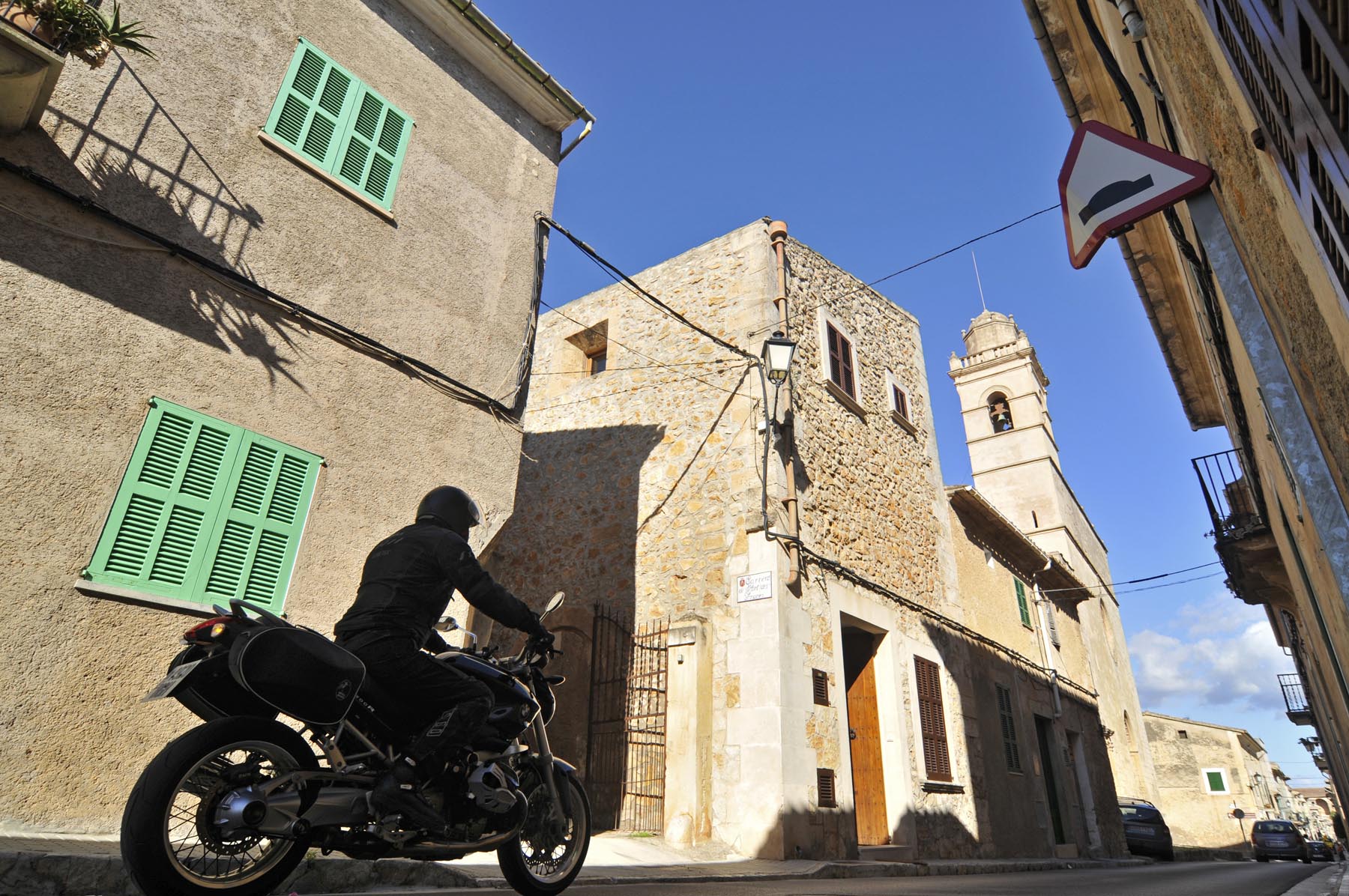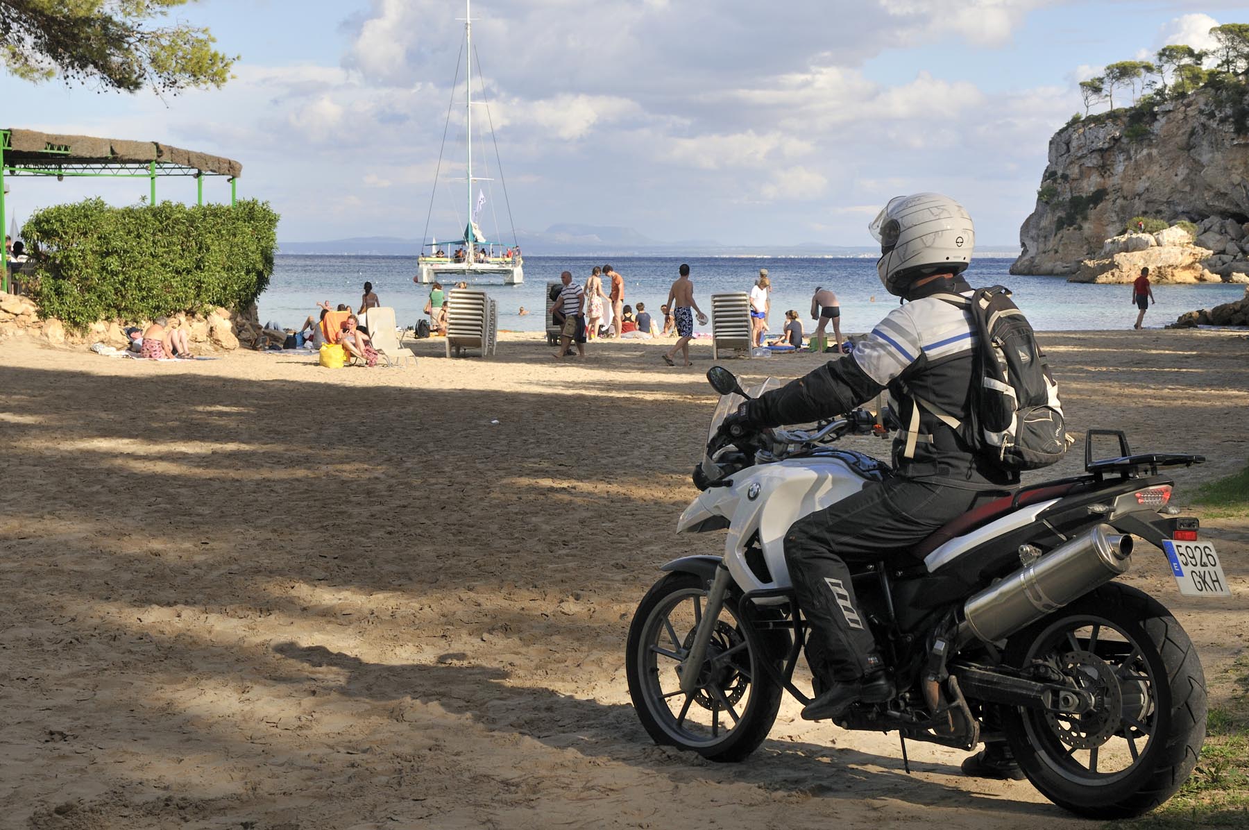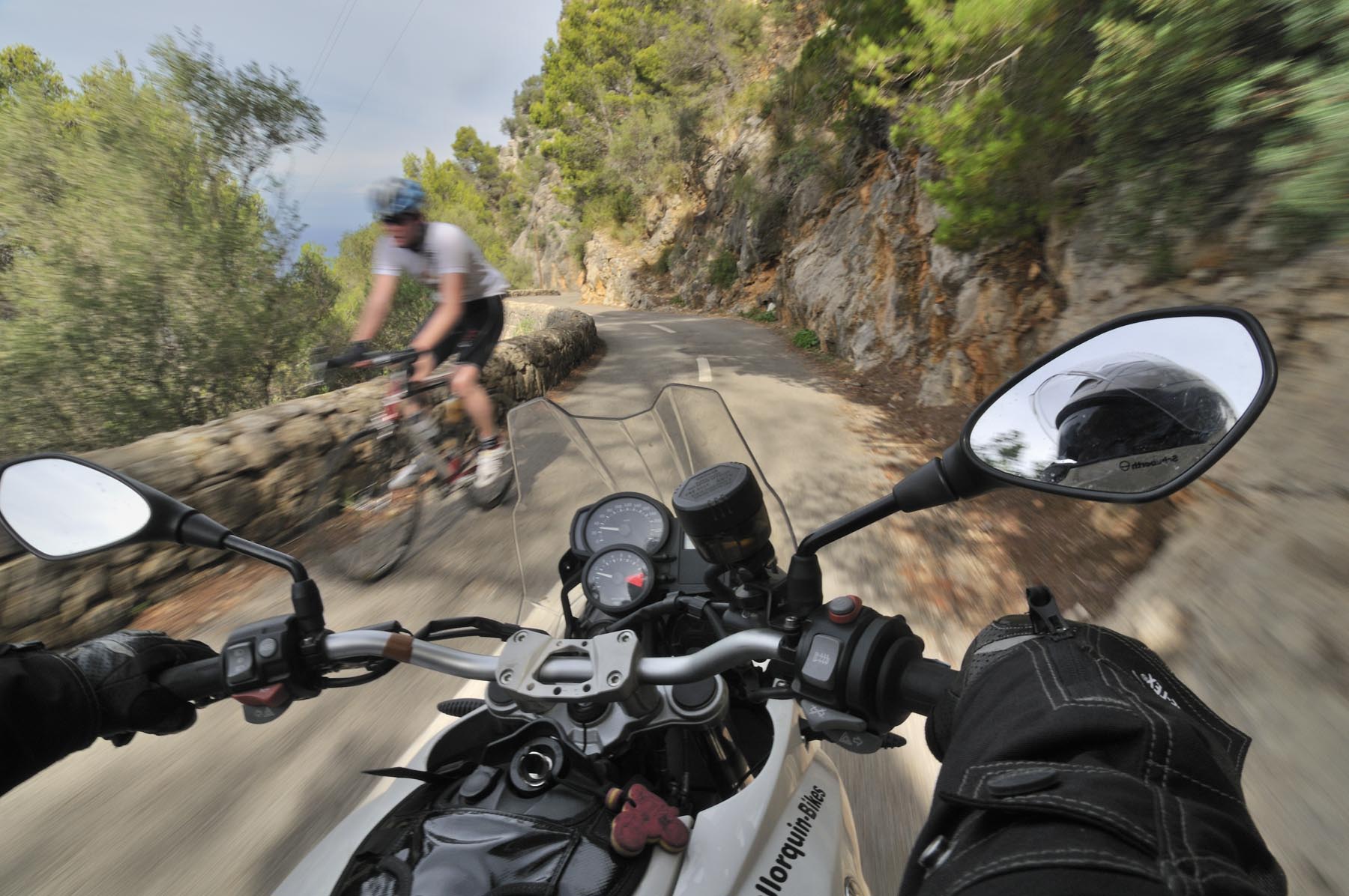 Donderdag. “Ben je daar nog niet geweest. Het doet mij steeds denken aan de uit de rotsen gebombardeerde wegen van de Dolomieten. Jij gaat daar helemaal uit je dak!” Het lukt Johannes steeds weer om de zin naar nieuwe avonturen aan te wakkeren. Een S 1000 RR geschikte route van Porreres naar Lucmajor, met meteen drie kloosters op een berg bij Randa, ergens tegen de middag Valdemossa. Heel fijn dat bussen en campers niet uit hun dak mogen gaan, zodat het komende pleziertje, de zes kilometer lange, steile en krappe afdaling naar het kleine Port de Valdemossa een beetje exclusief blijft. Net zo intensief en beduidend langer dan een quicky, is de vervolgroute op de Ma-10, hoog boven de kust aan de zijde van de Serra de Tramuntana, zo’n beetje de Kamawegensutra van Mallorca. Slagroom-asfalt net voor Andratx duwt de adrenalinespiegel verder omhoog. Nog niet opgebrand rubber verdwijnt hierin zoals witte lichamen op het naaktstrand van Platje El Mango.
