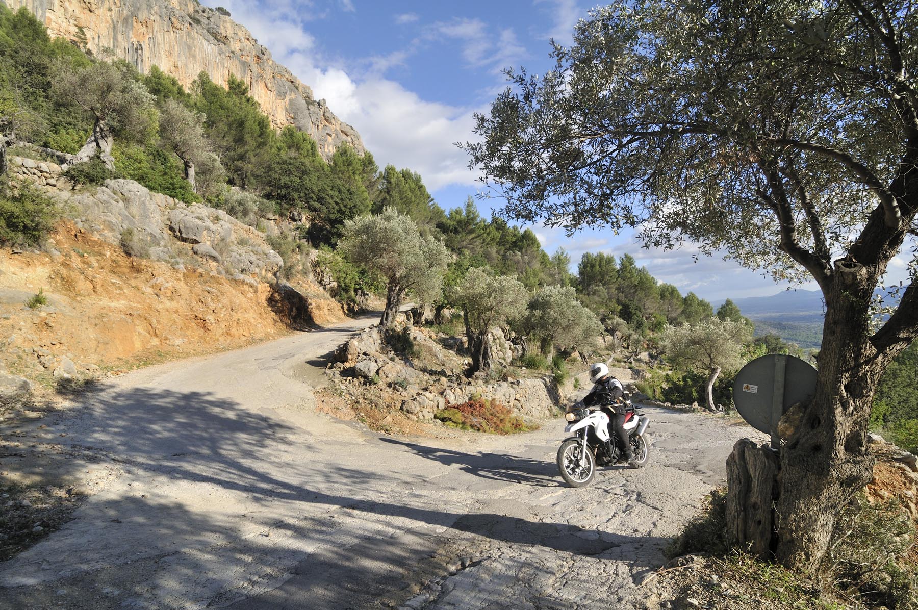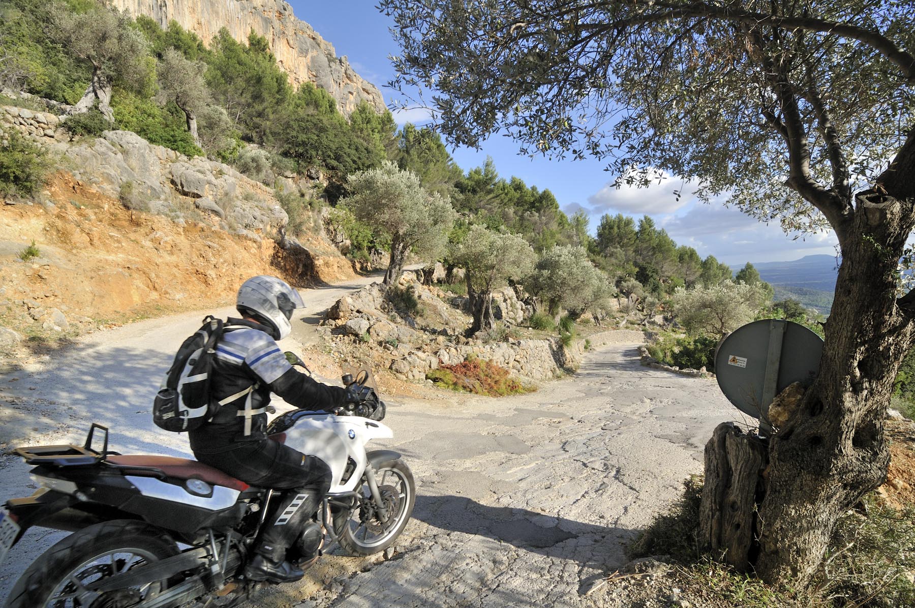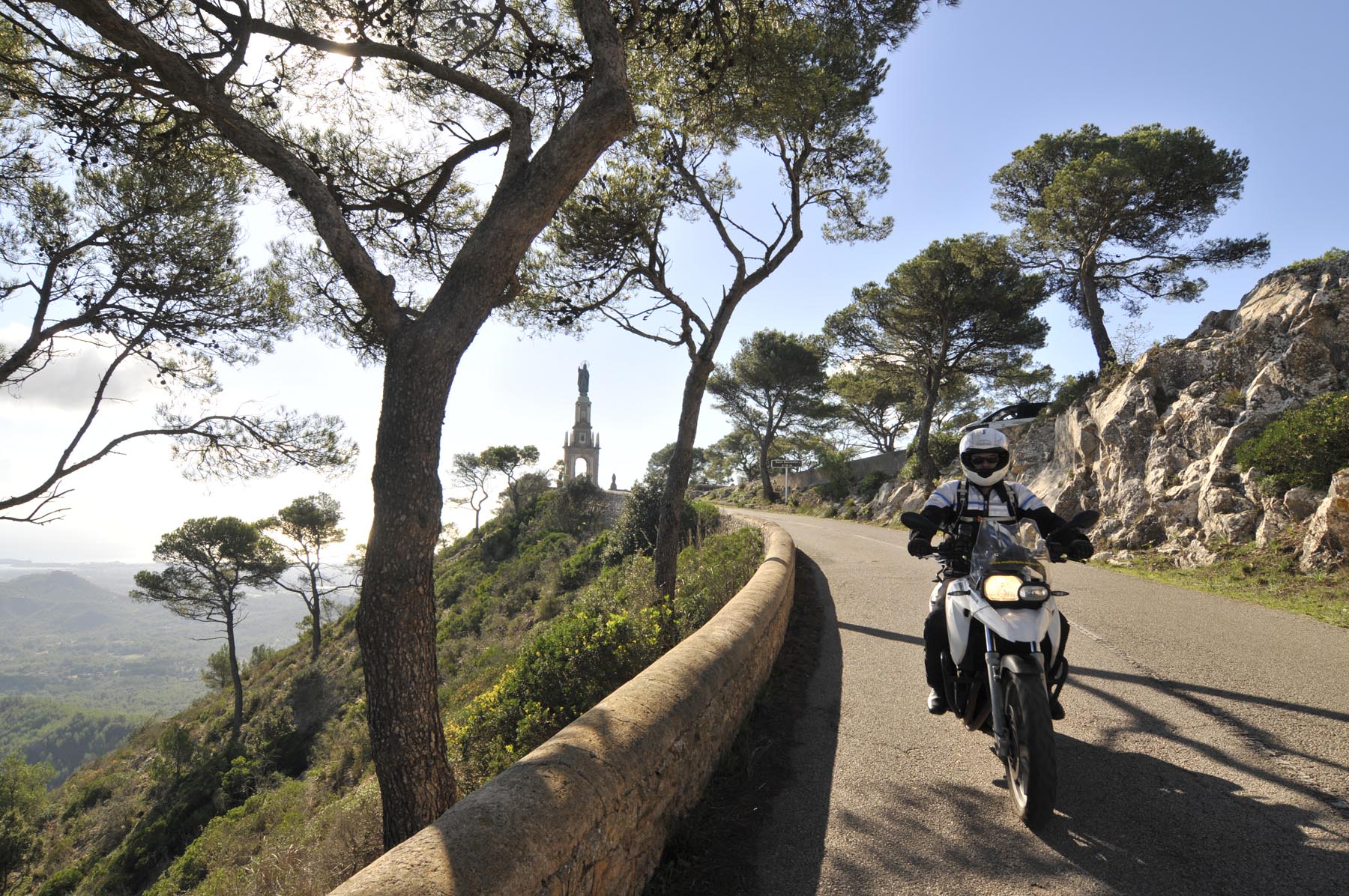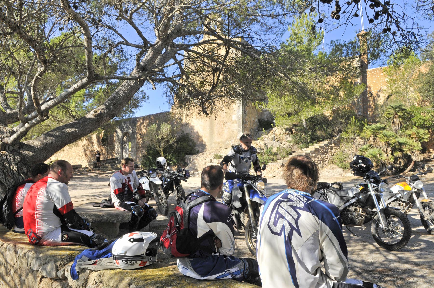 Woensdag 24 oktober. Twee maanden voor kerstavond. Als kleine jochies verheugen psychotherapeut Martin, orthopeed Jens en drie andere kandidaten zich op hun professionele enduro-training. Nog snel even een paar strekoefeningen en een vriendschappelijke buikvetanalyse en daar stuiven we weg. We volgen de HP2 van Johannes, over paden die je nergens op een kaart terug zult vinden, naar het Santuari de la Consolacio, het klooster van moeder Maria. Op het plein voor de verzwegen heremitage een droge cursus inzake offroad-techniek, alvorens we uit onze crosshemden druipen van het zweet. Sven en ik willen onze motoren nog iets meer van Mallorca laten zien en sturen daarom richting vaste ondergrond, om iets sneller vooruit te komen.