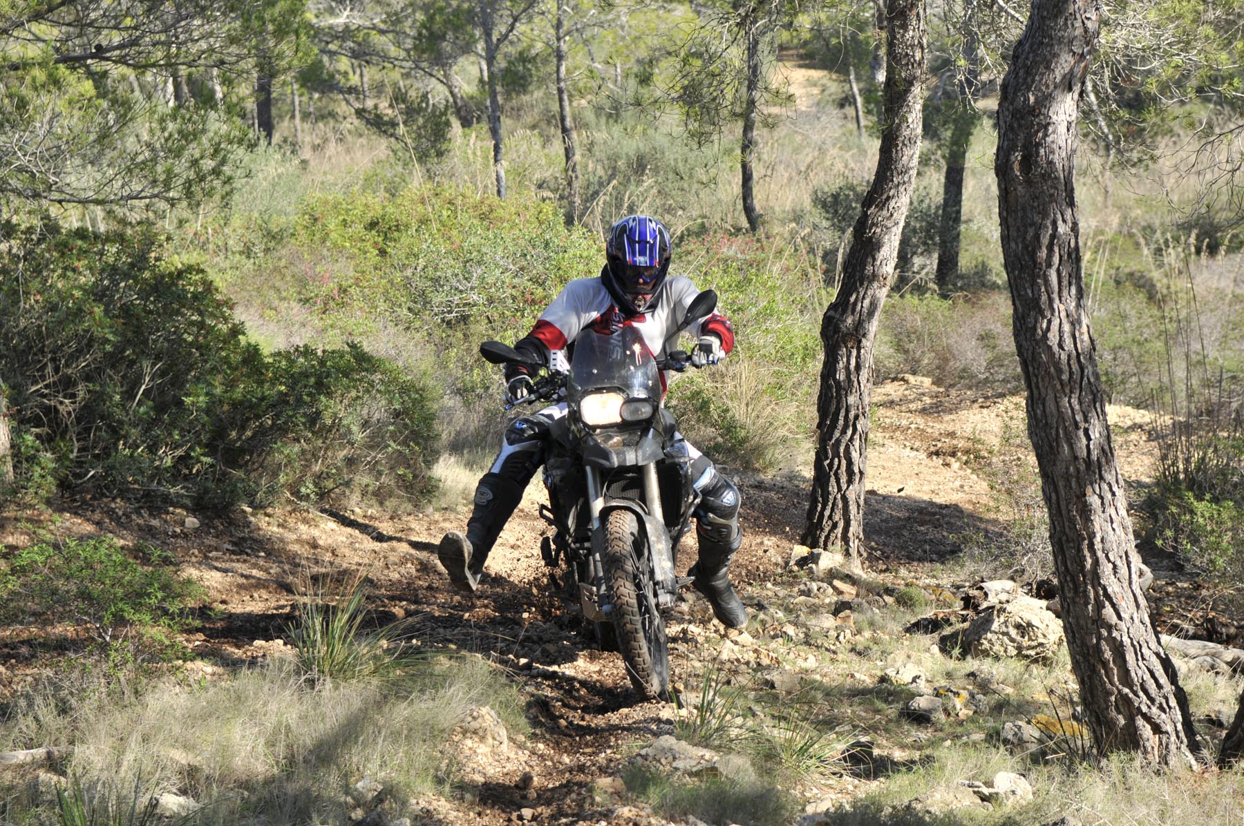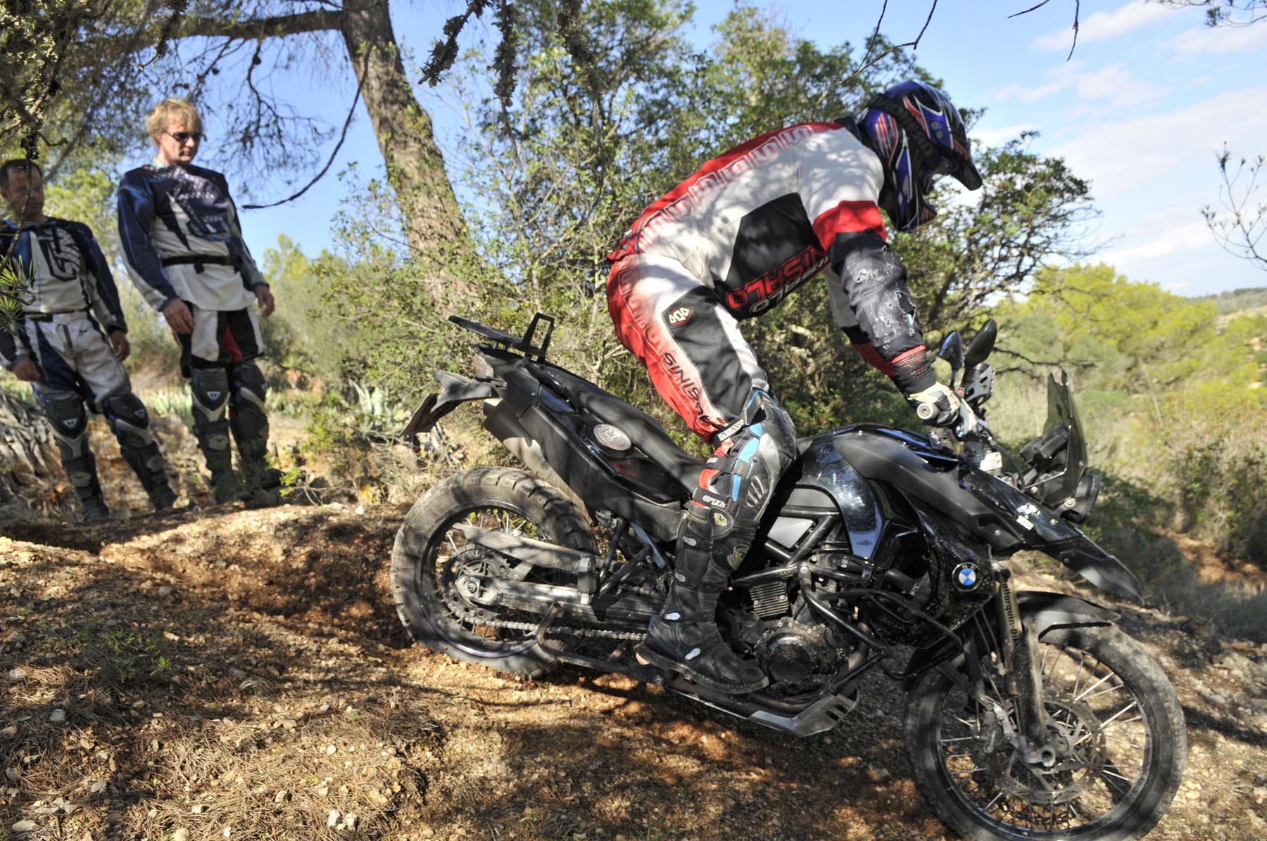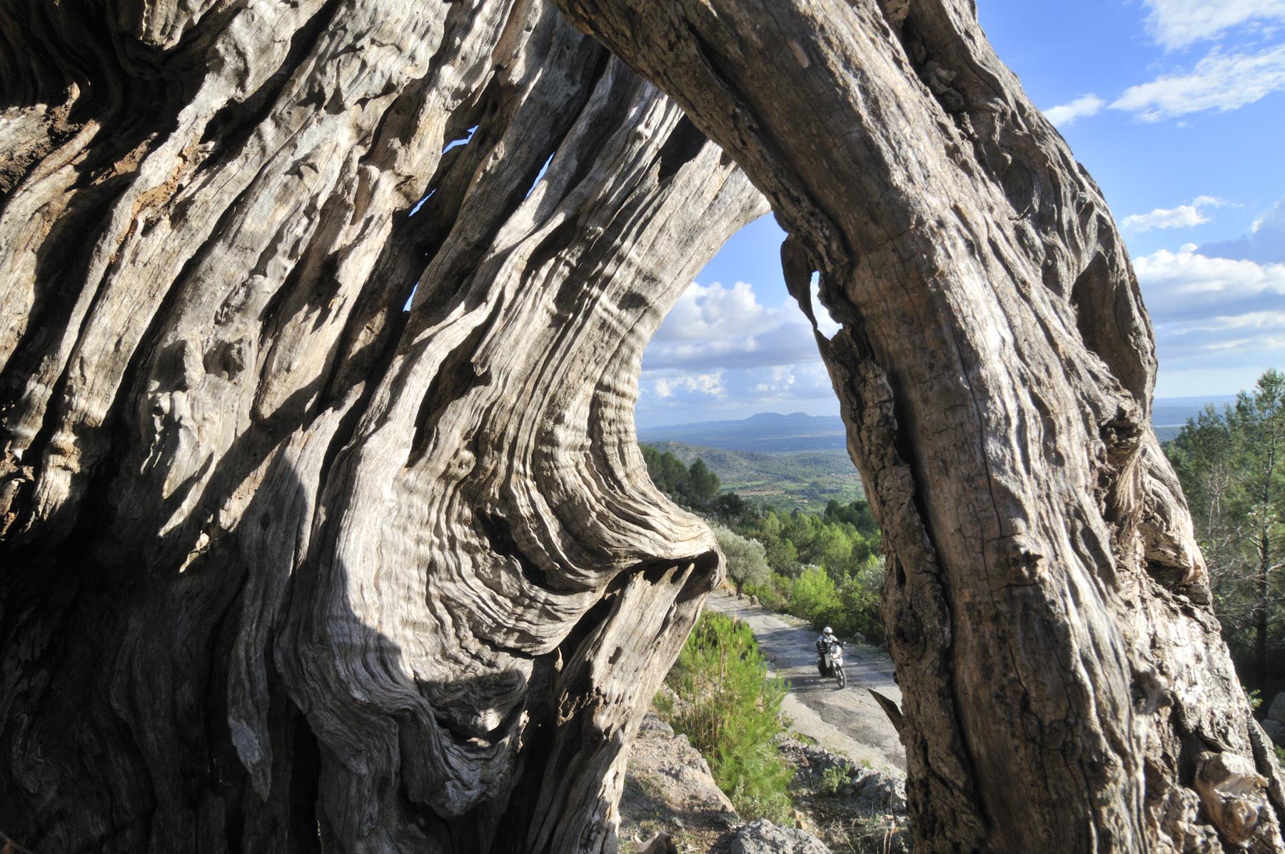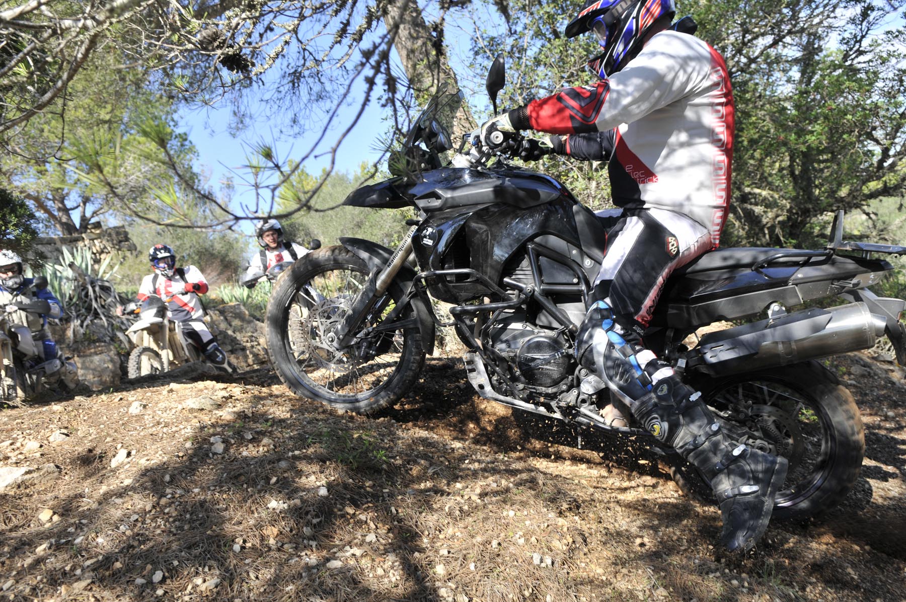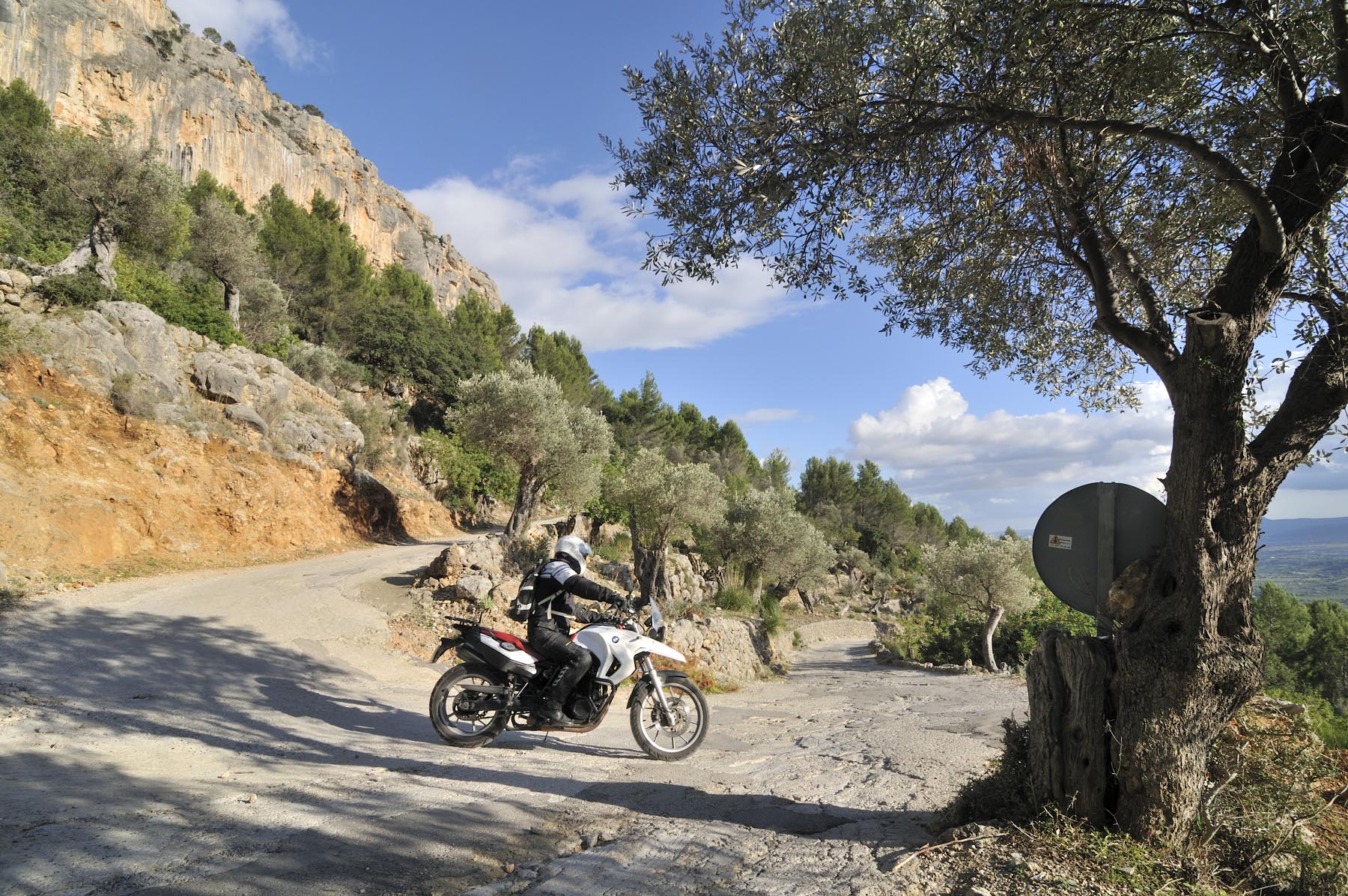 Woensdag 24 oktober. Twee maanden voor kerstavond. Als kleine jochies verheugen psychotherapeut Martin, orthopeed Jens en drie andere kandidaten zich op hun professionele enduro-training. Nog snel even een paar strekoefeningen en een vriendschappelijke buikvetanalyse en daar stuiven we weg. We volgen de HP2 van Johannes, over paden die je nergens op een kaart terug zult vinden, naar het Santuari de la Consolacio, het klooster van moeder Maria. Op het plein voor de verzwegen heremitage een droge cursus inzake offroad-techniek, alvorens we uit onze crosshemden druipen van het zweet. Sven en ik willen onze motoren nog iets meer van Mallorca laten zien en sturen daarom richting vaste ondergrond, om iets sneller vooruit te komen.