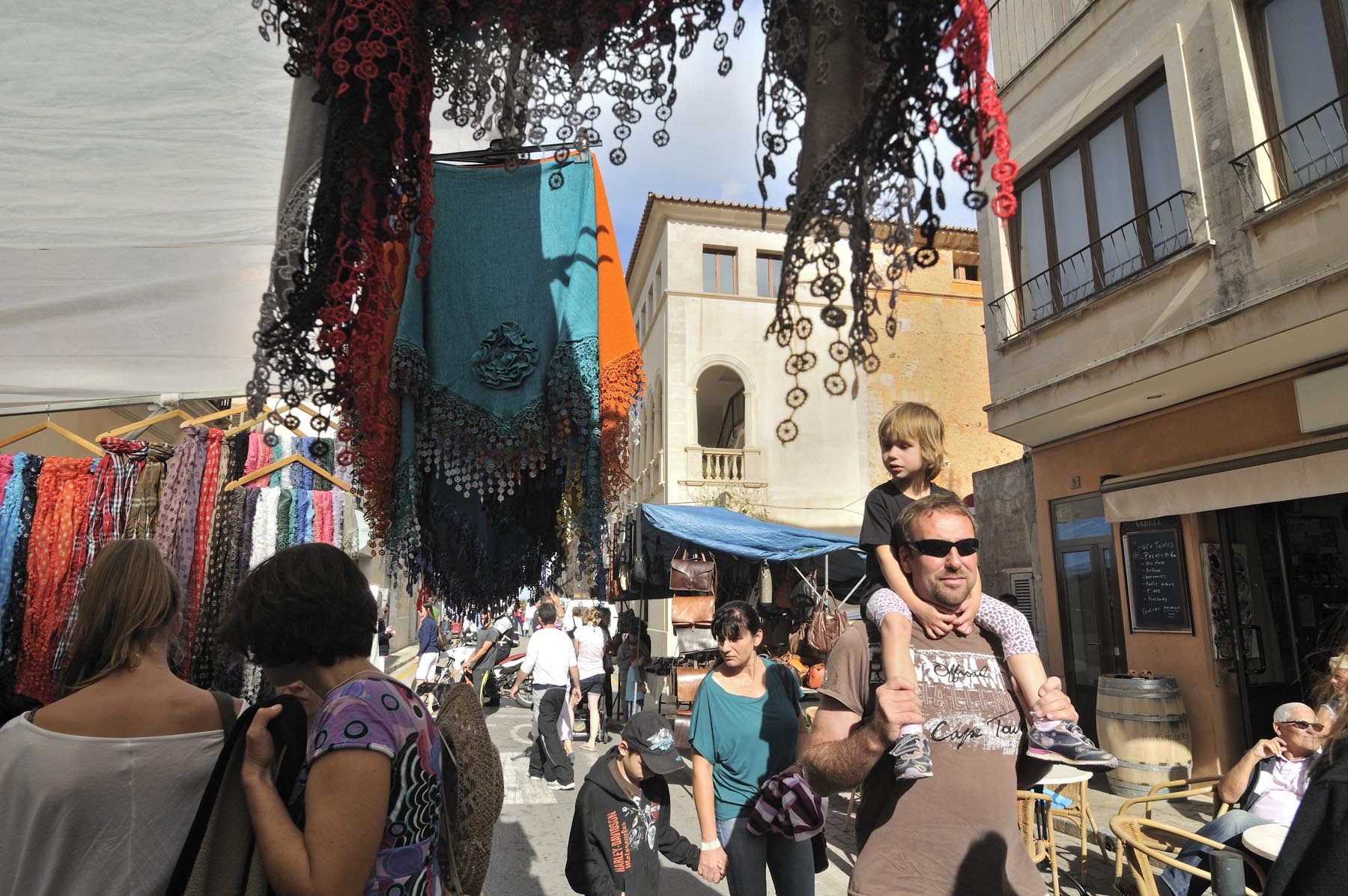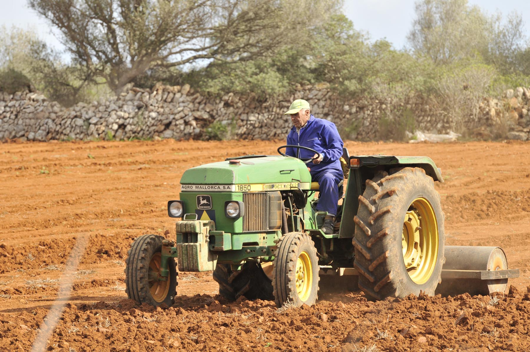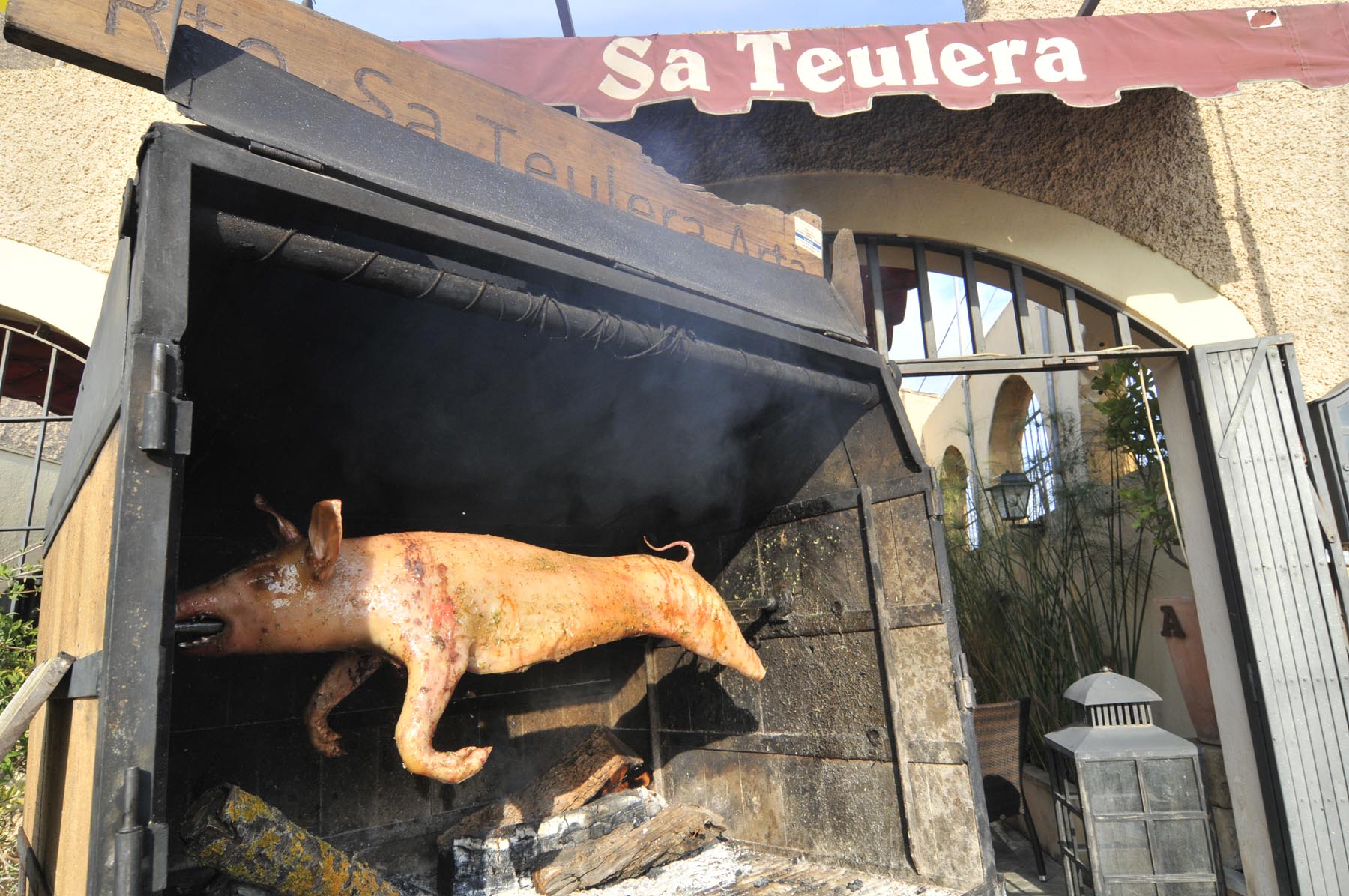 Wij stellen ons tevreden met wat Mallorca ons te bieden heeft en kruisen noordwestelijk via een fijnmazig netwerk van heel kleine weggetjes door dambordachtig boerenlandschap. De Midden-Europees geijkte ogen blijven verbaasd hangen aan de cactushagen en op het oog fris geploegde, bruin geschubde velden, die je spontaan associeert met de verschrompelde huid van iemand die te lang in de zonnebank heeft gelegen. Een schitterend, slank weggetje brengt ons naar Binissalem en meteen daarna in Alaro op de zonluwe Plasa de la Vila waar de kelner van ‘Ca’n Punta’ ons twee copieuze salades voorschotelt. Helaas blijft er hierdoor geen ruimte meer over om nog een heerlijk stuk koek te eten. In plaats daarvan volgt, omhoog richting Castello d’Alano, de slechtste weg ter wereld. Nou ja, van het eiland. Kuilen van formaat, omzoomd door een beetje aftandse, karaktervolle olijfbomen.