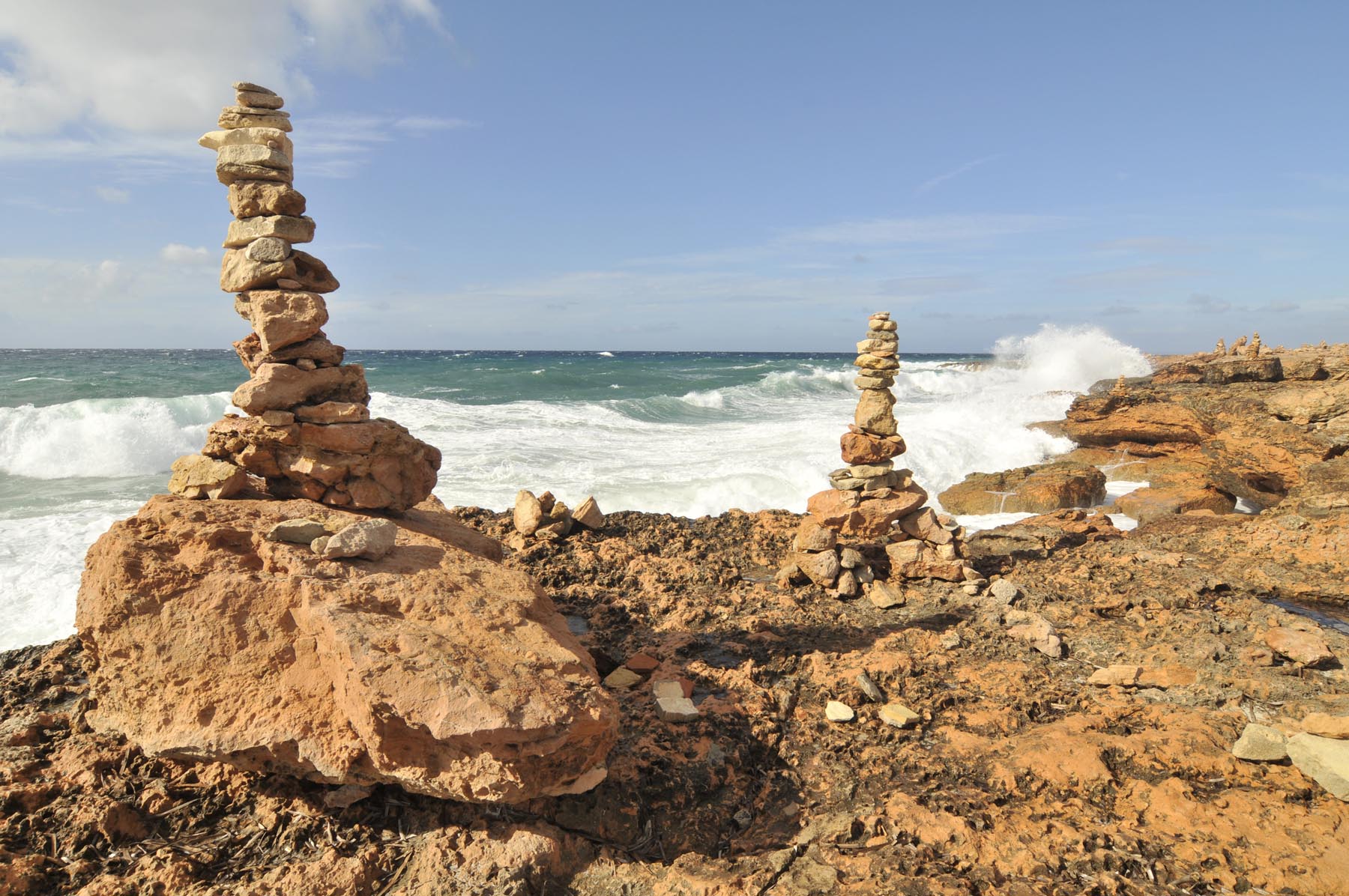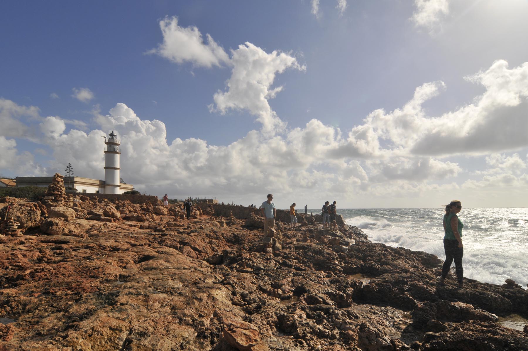 Op vrijdag, in het ochtendjournaal, een reportage over het pensionada-paradijs Florida, waar bewoners zich voor een miljoen dollar inkopen in luxueuze woonresorts. Wie niet zoveel poen bij elkaar geharkt heeft, kan bij Cap de ses Salinas altijd nog stenen op elkaar stapelen. De rotsachtige oever aan de zuidpunt van Mallorca, omzoomd door wit kwijlend water, is vergeven van kleine torentjes, net zoals in Noorwegen de E6 de de poolcirkel. Met het vizier vol met glinsterende zoutkristallen van het schuimende zeewater sturen we aan op een plek die voor sleurontwijkende mensen dezelfde magnetische aantrekkingskracht heeft als de Noordkaap: S’Arenal. Dit met hotels volgeplakte oog van een in extase verkerende orkaan staat garant voor plezier en show tussen zandstrand en disco. De klok rond, zelfs in het naseizoen, als veel winkels dicht zijn.