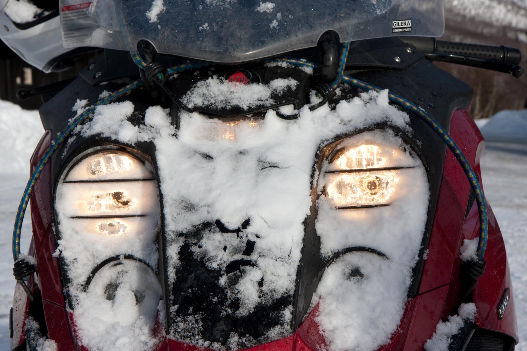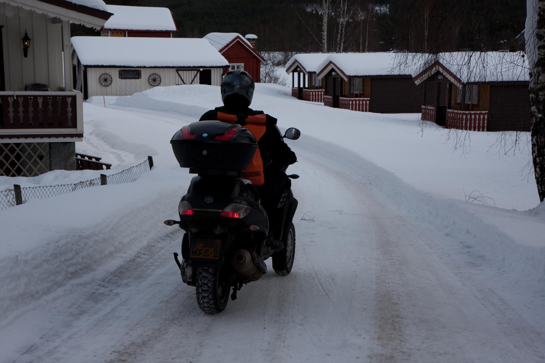 Toch hebben we ons een beetje voorbereid. De Piaggio en de Gilera hebben we niet voor niets gekozen. Behalve twee voorwielen, hebben we een setje winterbanden weten te bemachtigen. Verder hebben we de Noorse verkeersberichten een beetje in de gaten gehouden. Zo zijn we te weten gekomen dat alle wegen die we willen rijden, geopend zijn. Dit leek ons voorbereiding genoeg.