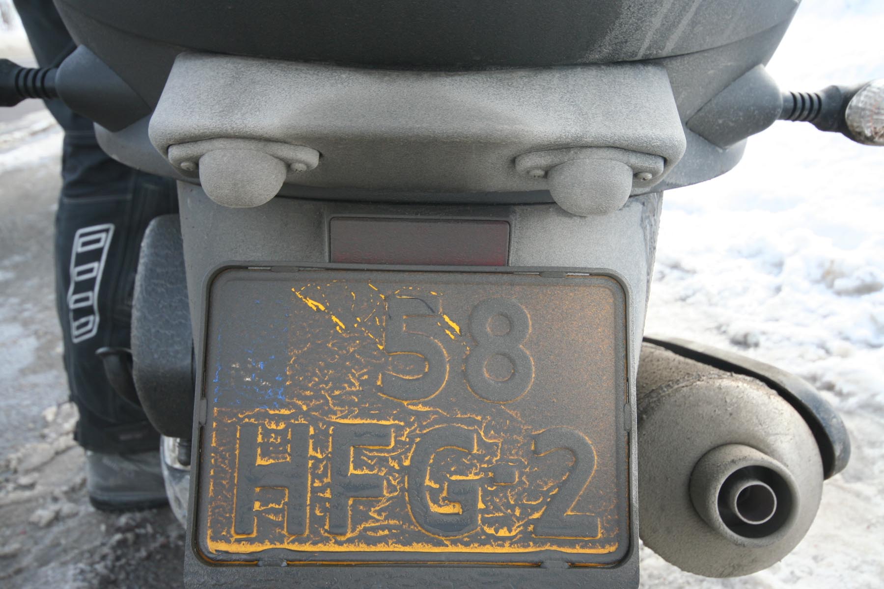 Oké, gaan. Rond vijf uur ’s morgens vertrekken we vanuit Den Haag naar de boot in Kiel, een rit van 650 km. De eerste 600 km regent het zo hard dat we merk en types van auto’s nauwelijks herkennen. Hierna begint het te sneeuwen. De geruststelling is groot als blijkt dat de winterbandjes goed vat houden op het witte wegdek. ‘Maar de kou gaat nog een flink probleem worden met dat Gerbings pak,’ zeg ik tegen mijn reisgenoot Jan. ‘Alleen mijn voeten zijn warm.’