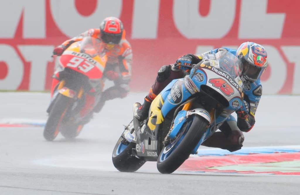 Deze Grand Prix leverde het bijzonderste beeld op de grid aller tijden op. Jack Miller (Ducati) op poleposition met naast en achter hem drie rijen niks, gevolgd door de rest van het MotoGP-veld. De Australiër had een dag eerder op een opdrogende baan op spectaculaire wijze zijn eerste poleposition behaald. Voor de race was hij ook de enige rijder die met slicks op de grid stond. Kort voordat de warm-upronde zou beginnen, werden alle overige motoren naar binnen geduwd, want ze kwamen erachter dat regenbanden niet meer het juiste rubber waren op de opdrogende baan. De start werd uitgesteld, maar om Miller toch het voordeel te geven van zijn juiste bandenkeuze mocht hij dus ruim voor de rest starten. De race werd net zo knotsgek als de startprocedure. Marc Márquez’ motor sloeg af vlak voor de start. Hij duwde hem weer aan en reed een rondje over de grid, maar kreeg daarvoor een drive-through penalty. Na het uitvoeren van zijn straf ging de Repsol Honda-rijder als een wilde stier door het veld, waarbij hij meerdere rijders raakte en aartsrivaal Valentino Rossi zelfs tot crashen bracht. Márquez kreeg daarvoor een tijdstraf van dertig seconden en viel ver terug. Vooraan won Cal Crutchlow verrassend de race.