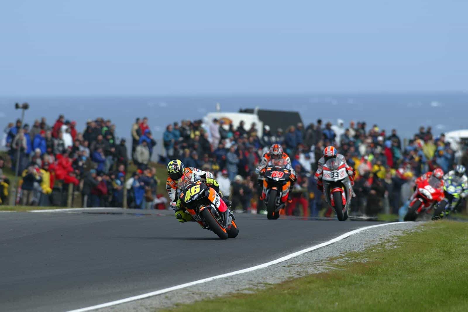 Valentino Rossi was in 2003 ongelooflijk dominant op zijn Repsol Honda. In alle zestien races stond hij op het podium, waaronder negen overwinningen. Hij kwam tien keer als eerste over de finish, maar op Donington Park kreeg hij na afloop van de race een tijdstraf van tien seconden vanwege inhalen onder een gele vlag. Daardoor viel de Italiaan terug naar de derde plaats. Tijdens de voorlaatste race van 2003 op Phillip Island gebeurde dat opnieuw. Rossi haalde Marco Melandri in terwijl er nog geel werd gezwaaid na een crash van Troy Bayliss. Rossi’s voordeel was dat hij de straf dit keer al tijdens de race kreeg, waardoor hij precies wist wat hem te doen stond: tien seconden wegrijden bij de concurrentie. Een getergde VR46 was altijd op zijn best, en dat bewees hij ook in deze situatie. Rossi reed de ene snelle ronde na de andere en liep vijftien seconden uit op nummer twee Loris Capirossi (Ducati). Daardoor won hij ondanks de tijdstraf van tien seconden alsnog de Grand Prix van Australië.
