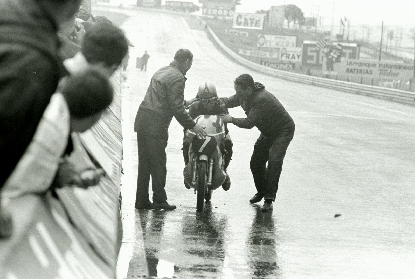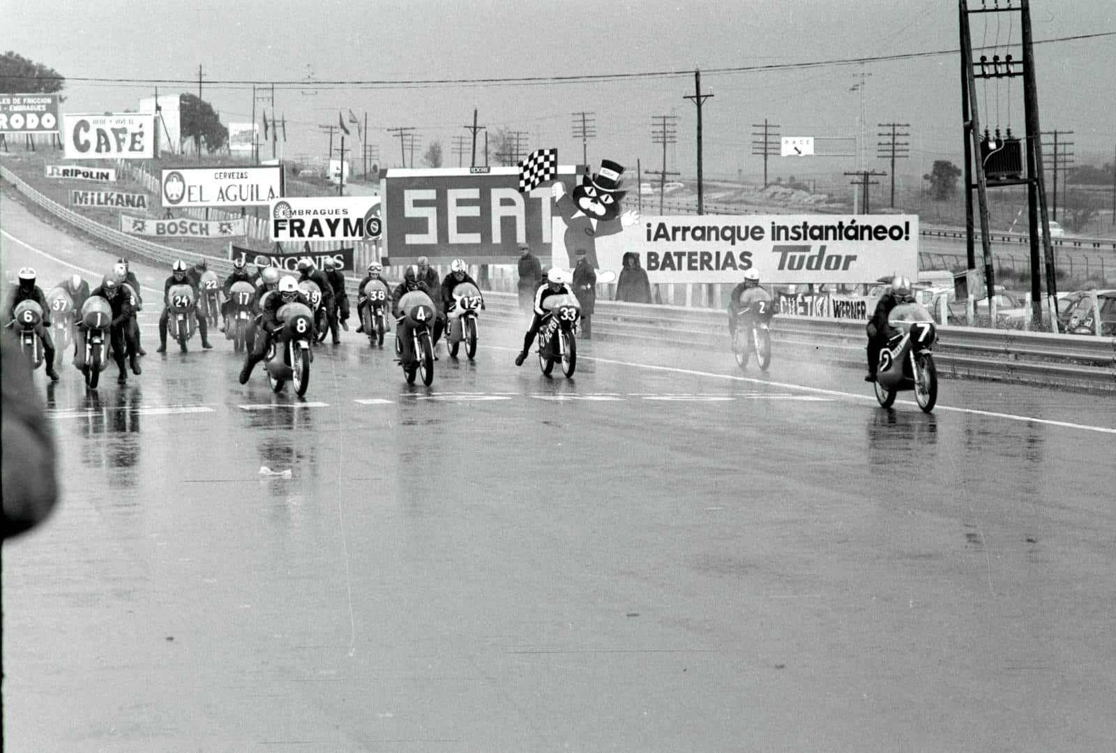 Zo’n 90 Nederlandse supporters waren midden in de nacht met een MRTN-chartervlucht afgereisd om de vaderlandse 50cc-toppers Aalt Toersen, Jan de Vries en Paul Lodewijkx en 125cc-titelkandidaat Cees van Dongen mentaal te ondersteunen. Zij waren op tijd en dat moest ook wel, want de 50cc stond al om 09.00 uur aan de start! Aalt Toersen won de natte openingsrace vóór Ángel Nieto en teamgenoot Jan de Vries. Dit met amper toeschouwers op de tribune.