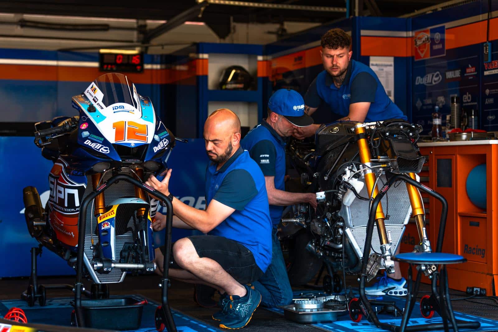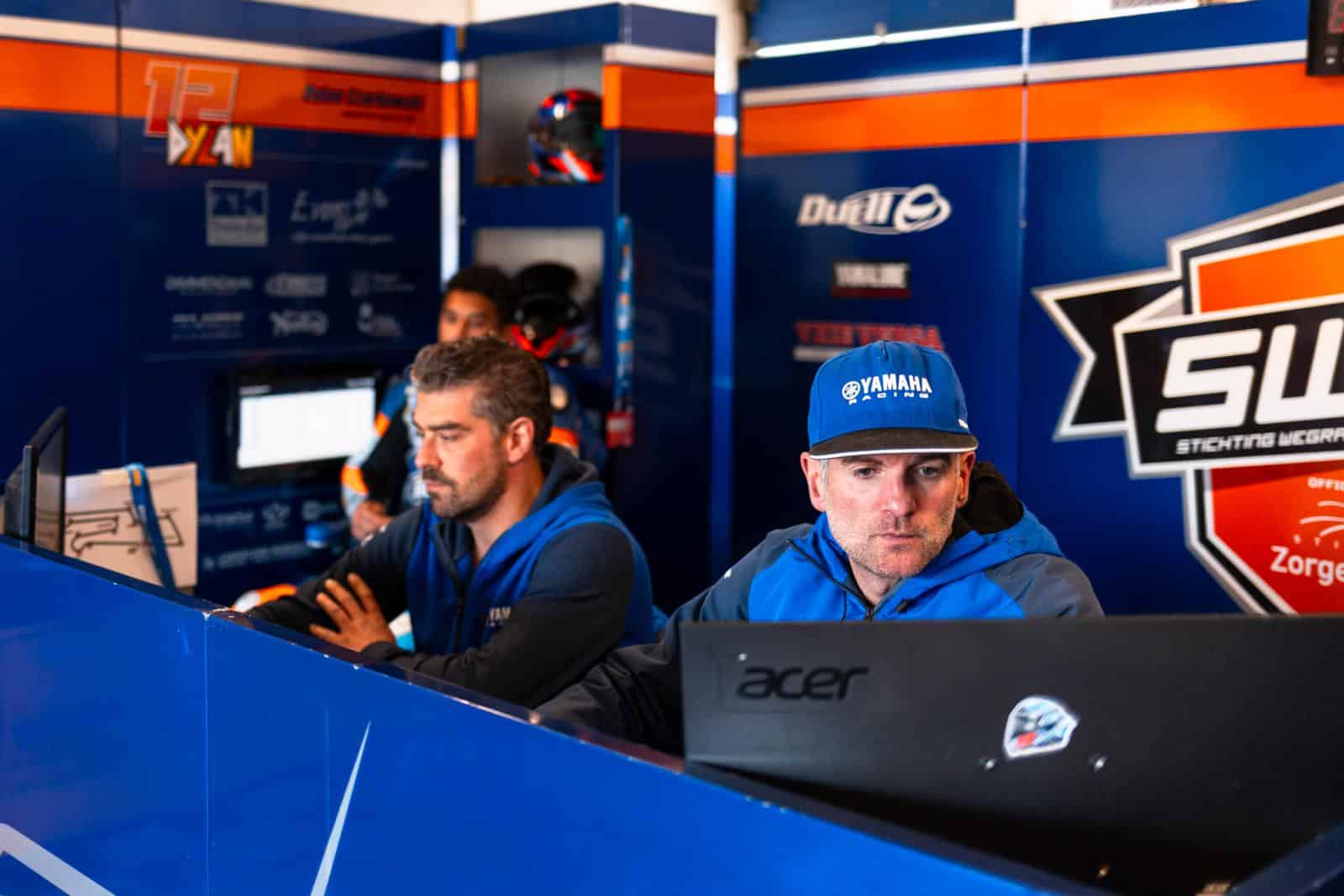 ‘Raymond Schouten is onze rijderscoach en hij werkt ook voor Yamaha. Vooral bij jonge rijders – waar wij veel mee werken – speelt hij een enorm belangrijke rol. Eén snel rondje rijden kunnen best veel rijders, maar dan ben je er nog niet. Wij werken aan een solide basis waar een rijder zijn hele carrière iets aan heeft. Het gaat erom dat een rijder consistent is en op elk circuit snel kan zijn. Daar zit een bepaalde gedachtegang achter, waarbij we proberen vaste patronen en structuur aan te brengen.’